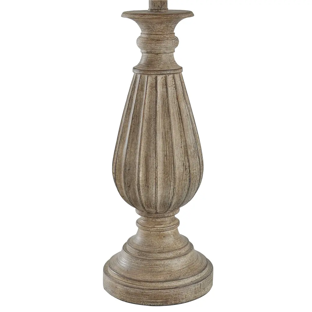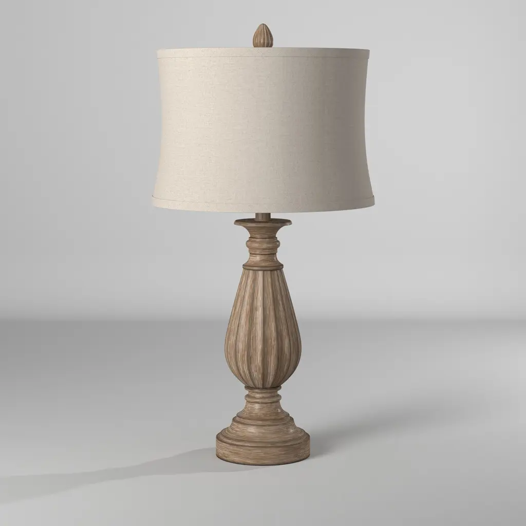 The Poly-Resin table lamp will fit with any other design you have in the family room. It comes with an easy-to-use metal turn knob and round, softback shade. The body comes with a brown finish along with a subtle black tint. A handpainted finish means each piece is unique, with possible slight variations. No two lamps are exactly alike. This table lamp comes in a brown with black tint frame with a beige shade; Requires one (1) 100-watt Incandescent E26 base bulb (not included). All hardware and metal turn knob in brush nickel finish Switch type: 3-Way Switch location: Neck UL listed Body frame finish: Brown with Black Tint Body frame material: Poly Resin, Crystal Shade color: Beige Shade material: Softback Fabric Voltage: 120 Cord length: 60 inch Clear Shade dimensions: 10 inches high x 15 inches wide Dimensions: 29 inches high x 15 inches wide x 15 inches deep Due to lighting and monitor differences, actual colors and finishes may vary slightly from what appears online.