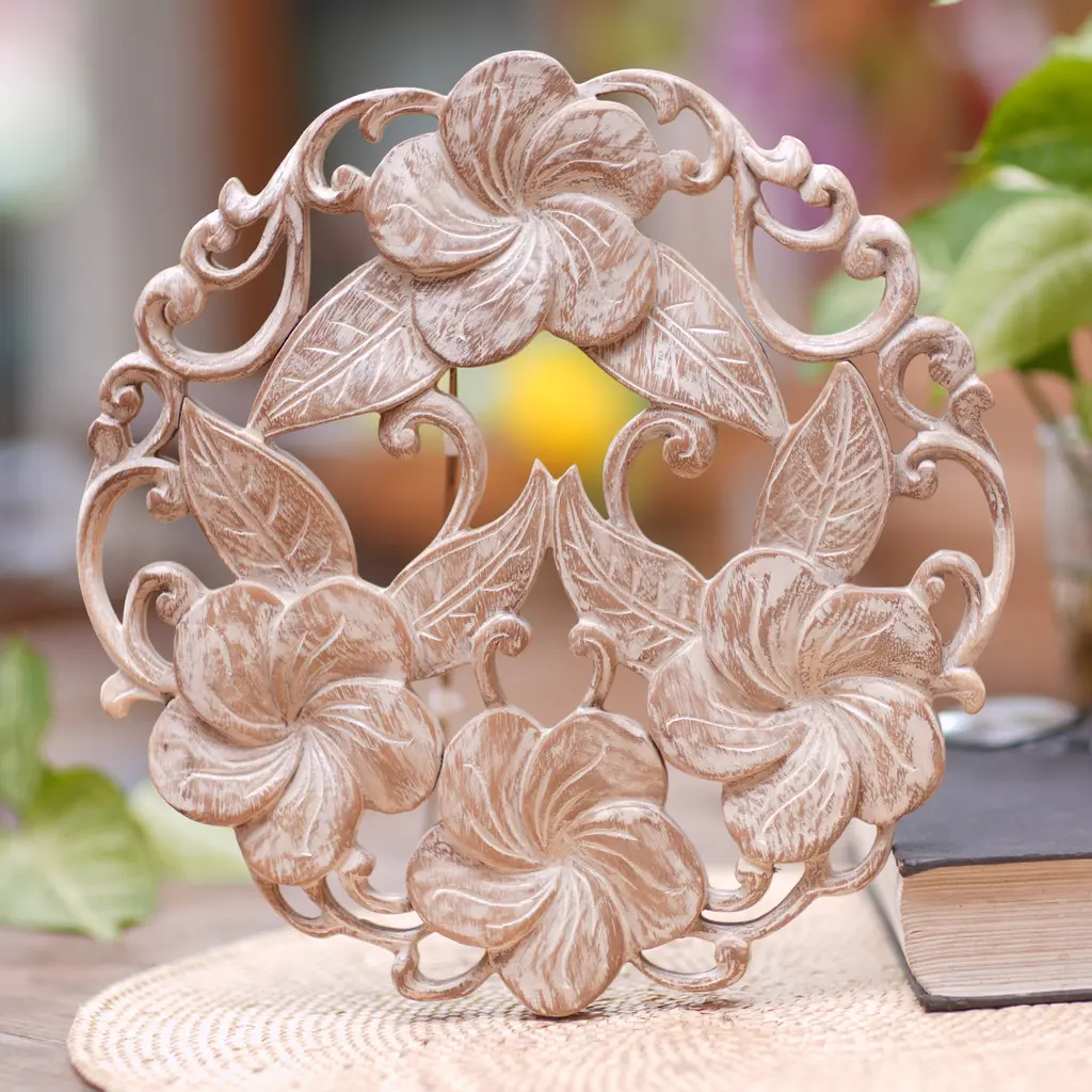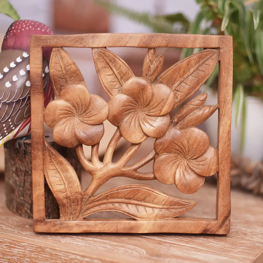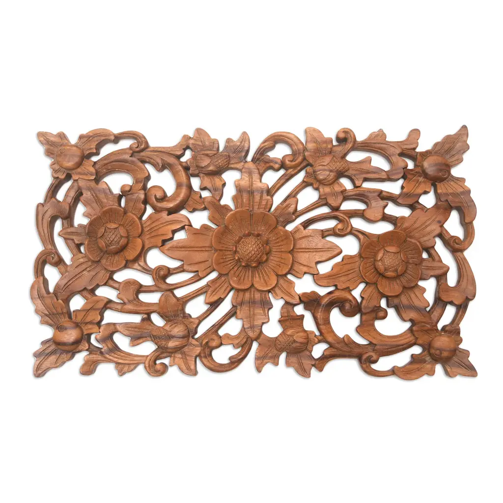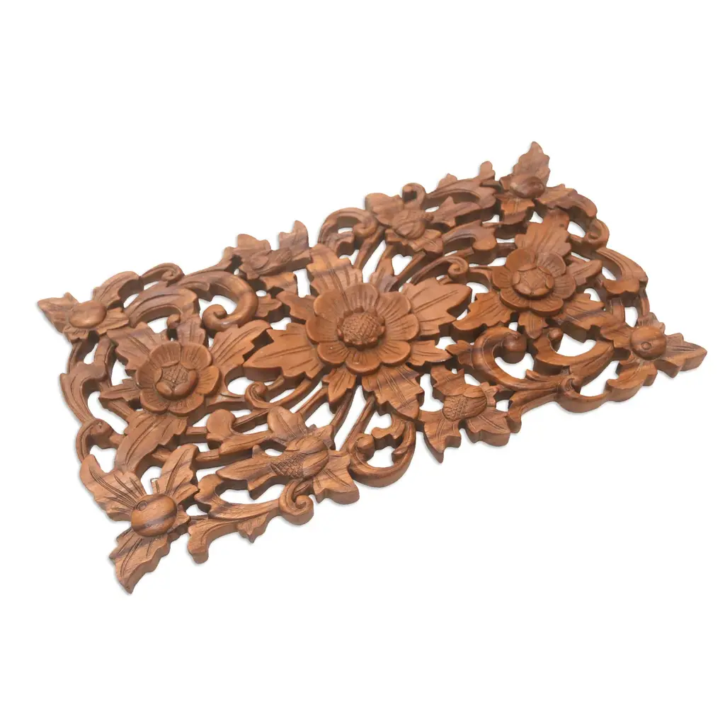 Suar Wood Relief Panel With Botanical Motif- Botanical Serenade