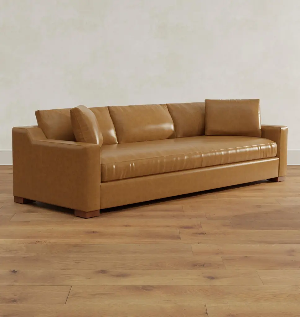 We designed the Sublimity collection to create the ultimate lounging experience. You can feel the difference every time you sit on the expertly crafted cushions, which feature multiple levels of coil support wrapped in down for superior comfort. Casual, yet contemporary, the Sublimity Studio Sofa has a 21" deep seat and is upholstered in the highest quality leather available. Offering a more upright sit, our Studio seat depth is ideal for formal living rooms or small spaces.