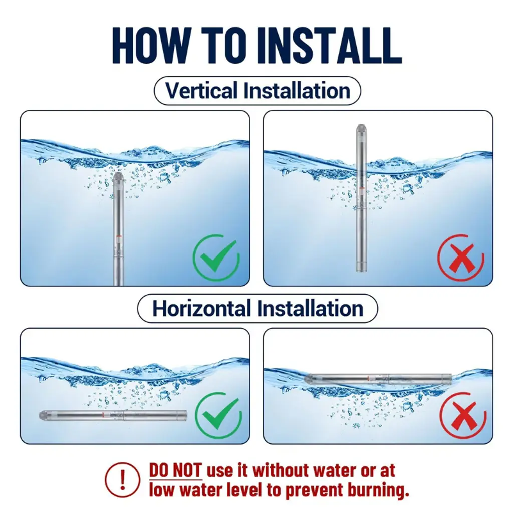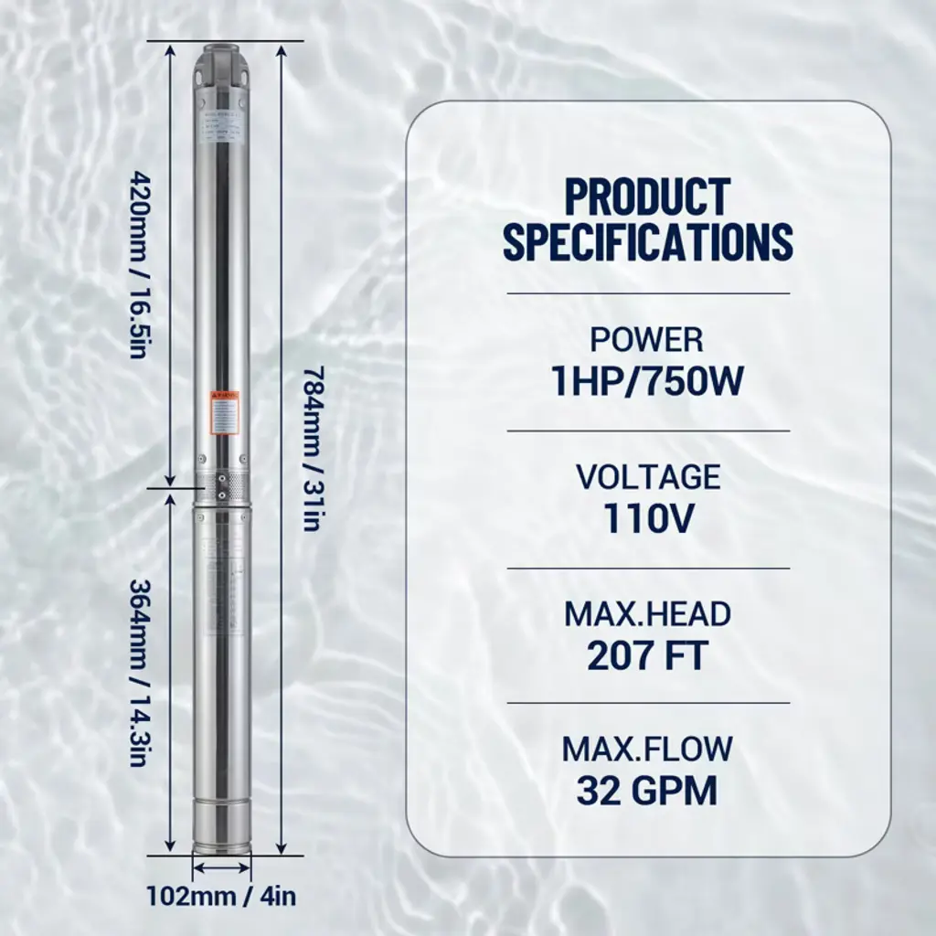 The Garvee Submersible Pump offers powerful and efficient water flow at 37 gallons per minute, making it ideal for both irrigation and home water needs. Constructed from durable stainless steel, this 1HP deep well pump delivers reliable, long-lasting performance with excellent corrosion resistance. an IP68 waterproof rating, it is designed to handle deep water sources and harsh conditions. Versatile and robust, this 4-inch pump suits a wide range of residential and industrial applications.