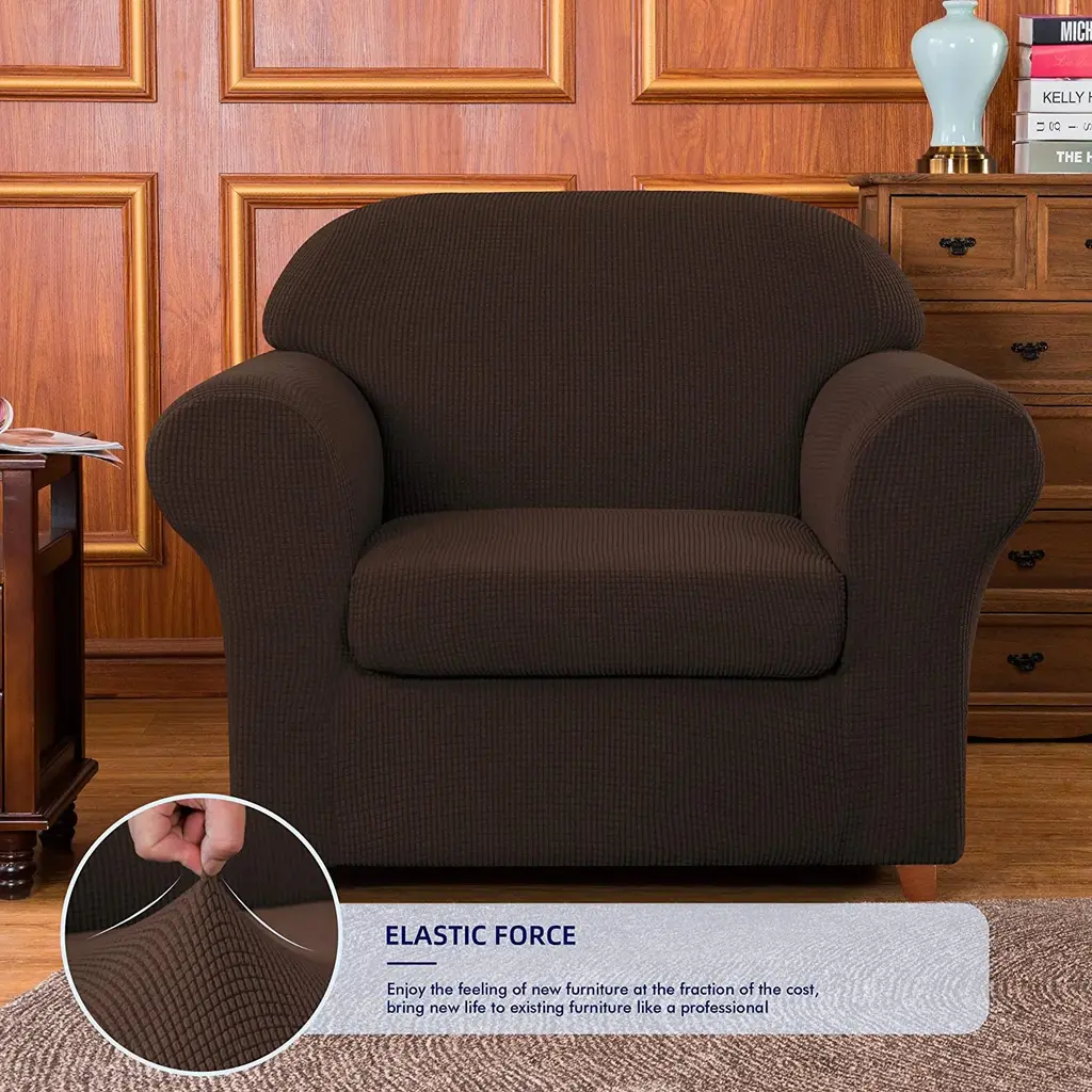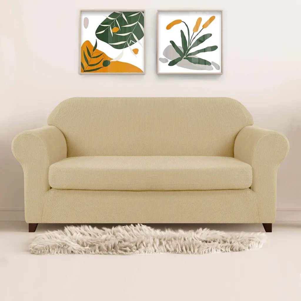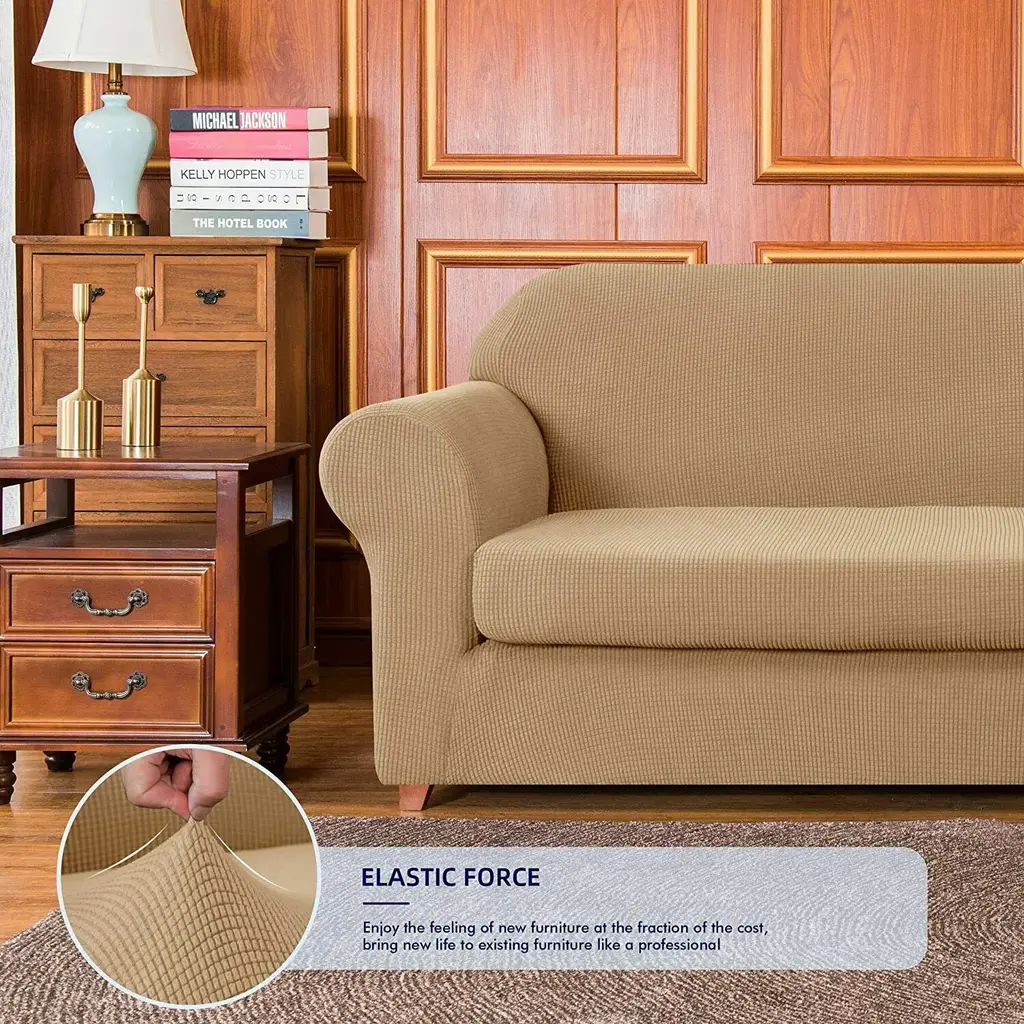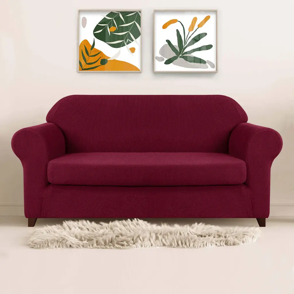 Protect your loveseat from daily wear and tear, spills and stains with Subrtex Stretch Loveseat Slipcover. Made of 85% polyester and 15% spandex, this 2-piece furniture protector is soft to the touch, skin-friendly, breathable, durable and wear-resistant. The built-in elastic corners ensure a perfect fit for any sofa edge. With its superior look, this slipcover adds to the ambiance of any room. It is easy to care for as it can be machine washed and tumbled dried to keep it looking fresh and clean.Features:Product Specification:Notice: