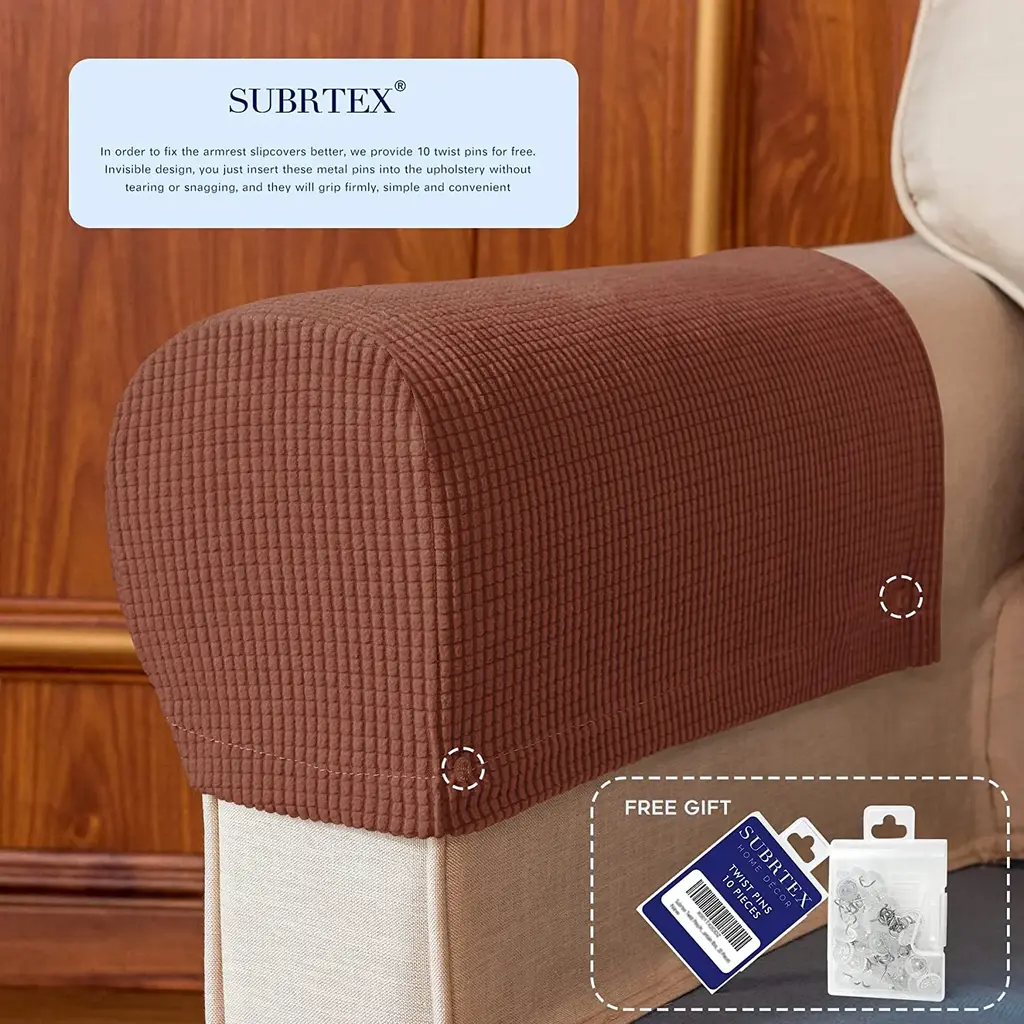 Subrtex Stretch Armrest Cover Strip Furniture Cover With Twist Pins - Brick