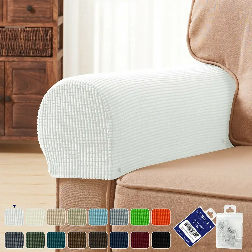 Subrtex sofa armrest slipcover would give your sofa armrests a brand new look while protecting them from daily wear and tear, stains, and scratches. Make your sofa keep pristine longer. It's easy to install, take off, and machine washable. A must-have for homes with children and pets. Products Features:Material:Perfect Fit: Our armrest covers are suited for more than 97% of fabric chair armrests. Please Note: Our cover is more suitable for fabric sofas. Function:Give your armrests a brand new look while protecting them from daily wear and tear, stains, and scratches. Extend the life of your armrest or fix a broken and worn out armrest quickly and effortlessly. A must-have for homes with children and pets. EASY CARE:Machine washable, no bleach. Low-temperature ironing if needed. Product Specification:Size: Suitable for armrests that are 18-21 inches long, 5-8 inches wide, and 8-11 inches high. One-size-fits-most, each package includes a pair of armrests and 10 rivets for better fitting. Notice: Because of the different light and different computer screen resolutions, the color showed on the screen may be slightly different from the actual one.