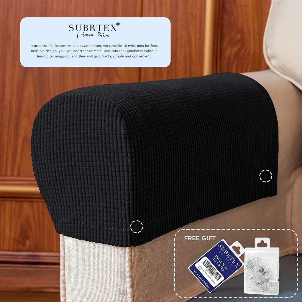 Subrtex Stretch Armrest Cover Strip Furniture Cover With Twist Pins - Coffee