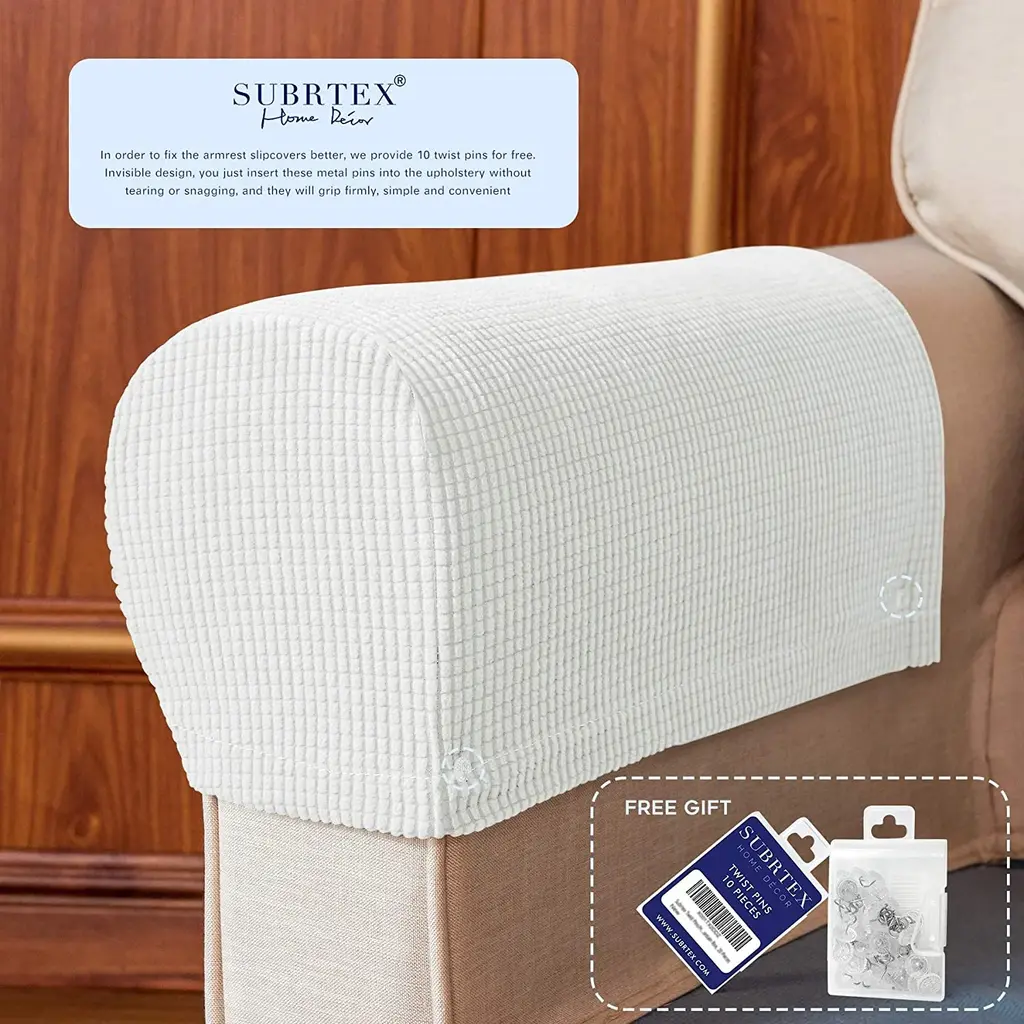 Subrtex Stretch Armrest Cover Strip Furniture Cover With Twist Pins - Ivory