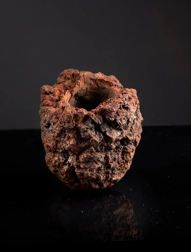 Subterranean Formation by Theodora Alfredsdottir in Collaboration with Daniel DurninUnique piecesMaterials: EarthenwareDimensions: Approximately 8 -12 cm high x 8 cm diameterTheodora Alfredsdottir is a product design studio based in London. Theodora is an Icelandic product designer. She holds a bachelor’s degree in product design from the Iceland Academy of the Arts (2012) and a master’s degree in Design Products from the Royal College of Art in London (2015).Storytelling through objects; Theodora’s work revolves around the narrative an object can inhabit and exploring ways of objectifying that narrative. She's interested in the way an object can act as documentation of its manufacturing process; a record of what went on between the machine, tools, craftsman and Material as well as it can communicate its origin and former life. In short, the object creates its own factual narrative. That often leads to the discovery of unexpected qualities as well as it gives the user a subtle opportunity to reconsider our Material world and explore value in a different way.