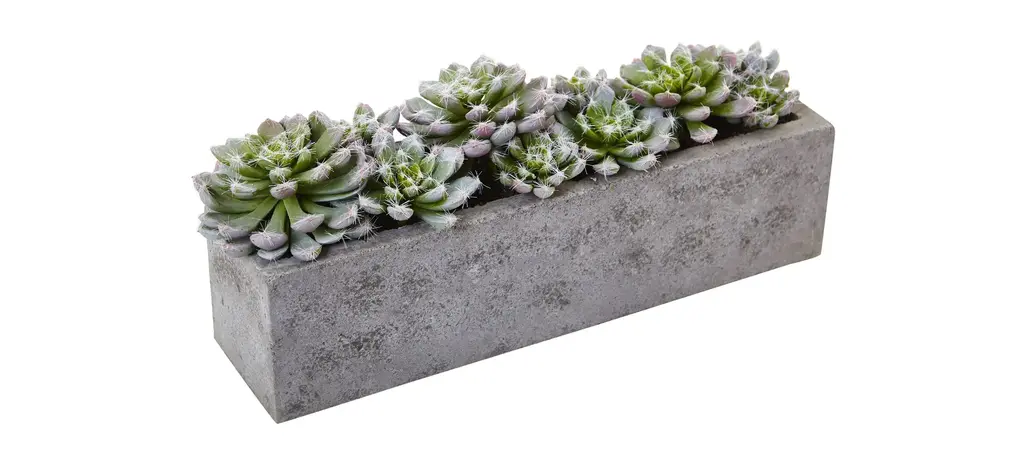 This Succulent Garden with Planter will stay looking great with nary a drop of water. Long a favorite for their interesting look, the succulent plant is a wonderful array of color and texture. We've taken that look and placed them side by side in this wonderful looking concrete planter.