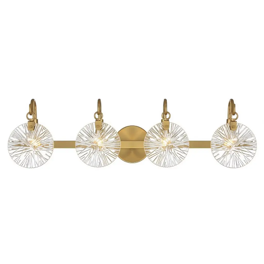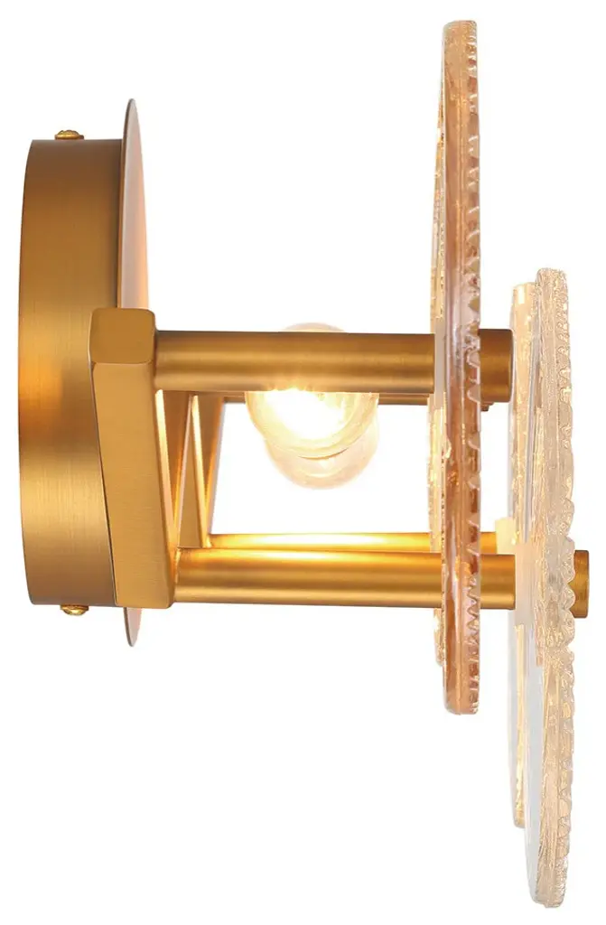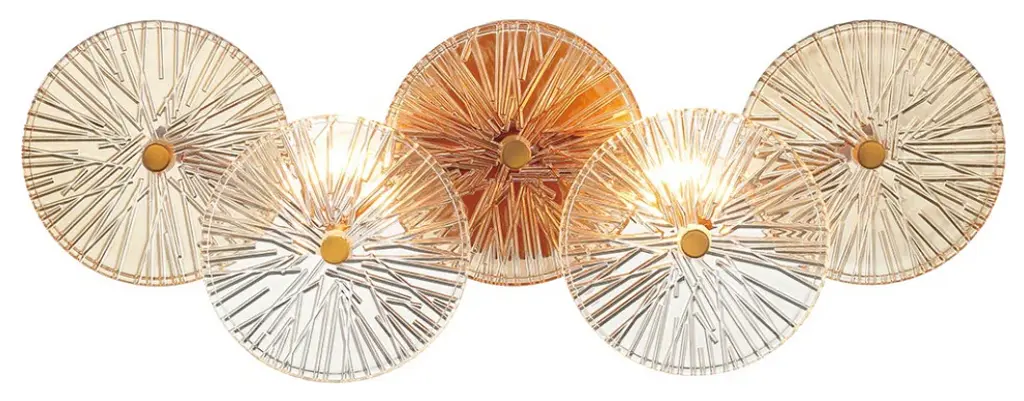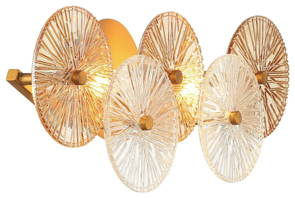Grand robust detailing is showcased through exemplary glasswork. The pressed ribbed discs are each handmade intricately detailed and naturally tinted. These features add to the unique characteristics of each individual piece in this majestic collection.Number of Lights: 2Bulb Type: E12/CandelabraWattage: 60LED Color Temperature (K): Does not applyDimmable: YesBulb Inlcuded: NoVoltage: 120Hardwire or Plugin: Hardwired