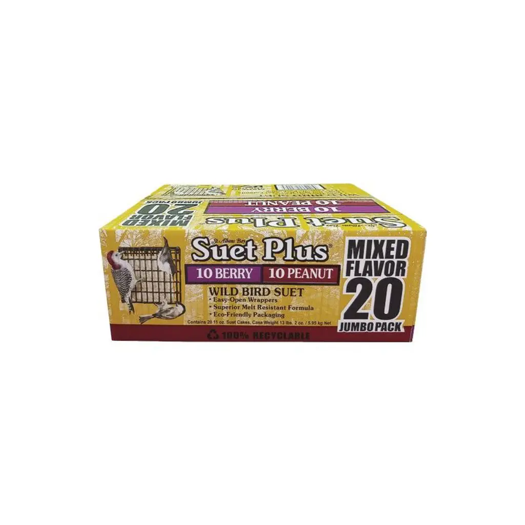 Convenient and attractive value carton. Mixed flavor pack contains Peanut and Berry Suet Plus suet cakes. Easy open, no-mess candy bar wrappers, eco-friendly packaging.