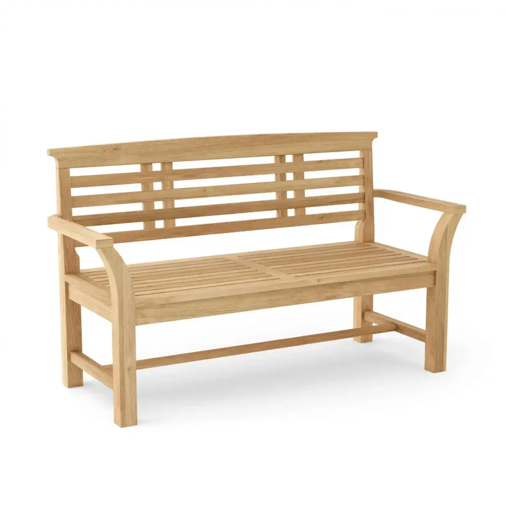 Our classic garden bench features the high back, delicately scrolled arms, and dished seat of the 19th-century original, but has been updated in teak.