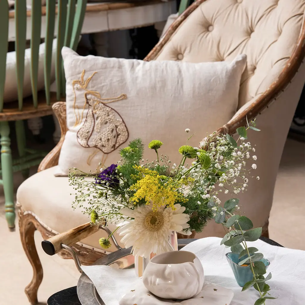 From our Sufi Collection, our Sufi Cushion features hand- embroidery over beige linen. Artisans have crafted it with hand embroidery. For a truly luxurious update to any room.Perfect on its own or mix and match to combine your choice of designs and colors to create a unique look.