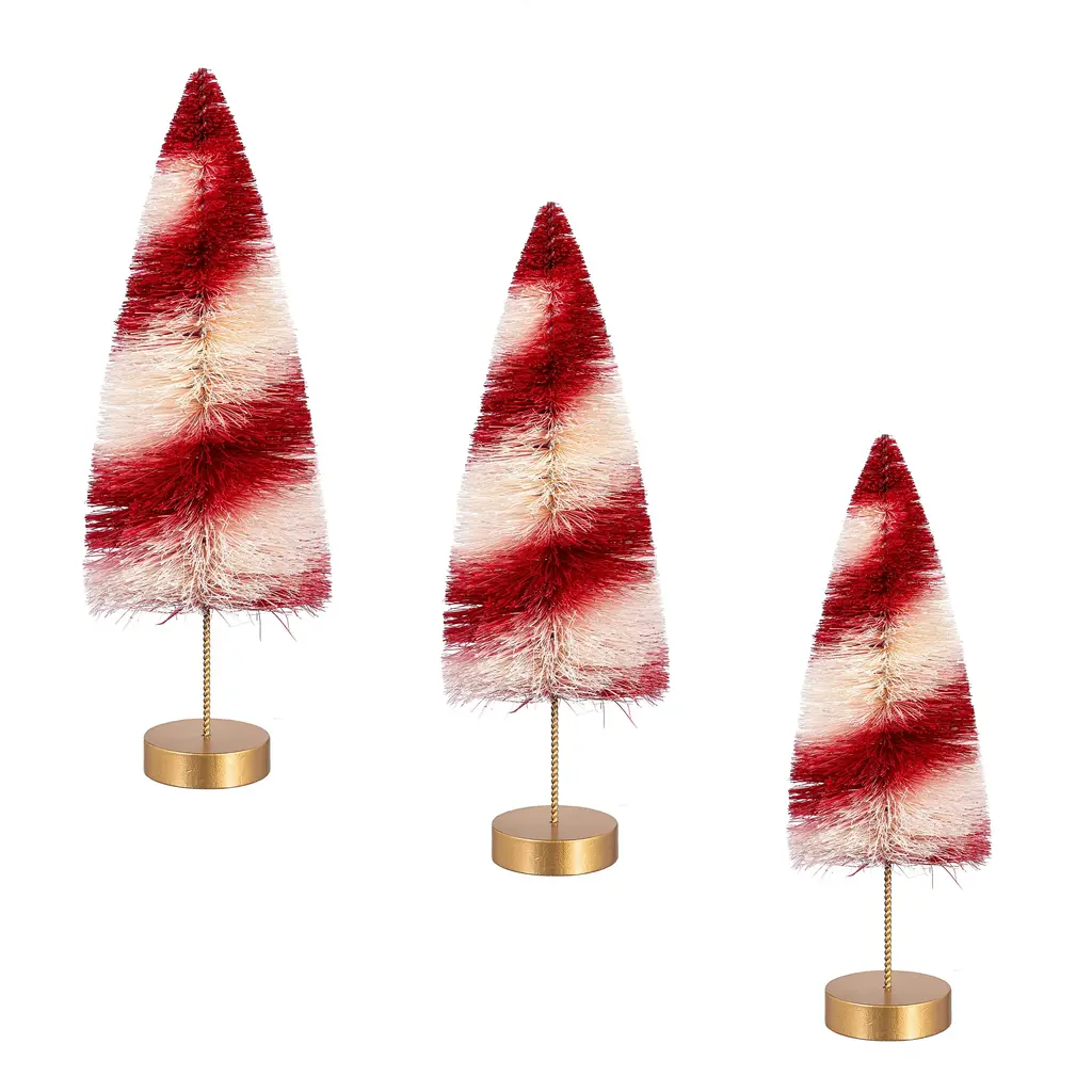 Sugar & Stripes Bright Table Décor Candy Striped Bottle Brush Tree Set