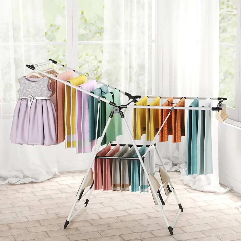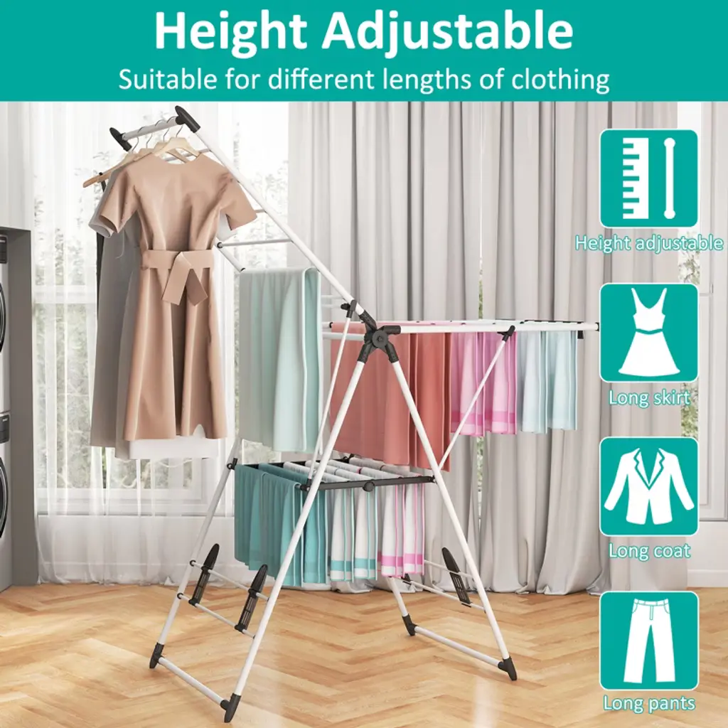 Sugift 2-level Adjustable Foldable Clothes Drying Rack – Large Stainless Steel Laundry Hanger For Indoor & Outdoor Use