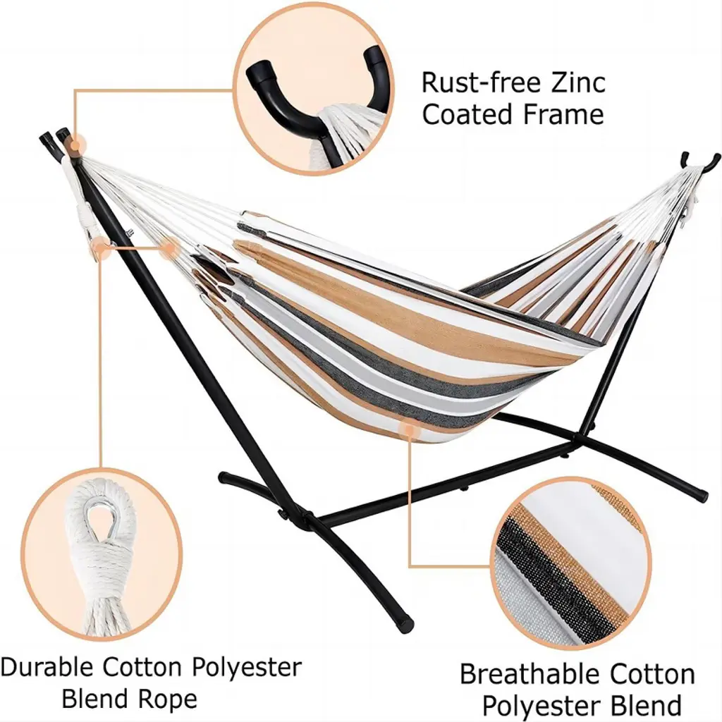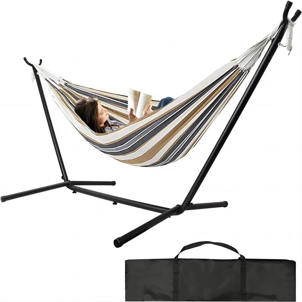 Sugift 2-person Brazilian-style Cotton Double Hammock With Stand Set W/ Carrying Bag - Brown