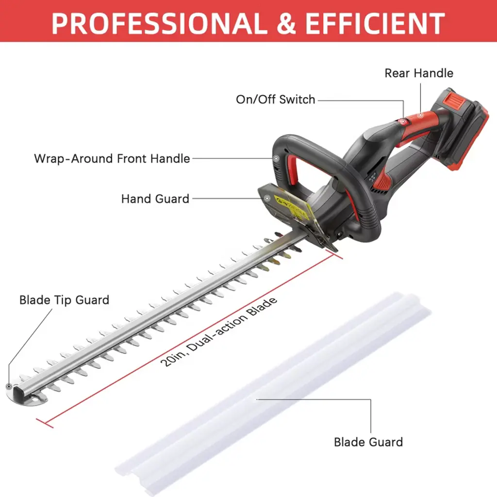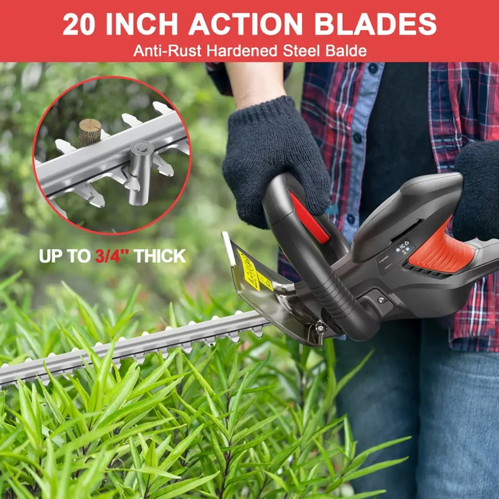 Sugift 20v Cordless Hedge Trimmer - 20.5" Dual-action Blade, Electric Bush Trimmer, 4.0ah Battery & Fast Charger Included