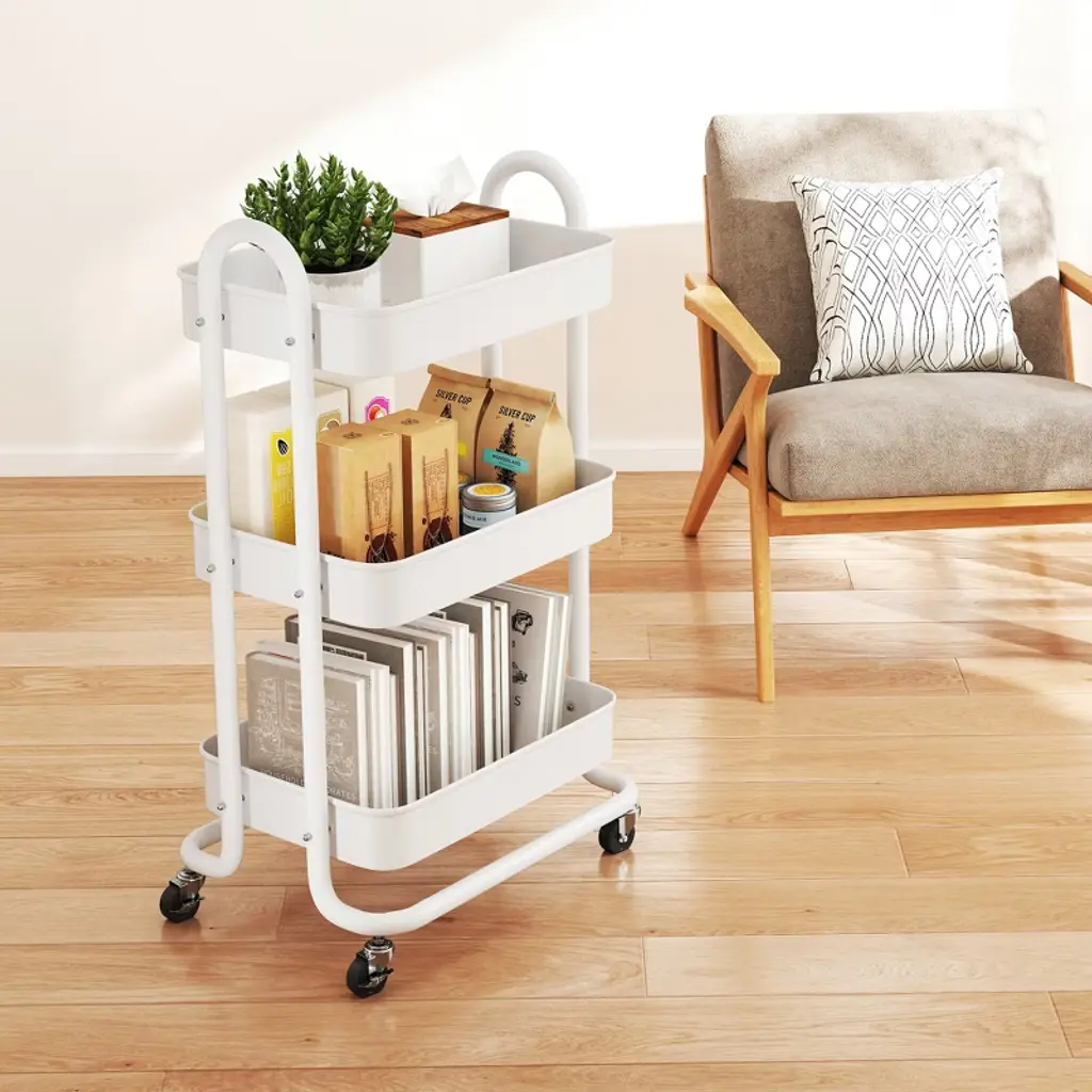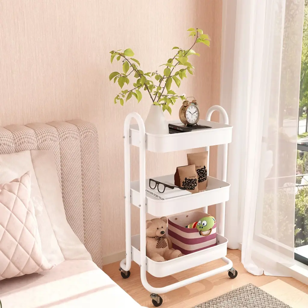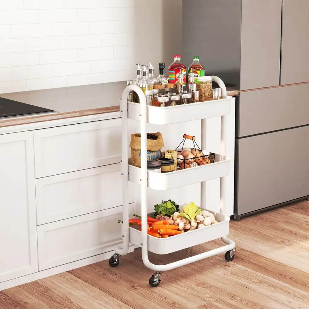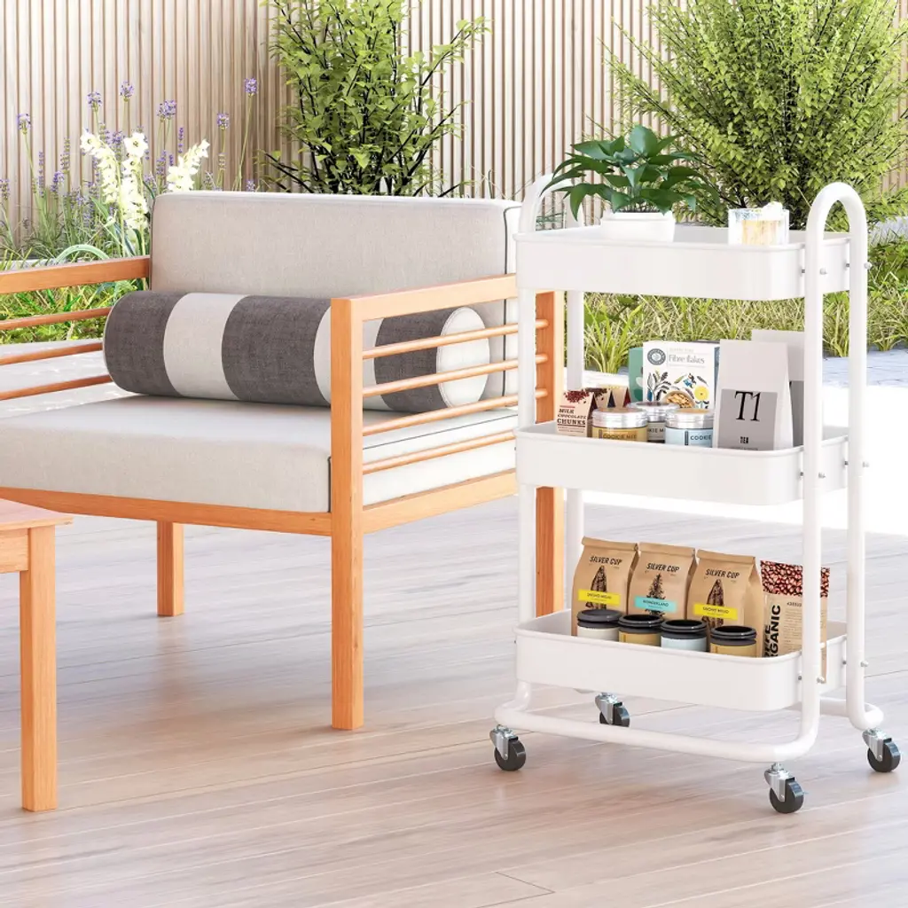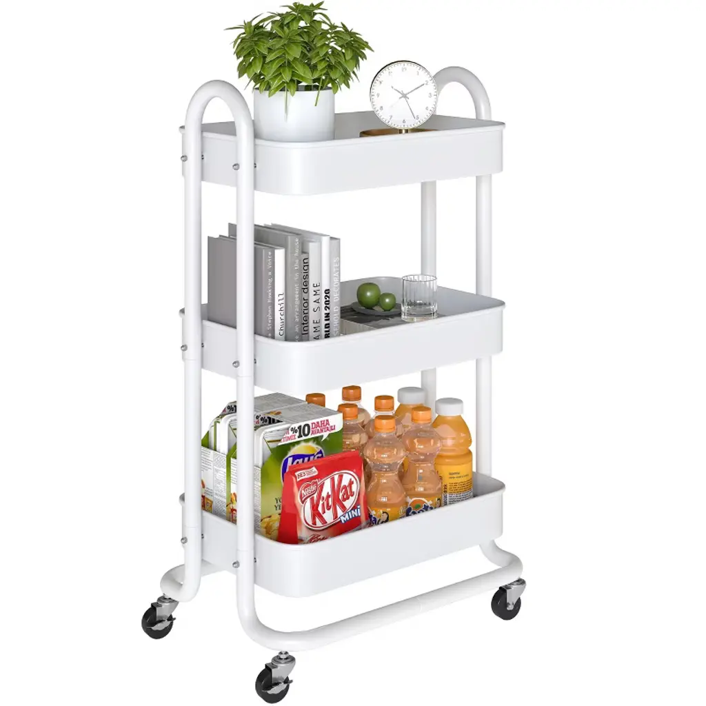Sugift 3-tier Metal Rolling Utility Cart - White