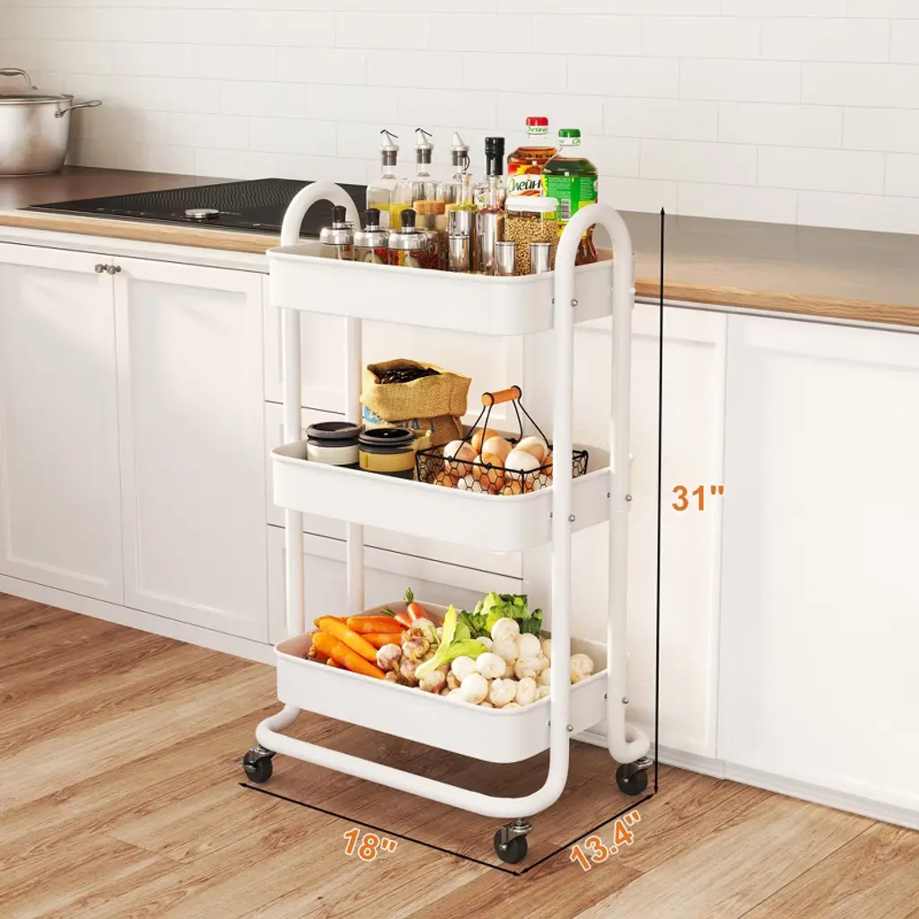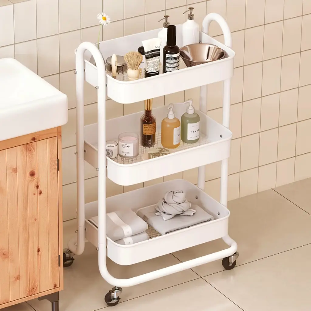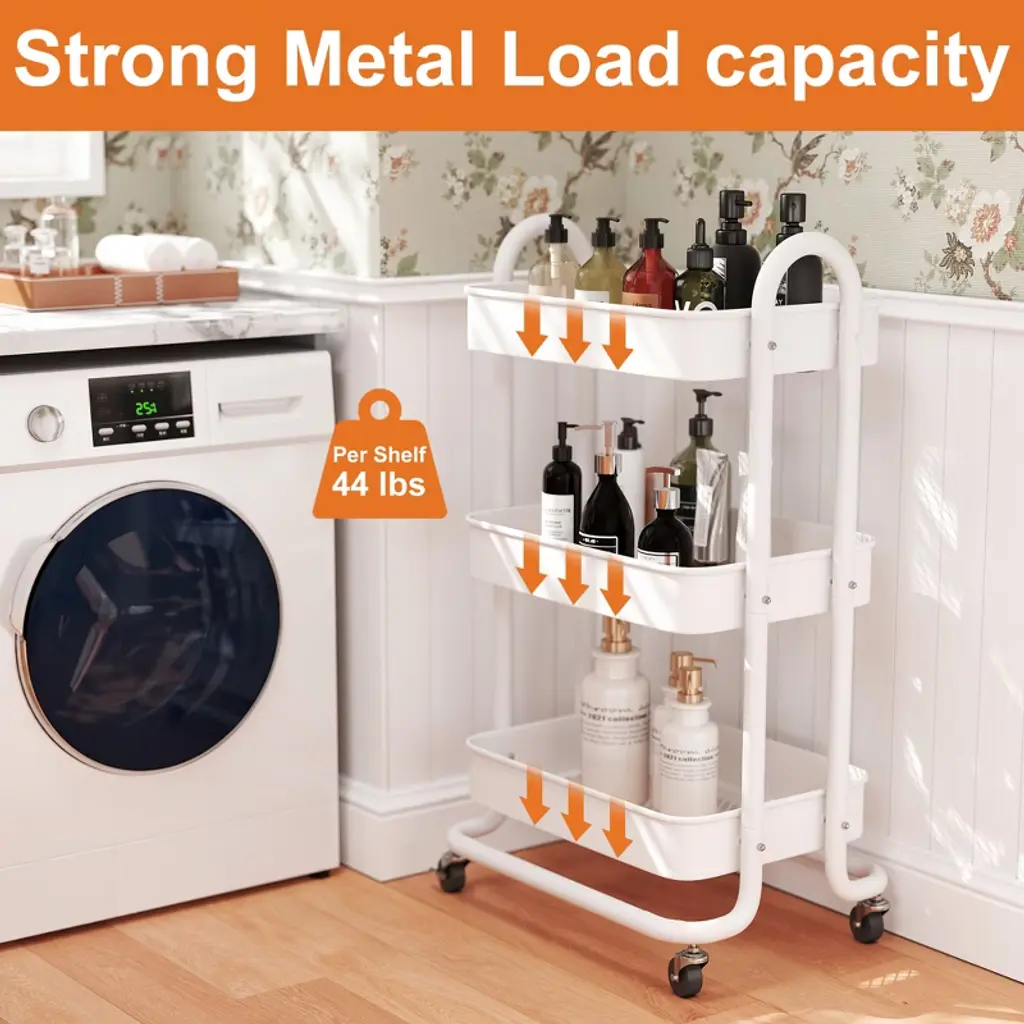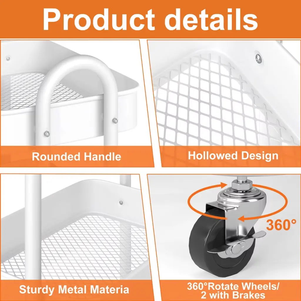 Organize your space effortlessly with this versatile 3-tier metal rolling cart from SUGIFT. Featuring sturdy steel shelves and a sleek white powder-coated finish, it blends durability with style. Smooth-rolling, lockable wheels ensure easy mobility and stability wherever you need it—perfect for kitchens, bathrooms, offices, or craft rooms. Compact yet spacious at 18"W x 13.4"D x 31"H, it maximizes storage without sacrificing valuable floor space. Features: Durable Construction: Sturdy metal frame with rust-resistant white finish. Easy Mobility: Smooth-rolling wheels, with two locking casters for stability. Compact Storage: Space-efficient three-tier design fits tight spaces. Multipurpose Usage: Ideal for kitchens, bathrooms, offices, or craft rooms. Easy Assembly: Simple setup with included instructions and hardware. Specifications: Brand: SUGIFT Color: White Material: Powder-coated Metal Dimensions: 18 in (W) x 13.4 in (D) x 31 in (H) Total Weight Capacity: 66 lbs (Approx. 22 lbs per shelf) Number of Shelves: 3 Wheels: 4 casters (2 lockable) Packing List: Metal Rolling Cart Frame with 3 Shelves × 1 360° Swivel Wheels (2 Lockable) × 4 Hardware Kit for Assembly × 1 Instruction Manual × 1