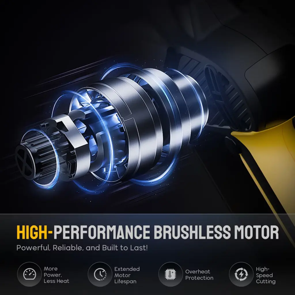 This compact yet powerful 8-inch cordless chainsaw is engineered for effortless cutting with one hand. Featuring a high-efficiency brushless motor, fast 6.8 m/s chain speed, and automatic oiling system, it delivers smooth performance with extended durability. A safety lock, quick chain stop, and anti-accidental start button ensure optimal user protection. The 20V lithium-ion battery provides up to 60 minutes of runtime, making it ideal for pruning, firewood cutting, and DIY projects. Features • 8-inch guide bar for versatile cutting tasks • Brushless motor for increased power and lifespan • Anti-kickback and quick brake response • Automatic oiling system with 35ml oil tank • Battery-powered with no cords or gas needed • Includes spare chain for replacement • Clear oil level window for maintenance Specifications • Guide Bar Length: 200 mm / 8 inch • Chain Speed: 6.8 m/s • Battery Type: 20V 2.0Ah Lithium-Ion • Runtime: Up to 60 minutes per charge • Chain Material: Manganese Steel • Oil Tank Capacity: 35 ml (1.18 fl oz) • Safety Features: Safety lock, quick stop brake, anti-start button • Motor: High-efficiency Brushless Motor • Product Weight: 3.5 lbs (excluding battery)