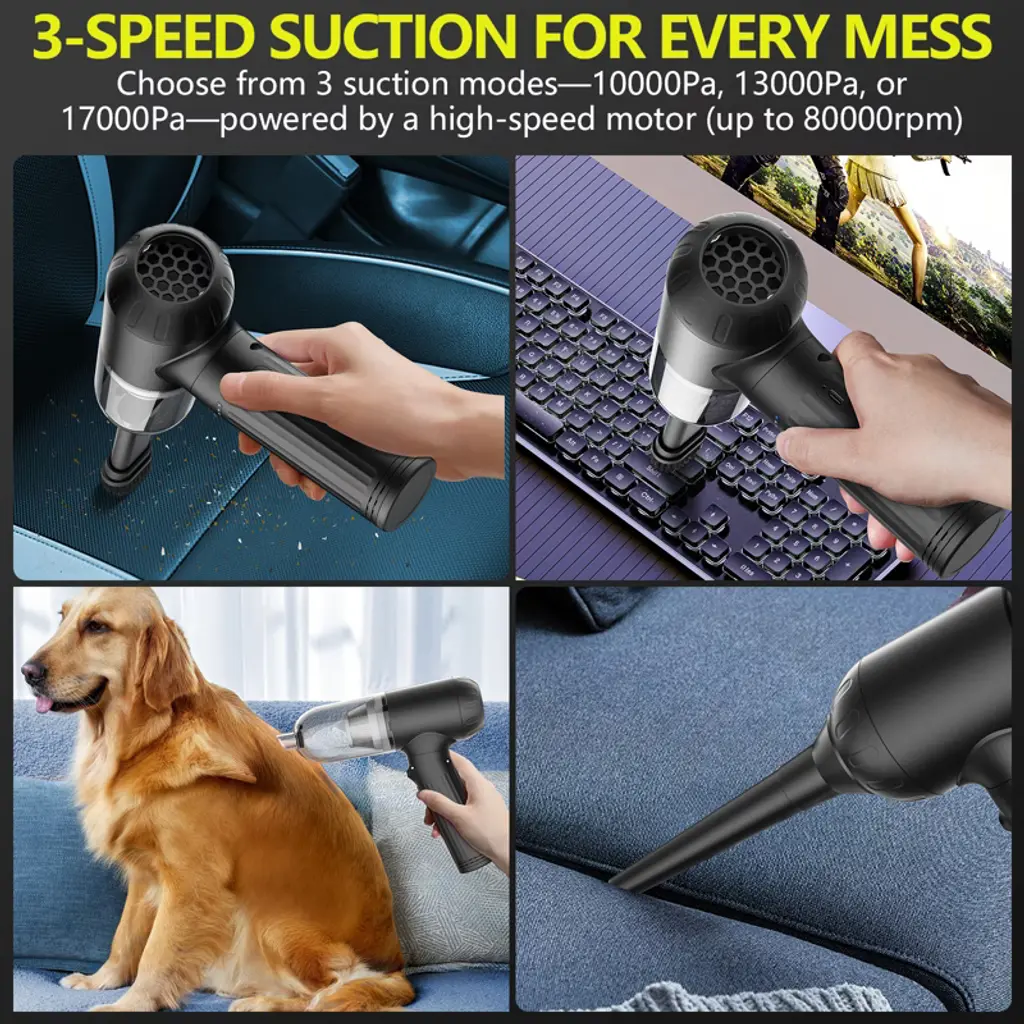 Sugift Cordless Air Duster & Vacuum Cleaner – 17000 Pa, 3 Speeds, Usb-c Fast Charge, Lightweight For Auto, Office