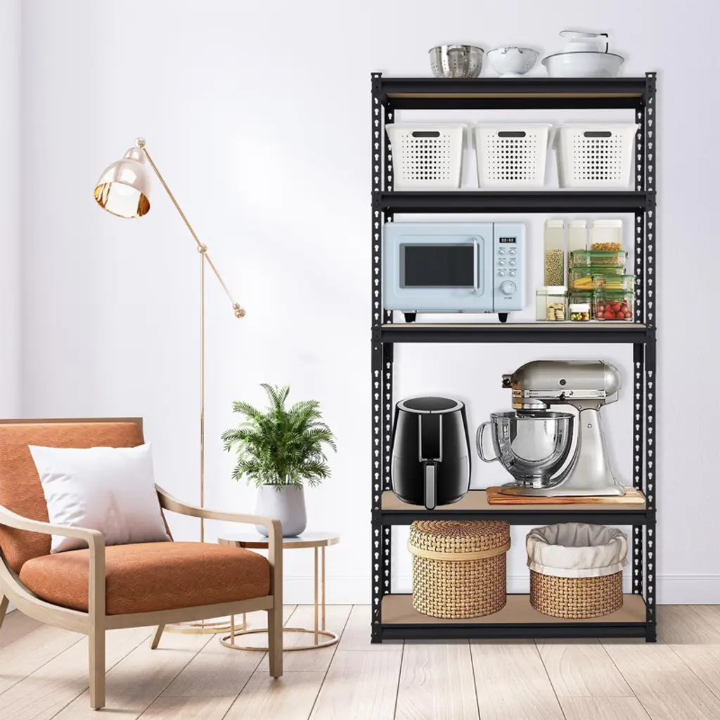 Our metal foldable storage shelf is the perfect addition to any home or office. With its detachable, 360-degree rotating silent wheels, you can effortlessly move it around. The mesh side design keeps your items secure, while the tripod design at the back ensures stability. Whether you need extra storage in your kitchen, living room, garage, or even for your office supplies, this shelf has you covered. Best of all, it unfolds in just 5 seconds with no assembly required! Features Installation-free, folds in 5 seconds, easily bears 750 lbs without wheels. Four universal wheels, easy to move, two with brakes installed diagonally, stable and non-slip. Heavy-duty metal and special outer coating, anti-rust, anti-corrosion, anti-skid. Net shelves on both sides to prevent items from falling Specification: Type: 5-Tier Metal Storage Shelving Rack Color: Gray Material: Carbon Steel Whole Size (Unfolded): 28*14*63inch Weight Capacity: 750 pounds without wheels,300 with wheels Style: Modern Fit for: Entryway, bedroom, living room, etc