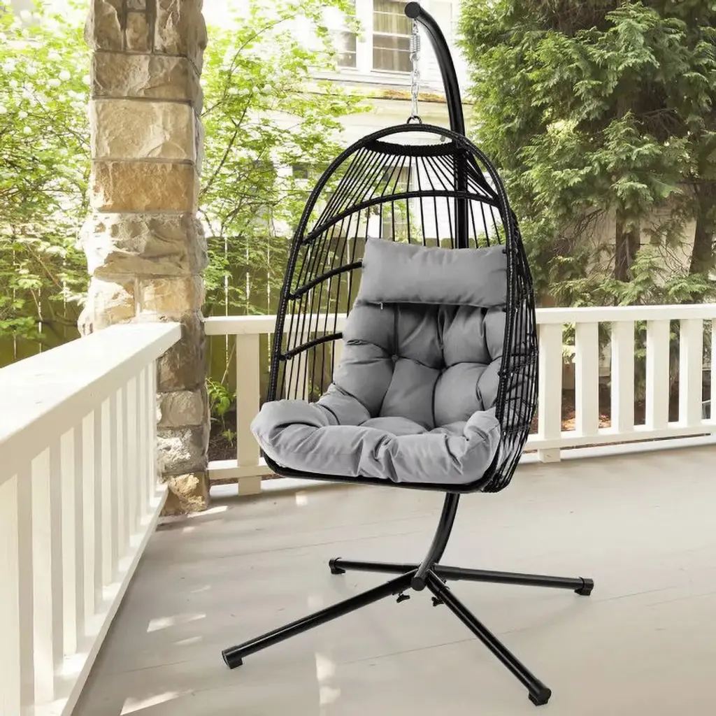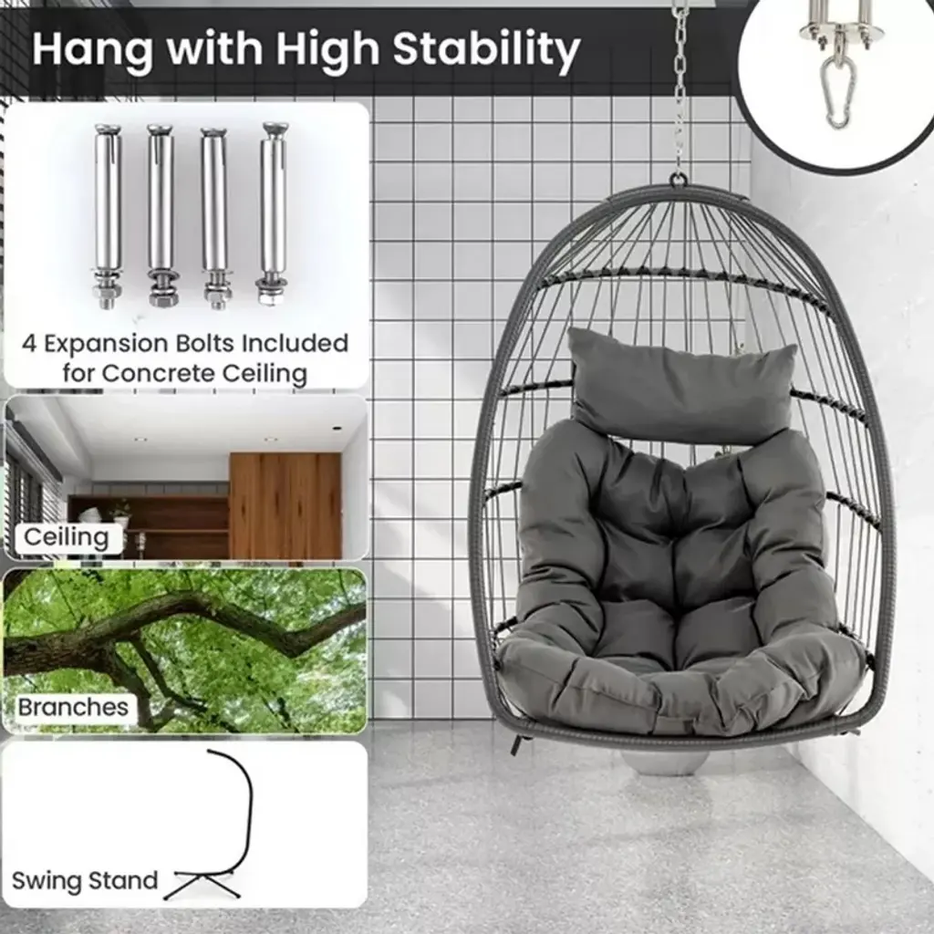 Sugift Hanging Egg Chair With Stand And Soft Cushion - Foldable Swing Chair