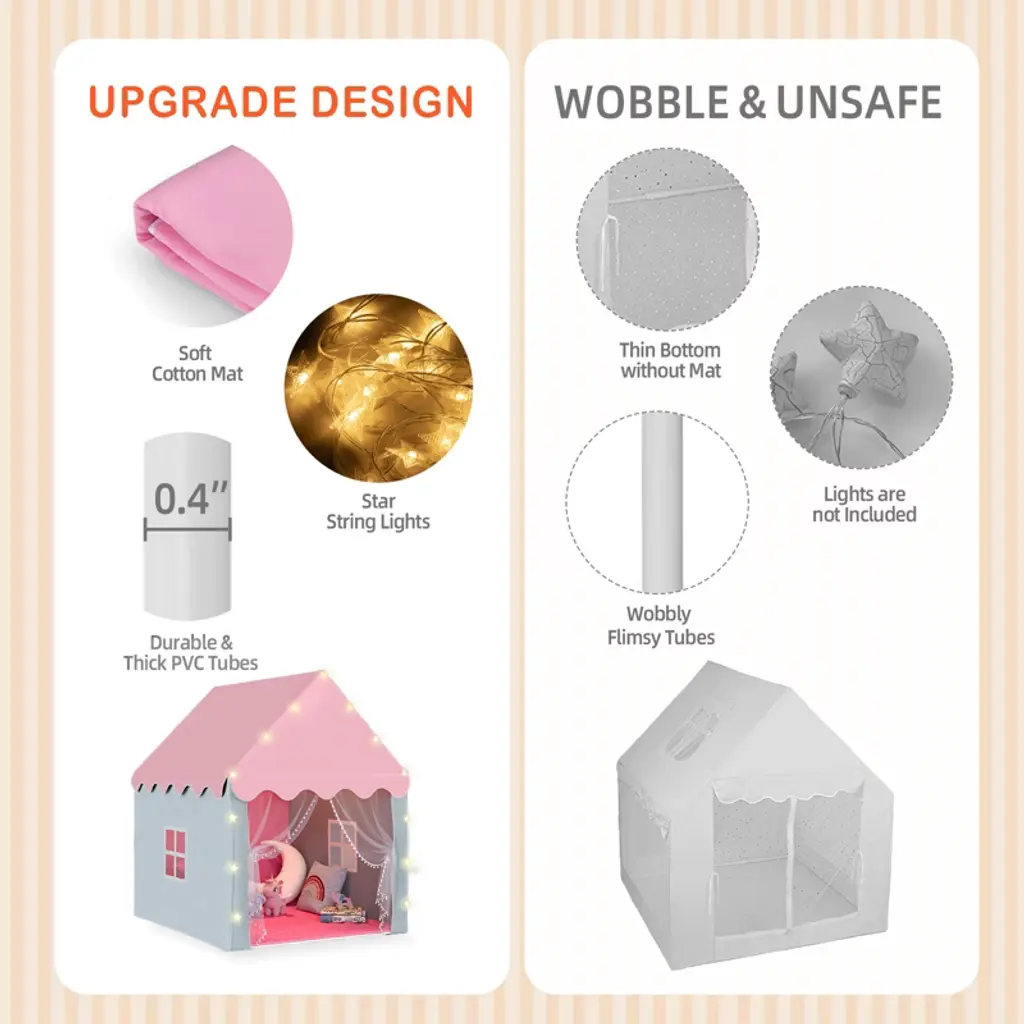 Sugift Kids Play Tent House With Lights Large Indoor Outdoor Playhouse With Cotton Mat Breathable Fabric