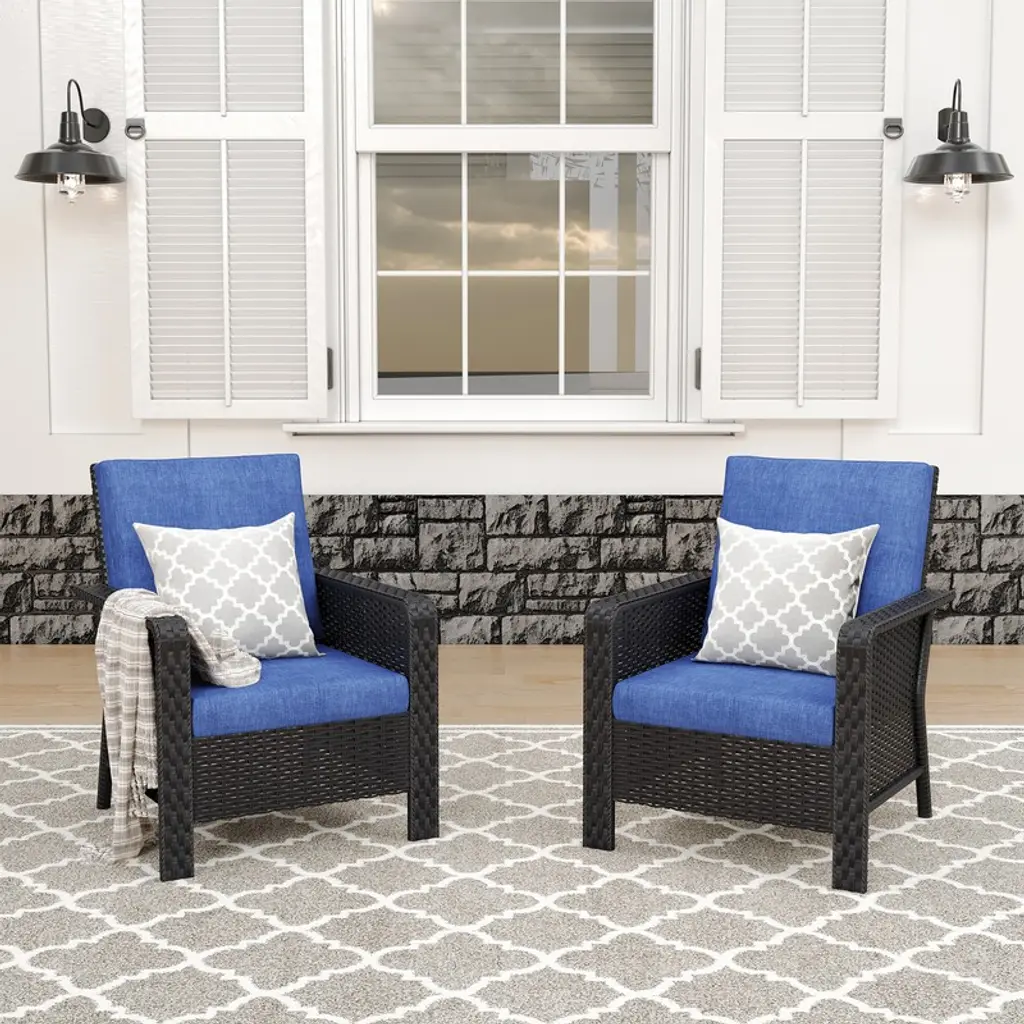 Sugold 2-piece Hand Woven Wicker Patio Seating Group With Blue Cushions