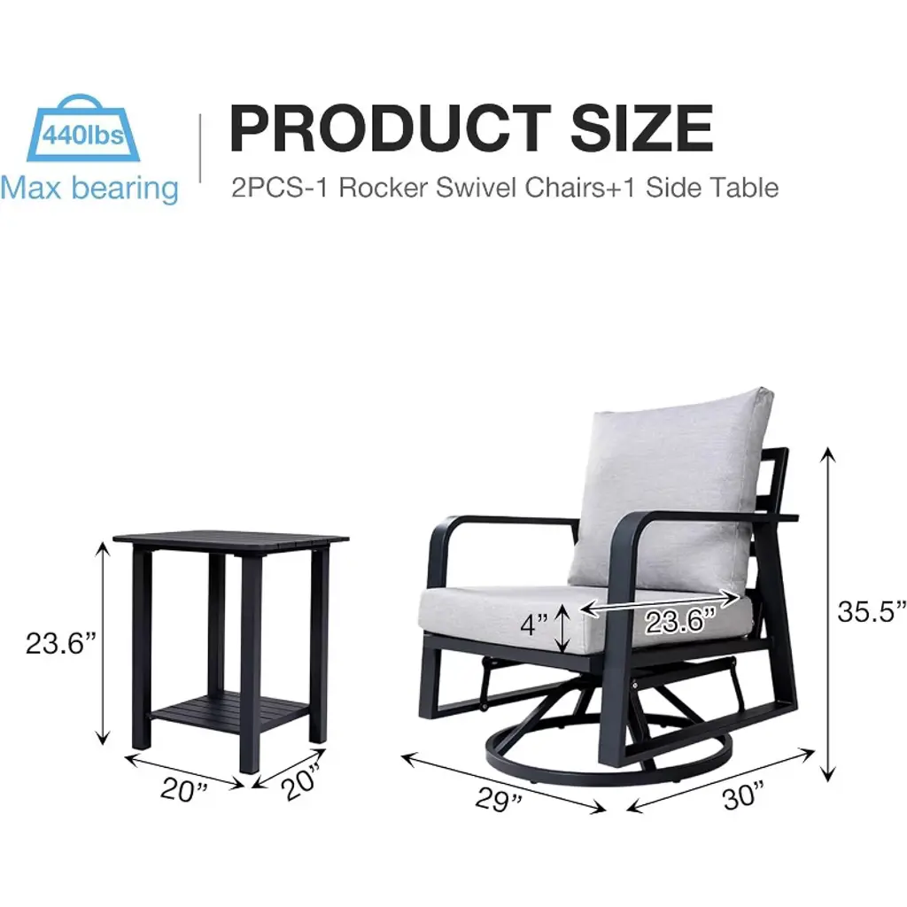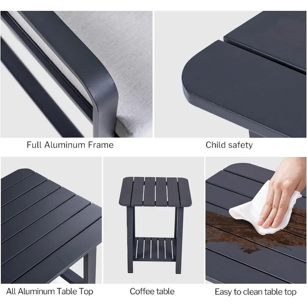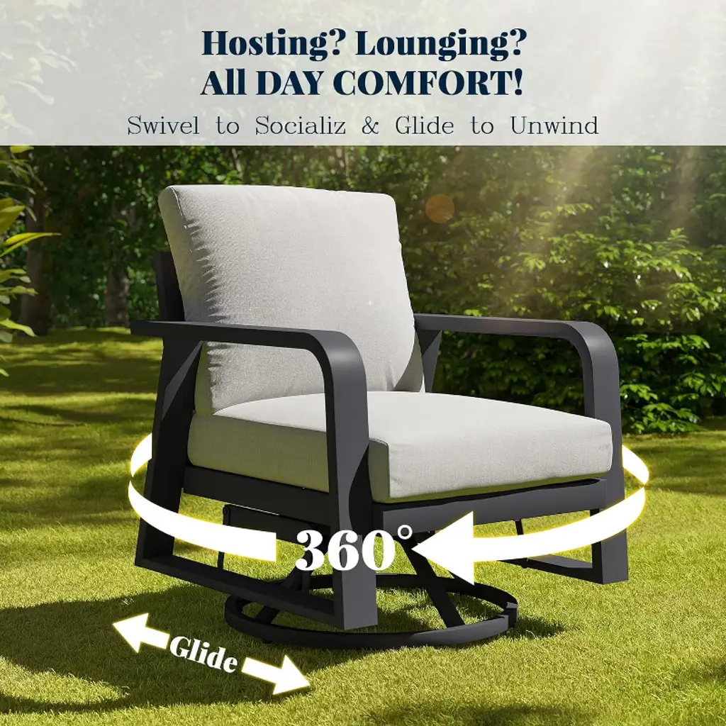 Introducing our Aluminum Patio Single Chair - a perfect blend of style and durability, designed to elevate your outdoor experience throughout the year. Crafted with fashion-forward and premium materials, this set adds a touch of elegance to your patio decor. Making it an ideal choice for sunrooms, gardens, balconies, and poolside areas. Made from high-quality matte black aluminum alloy, it boasts advantages such as sun resistance, waterproofness, rust resistance, insect resistance, and corrosion resistance, surpassing traditional wicker outdoor furniture in durability and aesthetic appeal. The 4-inch thick water-resistant seat cushions and soft back cushions provide a relaxed and comfortable seating experience. Easy to assemble and low maintenance, this set ensures you won't have to worry about cracks, splits, or aging. Create a comfortable and luxurious ambiance, enhancing your outdoor space with our premium aluminum patio conversation set.