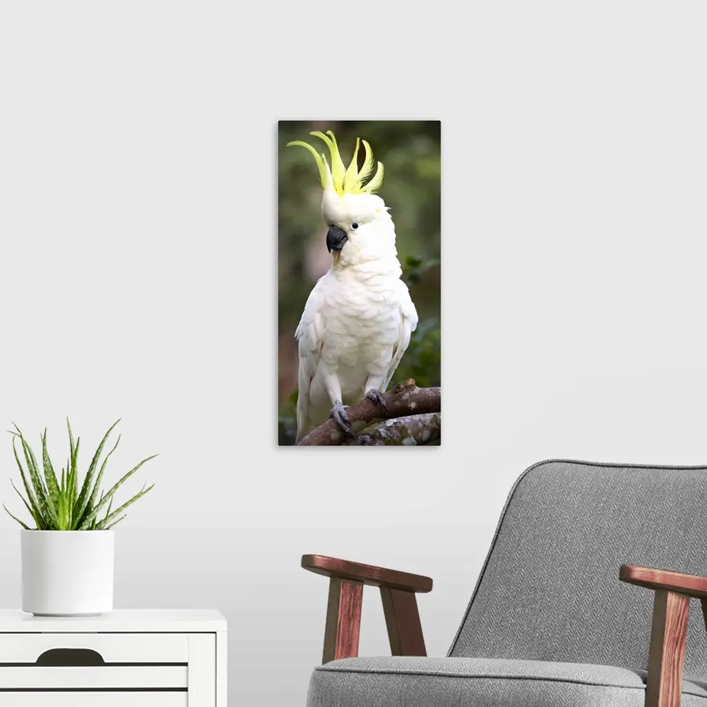 Sulphur-Crested Cockatoo Displaying With Crest Erected, Queensland, Australia