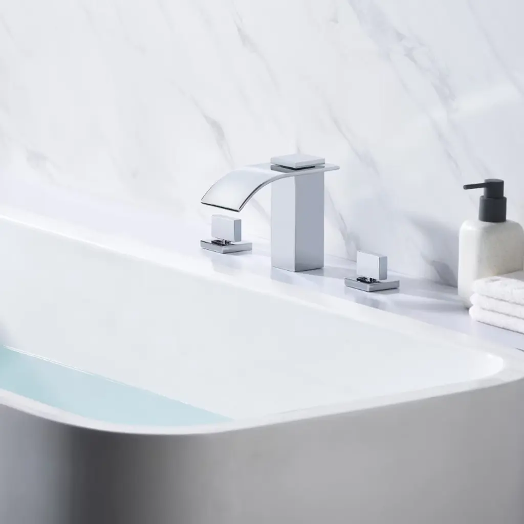 This design of sleek and stylish faucets will add a contemporary look to your tub. This 3 hole tub faucet can be installed directly on the deck of your bathtub. Waterfall spout provides a clear and steady laminar stream and creates a unique look to your bathroom, high flow rate can quickly fill your tub. It comes with two handles that make for hassle-free operation. The elegance and style of this chrome tub faucet is matched by their proven performance and reliability. This tub filler has ICC-ES PMG certification and is compliant with standard: ASME A112.18.1/CSA B125.1-2018, plumbing supply fittings(the same standard as cUPC certification). The brass roughin valve is Lead Free compliant with standard: NSF/ANSI/CAN 372-2022 drinking water system components - lead content and ANSI/CAN/NSF 61-2022. You can install with confidence. Model: S2143CW-TAProduct Name: Waterfall Roman Tub FaucetMaterial: BrassFinish: ChromeFlow Rate: 8.58GPM @ 60PSI Welcome to SUMERAIN! We are dedicated to showcasing our proficiency and unwavering dedication in crafting superior faucets. Our team of talented designers and engineers exert relentless efforts to conceive groundbreaking and aesthetically pleasing faucets that flawlessly amalgamate style and practicality.From sleek and modern designs to classic and timeless styles, we offer a wide range of options to suit various preferences and interior design themes.. We believe that every customer deserves a faucet that not only performs flawlessly but also adds a touch of elegance to their space. About this item specificities 1. The waterfall spout provides a clear and steady laminar stream and creates a unique look to your bathroom, high flow rate(8.58GPM@60PSI) can quickly fill your tub.2. Valves are constructed of solid brass for durability, designed for use with standard U.S plumbing connections.3. Roman tub faucet with 2 handles for effortless flow and temperature control.4. Ceramic disc cartridge to prevent leakage, drips and long term defects. Chrome surface prevents rust and corrosion.5. Pair this deck mount tub faucet with your new or existing bath tub. Designed to fit 3-hole, holes diameter: 1-1/4 inch(32mm). Recommend 8 inch centers to ensure full handle clearance. Please watch video about how to install this sumerain waterfall bathtub faucet.