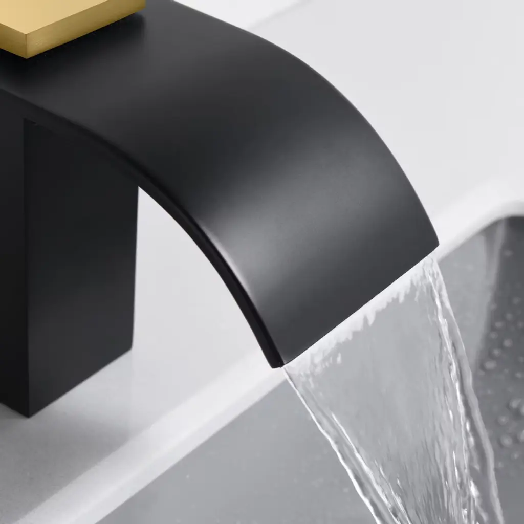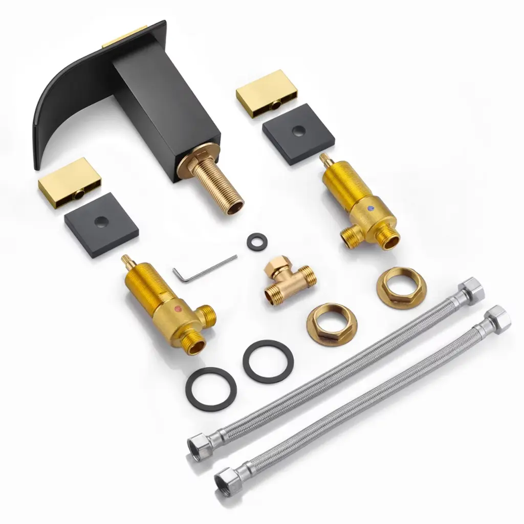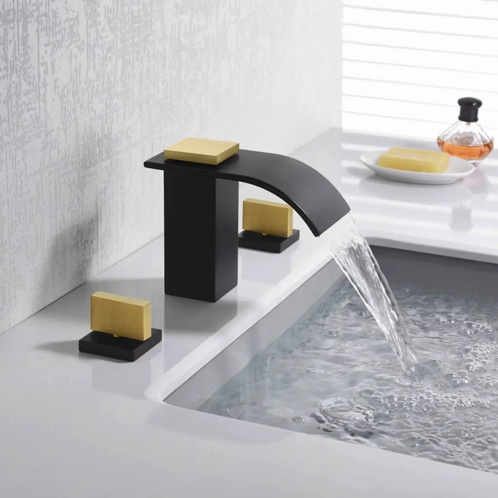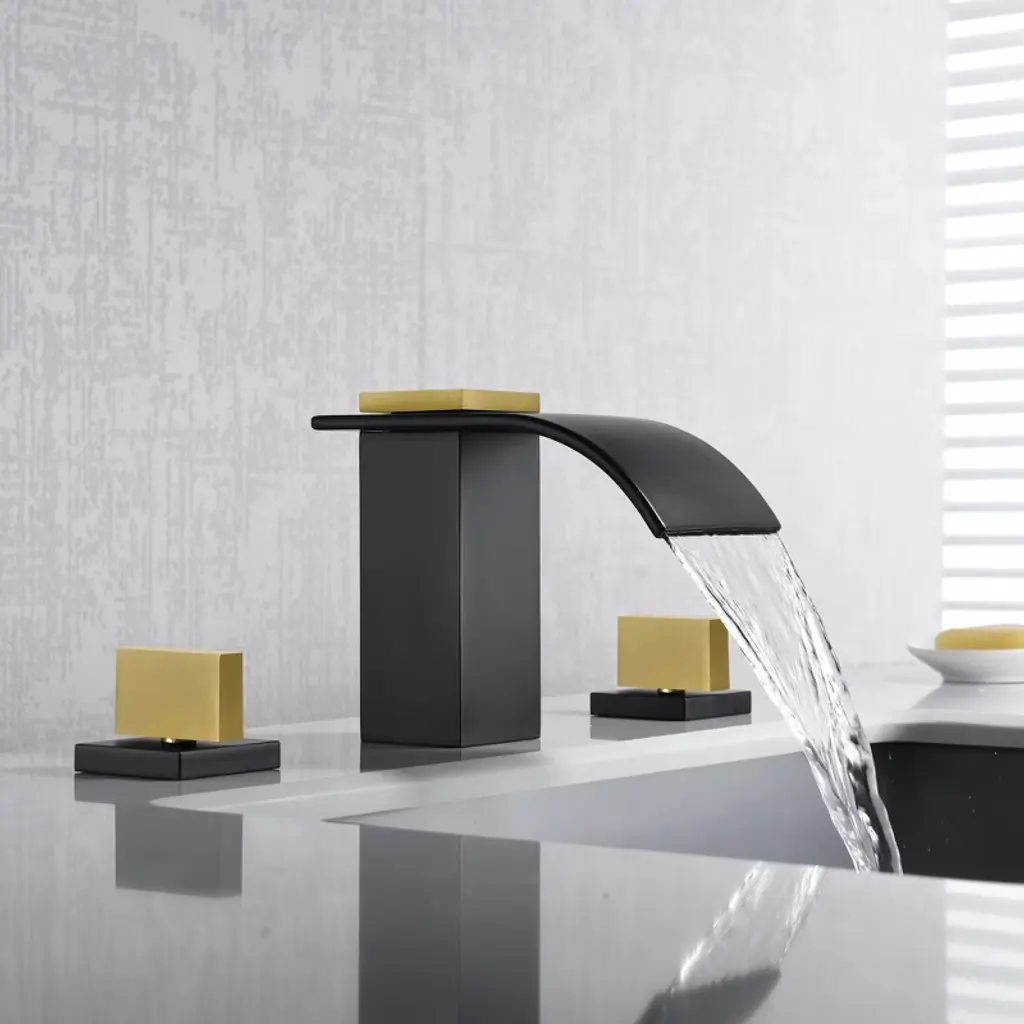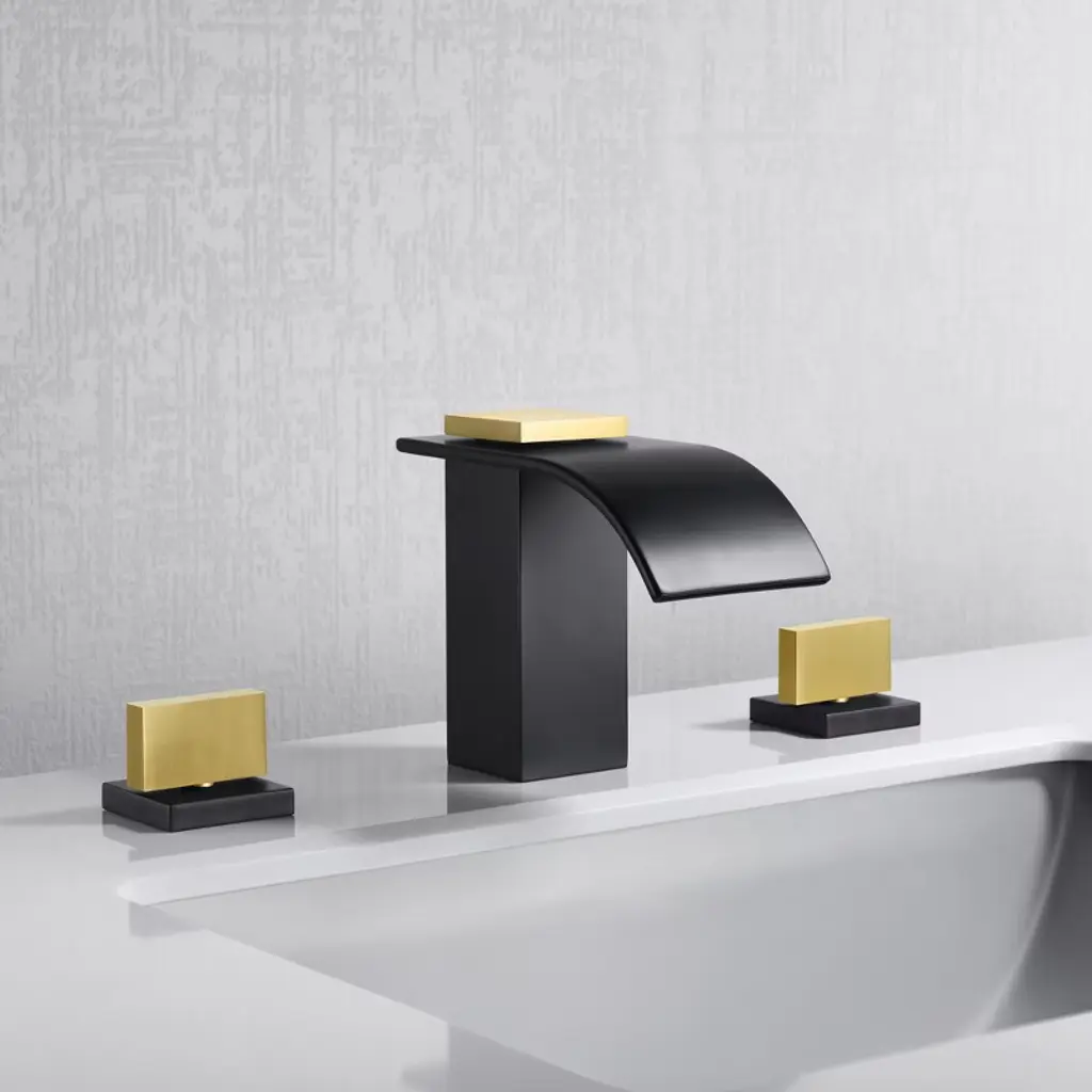 Sumerain 8" Widespread Bathroom Faucet 3 Hole Waterfall Basin Faucet Black And Gold Finish