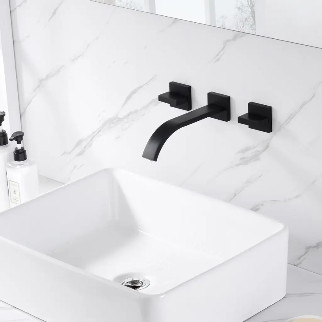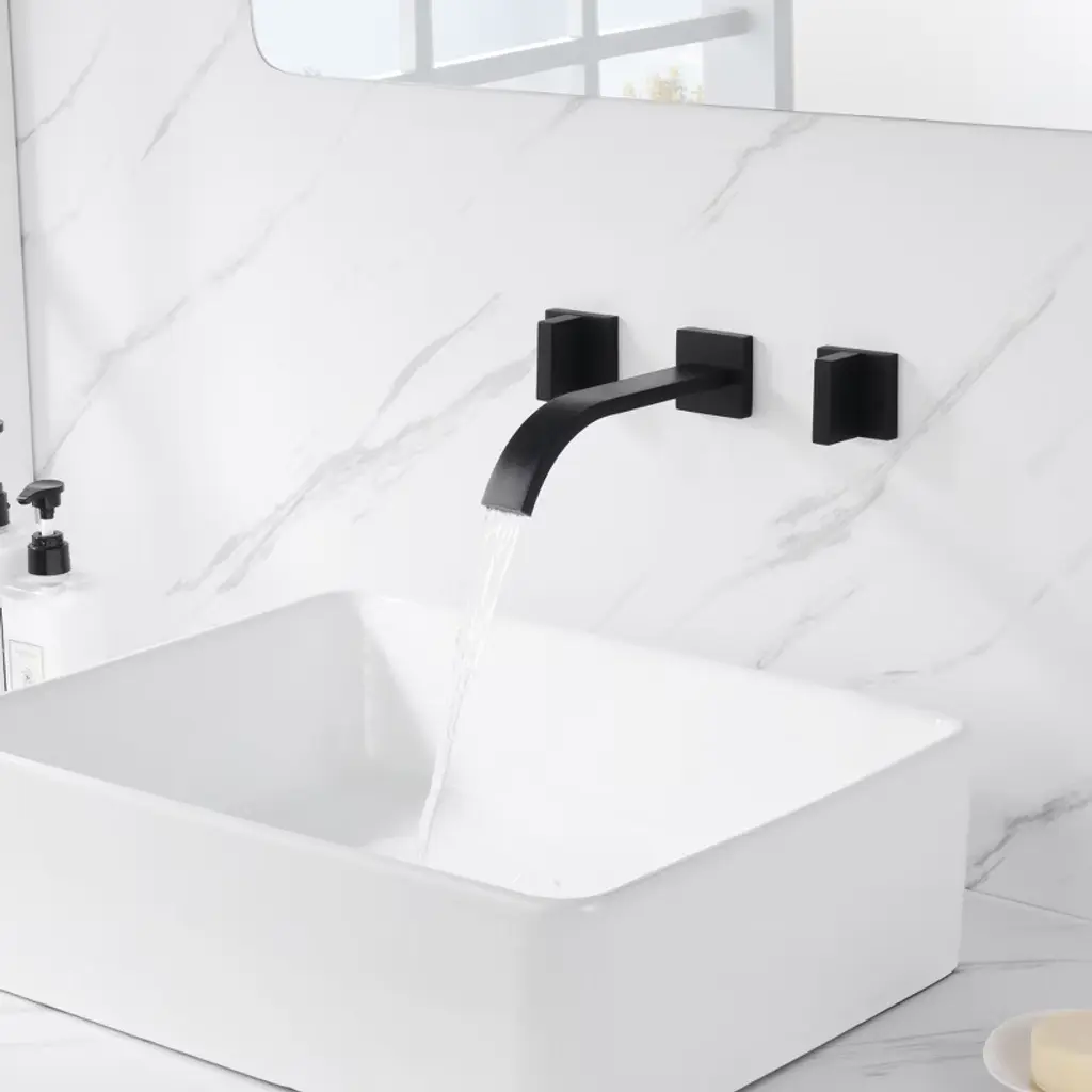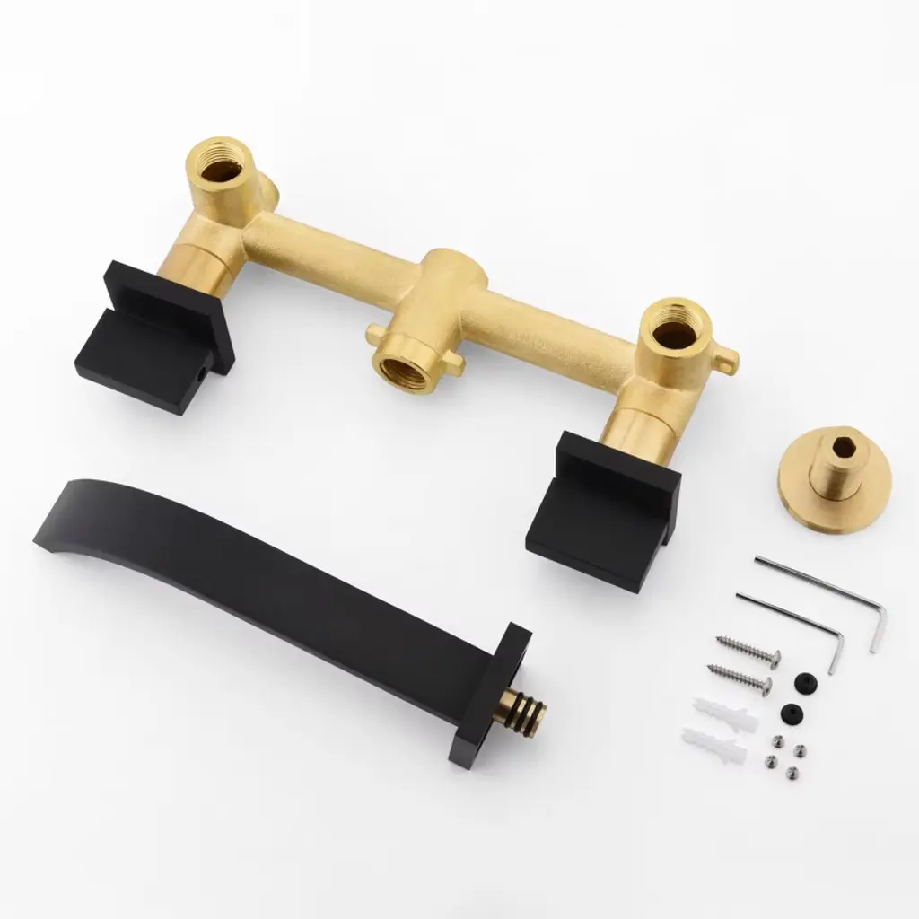 Crafted in solid brass, the sumerain Wall Mount Bathroom Faucet stands the test of time and makes a dramatic effect paired with your bathroom sink. Its sleek, modern design elevates any bathroom and leaves the countertop cleared for a more contemporary look. Water flows through small rectangular holes in faucet spout, creating a waterfall effect when water is running. This bathroom faucet listed in the California CEC modernized appliance efficiency database system, and also in the ECPA Department of Energy (DOE) qualified list. The rough in valve is ICC-ES PMG certified by ICC-ES in 2023, standard:ASME A112.18.1/CSA B125.1-2018, plumbing supply fittings(the same standard as cUPC), Lead Free certificated and compliant with standard:NSF/ANSI/CAN 372-2022 drinking water system components - lead content. It is certified under standard:NSF/ANSI/CAN 61-2022 drinking water system components - health effects. Model:S1392DI-TAProduct Name:Wall Mount Lavatory FaucetFinish:Matte BlackMaterial:Brass Welcome to SUMERAIN! We are dedicated to showcasing our proficiency and unwavering dedication in crafting superior faucets. Our team of talented designers and engineers exert relentless efforts to conceive groundbreaking and aesthetically pleasing faucets that flawlessly amalgamate style and practicality.From sleek and modern designs to classic and timeless styles, we offer a wide range of options to suit various preferences and interior design themes. We believe that every customer deserves a faucet that not only performs flawlessly but also adds a touch of elegance to their space. About this item specificities 1. Wall mount lavatory faucet body constructed of solid brass.2. Black finish will resist corrosion and tarnishing through everyday use.3. Double handles. Low-wear ceramic cartridge.4. Rough-in valve included.5. To save time and extra expense, please show your plumber the installation video on product page before installation and please keep the user manual properly for the future need.