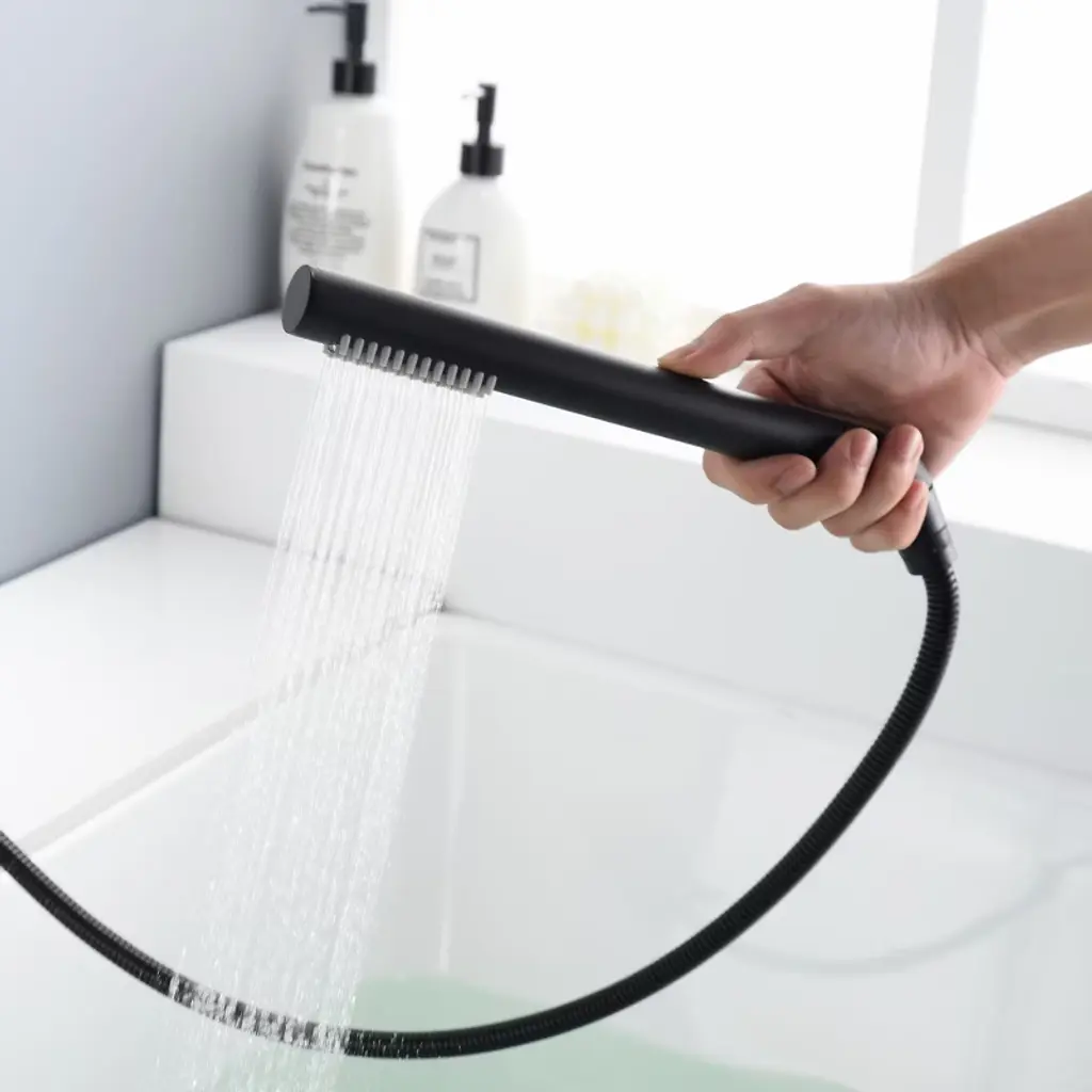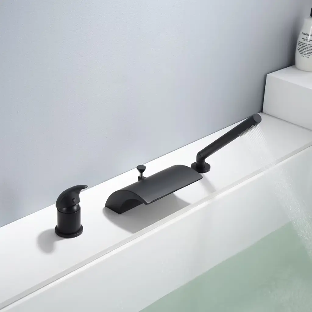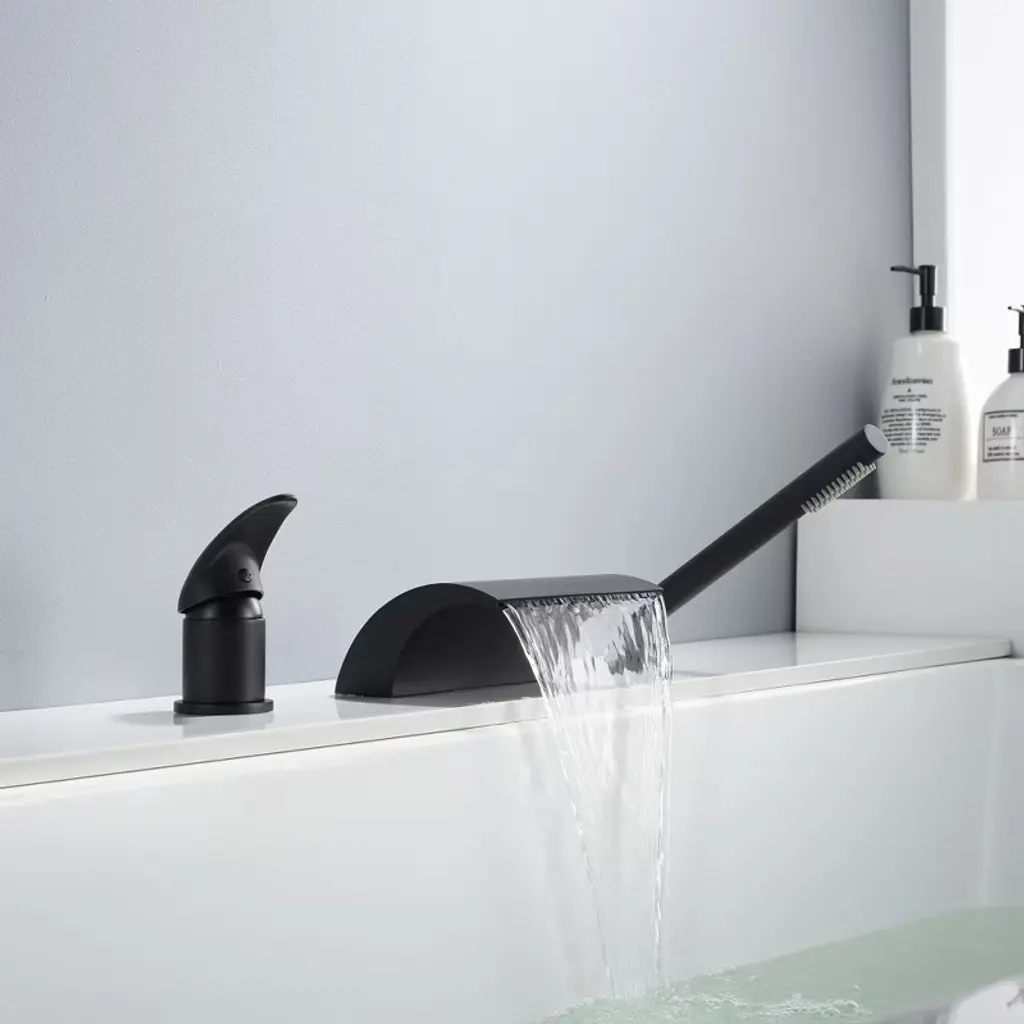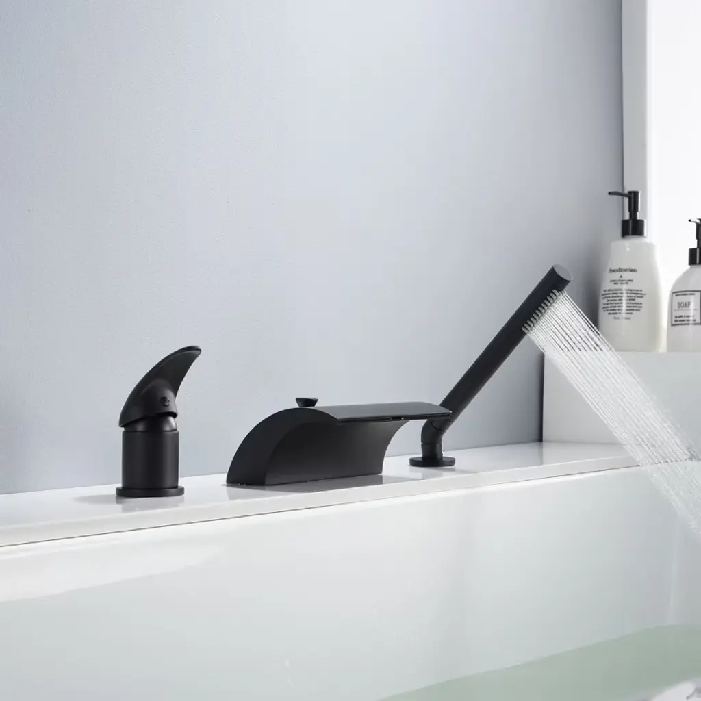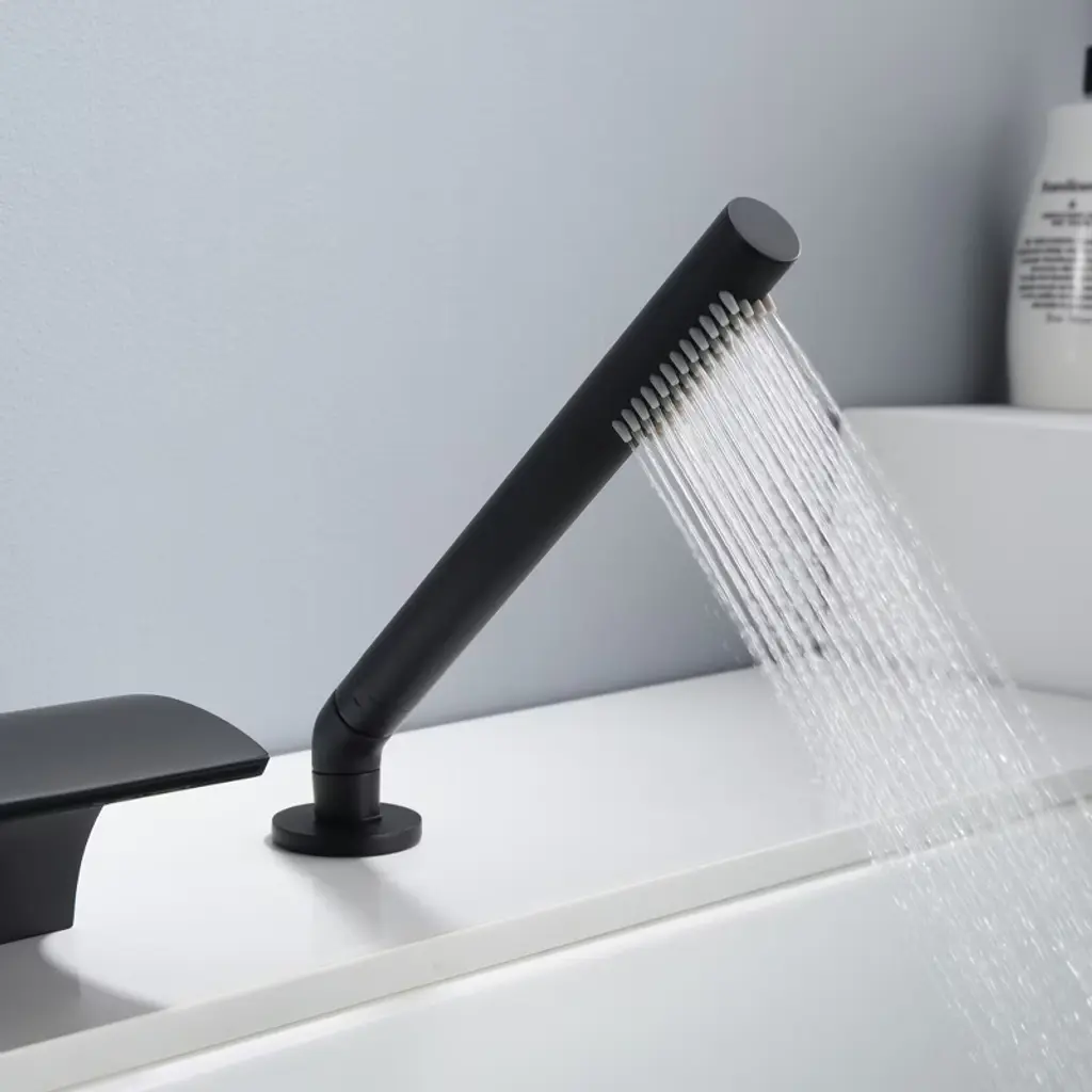 Sumerain Black Roman Tub Faucet With Hand Shower High Flow Wide Waterfall Spout With Diverter