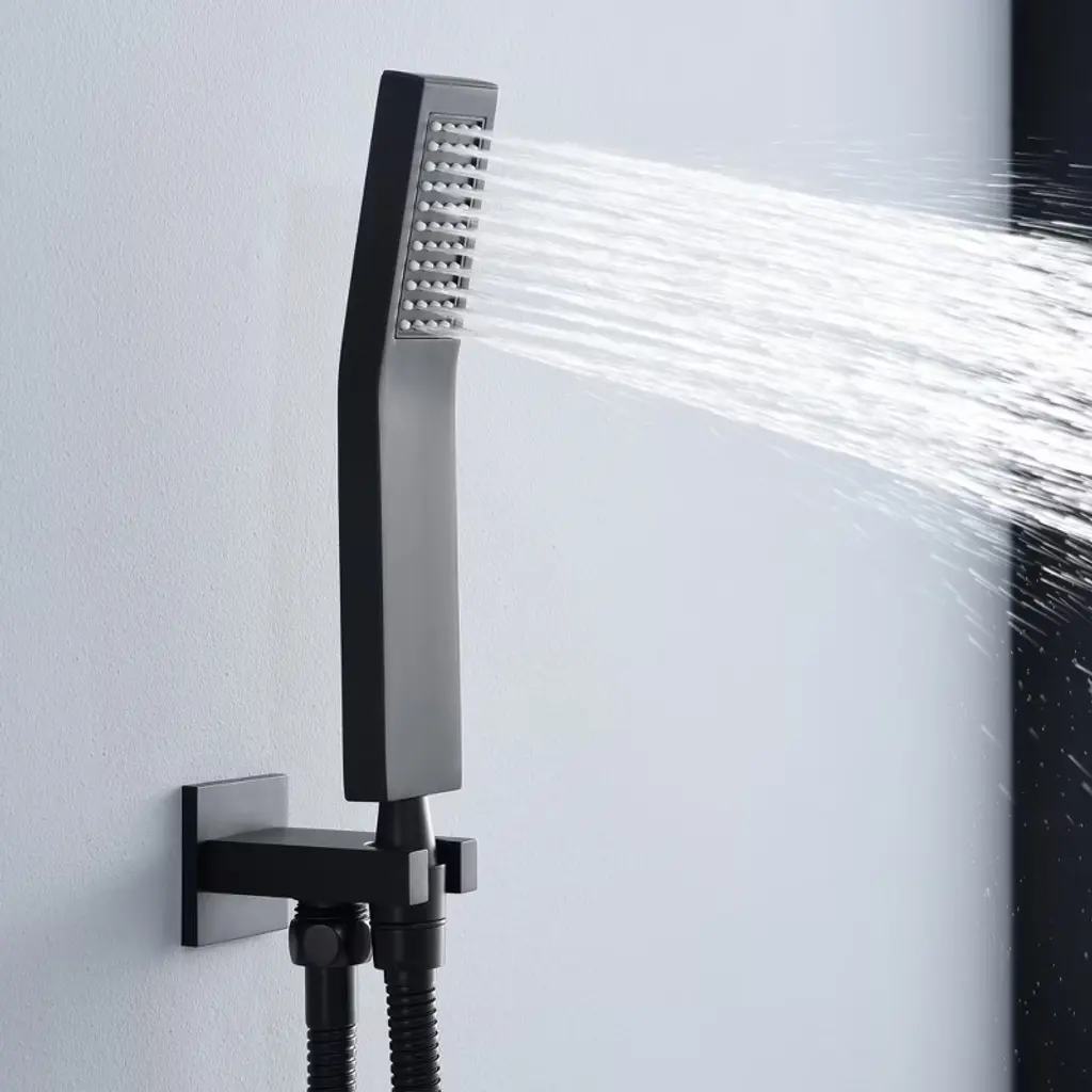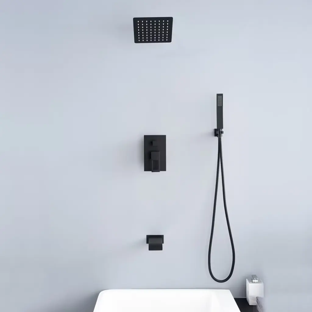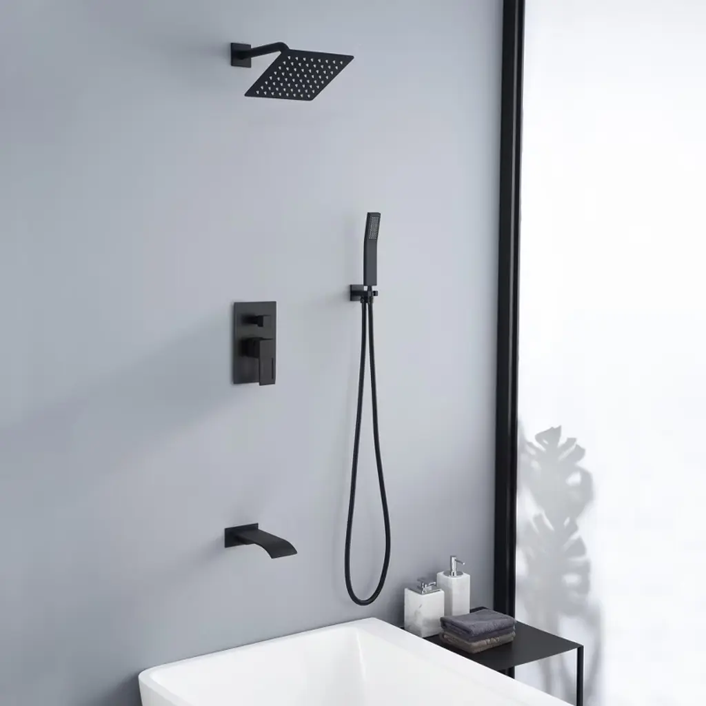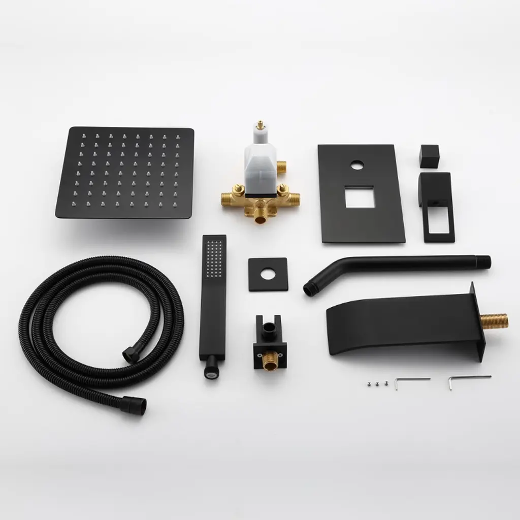 Transform your bathroom into a modern masterpiece with this sumerain tub and shower system! A C-UPC certificated pressure balancing rough-in valve prevents scalding while maintaining your desired temperature and compensating for pressure fluctuation.The wide waterfall spout with large water flow (4.17GPM at 60PSI)to quickly fill your bathtub.The flexible hand shower allows you to take care of every inch of the body and bathes your children and pets with great convenience. High pressure ultra-thin rain shower head and hand wand with easy clean spray holes allow you to easily wipe away calcium and lime build-up with the touch of a finger.Standard US NPT 1/2" connector is compatible with most existing shower systems' pipes.A perfect addition to your bathroom! 1.8GPM(6.8L/MIN)showerhead and hand shower flow rate,product listed in the CEC modernized appliance efficiency database system and DOE list, It has WaterSense certification and compliant with standard: EPA WaterSense specification for showerheads(version 1.1,July 26,2018). This tub and shower system also has ICC-ES PMG certification and is compliant with standard: ASME A112.18.1/CSA B125.1-2018, plumbing supply fittings(the same standard as cUPC certification). Model: S3233DW-B-TAProduct Name: Rain Shower SystemMaterial: Brass, Stainless SteelFinish: Matte BlackPressure Balance Rough-in Valve SUMERAIN is a established name in the US plumbing industry which puts great emphasis on stylish and durable. Perfection does not always have to be expensive. SUMERAIN masterful products are high quality and inexpensive. Over three decades of manufacturing experience has provided us with the extensive market knowledge and the ability to offer new products at reasonable expense. The key to our success is intelligentization- we have rapidly expanded into exciting new products groups to be at the forefront of the market. We are dedicated to bringing you the latest designs utilising the most up-to-date technology. The new product design team benefit from a development system audited to ISO9001 standards, meaning each product is designed, sourced, evaluated and warehoused in a high standard. About this item specificities 1. With the thickened solid brass cast valve and anti-scalding pressure balance cartridge, this tub shower faucet especially designed for American users>2. The tub and shower system includes: square rain shower, handheld shower head, shower arm, shower hose,shower elbow with holder, shower mixer control valve, tub spout. Trim and all parts of this tub faucet set are constructed of metal, ensures durability and providing aesthetic appeal.3. This shower system has three modes: waterfall tub spout, rain shower head and hand wand, which could easily switch by turning the square knob on the valve. The lever handle easily adjust the hot/cold water flow and temperature.This shower set features a wide waterfall spout with large water flow (4.17GPM at 60PSI)to quickly fill your bathtub.4. The American standard NPT1/2 connector is compatible with most existing shower systems' pipes,for saving man-hour cost during installing.5. Even at low water flow, the use of ultra-thin rain shower head offers high water pressure. Rain shower head and hand wand with touch clean soft, rubber nubbins (spray holes) that allow you to easily wipe away calcium and lime build-up with the touch of a finger. This is particularly helpful for areas with hard water.