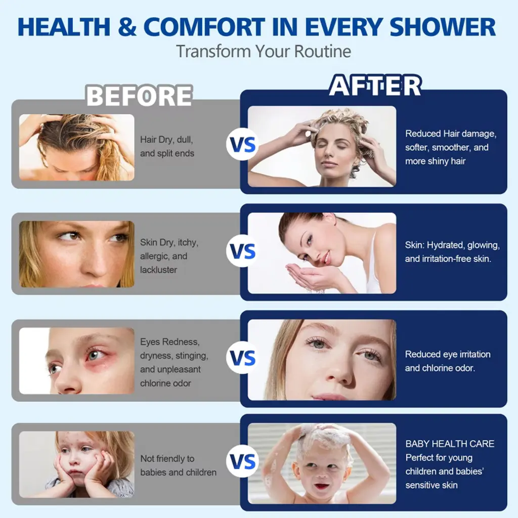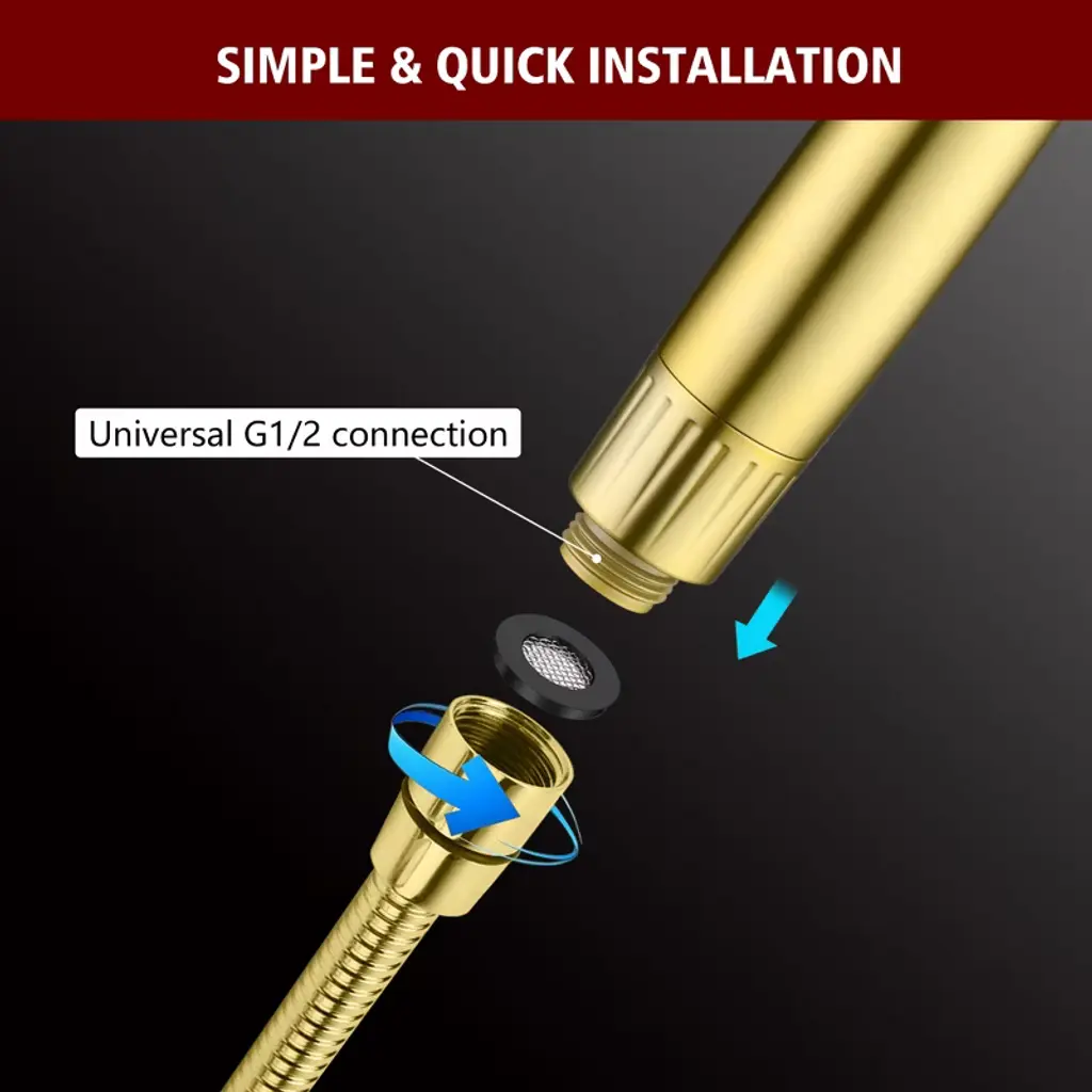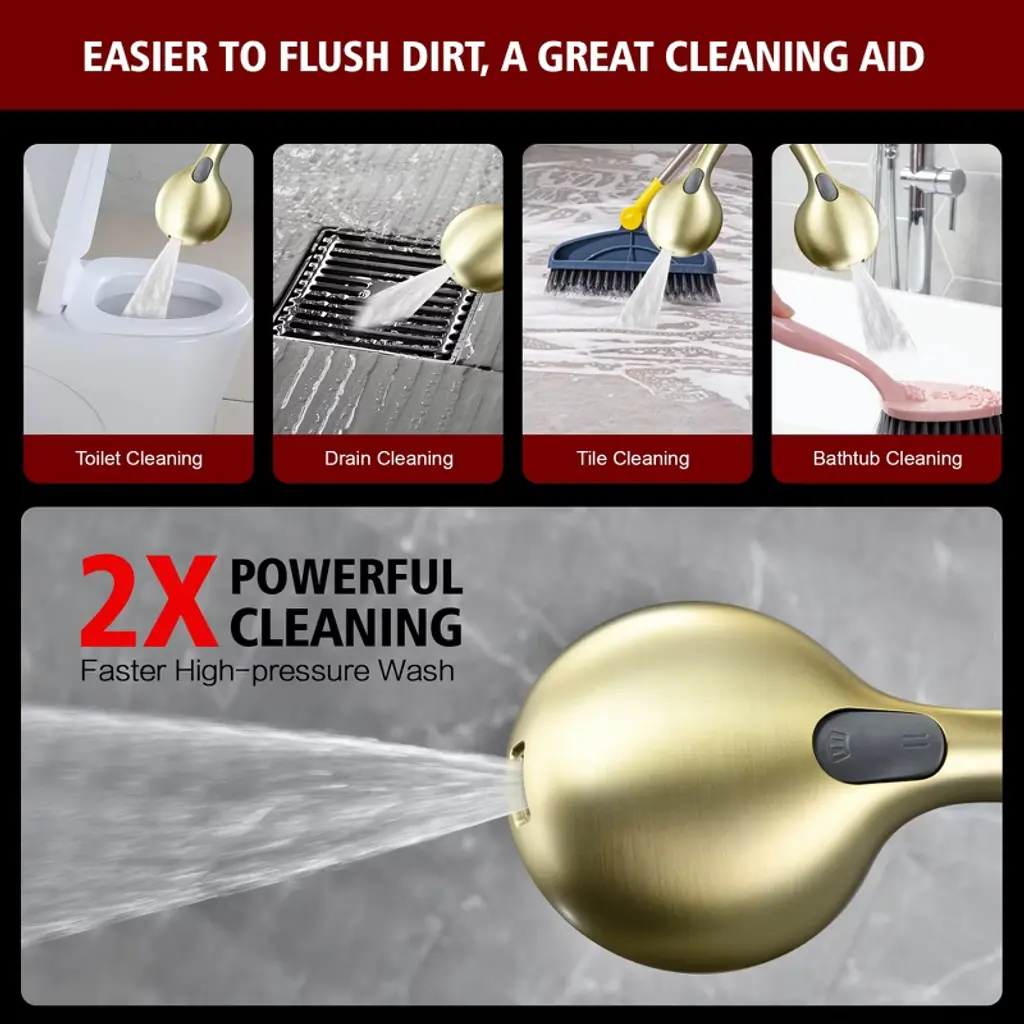 Upgrade your daily routine with this multi-functional filtered handheld shower head engineered for wellness-focused homes. The advanced 4-stage filtration system actively removes harsh chemicals - chlorine elimination protects sensitive skin while anti-scale filtration preserves plumbing systems. Choose from 9 spray settings including mist/massage modes, plus industrial-strength Rush Clean mode perfect for pet bathing or deep-cleaning tasks. Our filter hand shower can effortless filter replacement in under a minute - each long-lasting cartridge purifies 3,000 gallons (6-9 month usage). Constructed with food-grade ABS plastic and flexible silicone nozzles, this filter handheld shower sprayer resists scale buildup and maintains steady water pressure. Model: S4368U-BGProduct Name: Handheld Shower witH FilterMaterial: ABSFinish: Brushed Gold Welcome to SUMERAIN! We take pride in our expertise and commitment to producing top-of-the-line faucets, our team of skilled designers and engineers work tirelessly to create innovative and visually appealing faucets that seamlessly blend form and function. From sleek and modern designs to classic and timeless styles, we offer a wide range of options to suit various preferences and interior design themes. We believe that every customer deserves a faucet that not only performs flawlessly but also adds a touch of elegance to their space. About this item specificities 1.FOF Tech Stops Hard Water Clogs Salt-free scale prevention blocks 99% mineral buildup in hard water areas(Specially in AZ/TX/CA), maintaining strong water flow for 3 tons (vs. 1 ton in standard shower heads with filters). 2. Chlorine Removal + Skin-Soothing VC Calcium sulfite & KDF-55 filter neutralize harsh chlorine, while Vitamin C beads release antioxidants to combat dry, itchy skin after hard water showers.3.3-Month Filter with Easy Swap No tools needed – replace filter every 90 days. 1 filter = 750+ showers, saving 50% vs. monthly replacement products.4.Rush Clean Spray + 8 Settings Modes Rush Clean Spray scrubs toilet/bathtubs/tiles-clear soap scum 50% faster, plus mist/massage/spray/ trickle modes. 5.pH-Balanced Water for Healthier Skin & Hair Advanced filter system softens hard water while retaining natural minerals, leaving skin hydrated and hair noticeably softer after every shower.