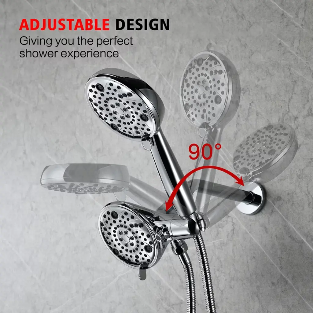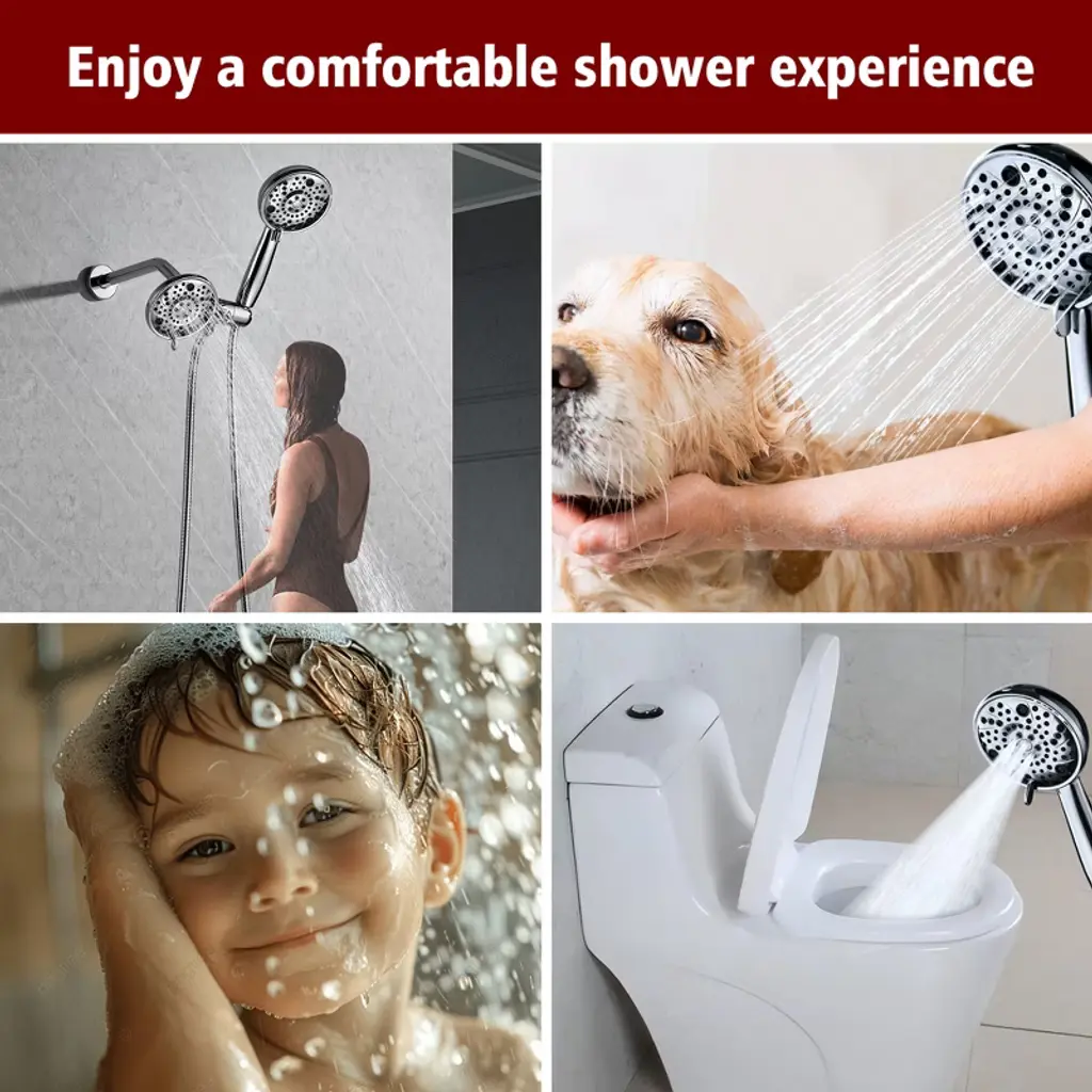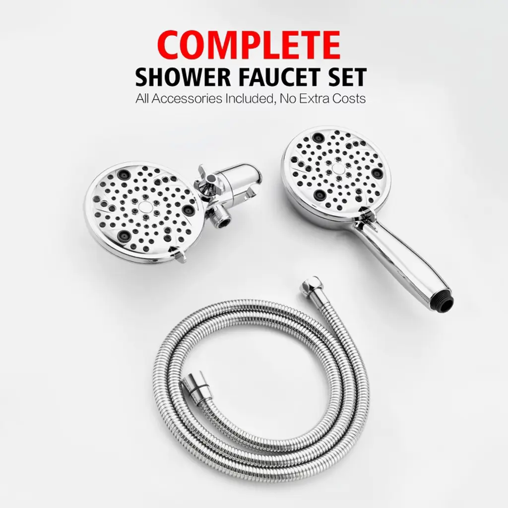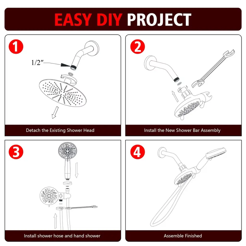 Elevate your daily routine with this innovative dual showerhead system, designed for couples and families seeking luxury and practicality. The 8 spray settings rainfall showerhead delivers spa-like experiences with pulsating massage, gentle mist, and power water modes, while the detachable handheld showerhead offers precision cleaning. A smart water diverter allows instant switching between single/double modes – no more waiting turns during morning rush hours. The Trickle mode keeps water circulating at minimal flow to maintain perfect temperature, reducing energy waste and cold shocks. The 360-degree rotating showerhead adapts to every body contour, paired with an adjustable bracket that tilts for kids, seniors, or seated users. Engineered for easy living, rubber nozzles repel limescale buildup – just swipe with your thumb to restore full water pressure. Easy install in 15 minutes. Upgrade to a water-efficient, family-friendly shower system that combines hotel luxury with smart home convenience. Model: S4367K-CH-TAProduct Name: Handheld Rain Shower HeadMaterial: ABSFinish: Chrome Welcome to SUMERAIN! We take pride in our expertise and commitment to producing top-of-the-line faucets, our team of skilled designers and engineers work tirelessly to create innovative and visually appealing faucets that seamlessly blend form and function. From sleek and modern designs to classic and timeless styles, we offer a wide range of options to suit various preferences and interior design themes. We believe that every customer deserves a faucet that not only performs flawlessly but also adds a touch of elegance to their space. About this item specificities 1.Dual Showerheads for Couples & Families Enjoy versatile bathing with overhead rainfall (8 spray settings) and detachable handheld showerhead for targeted rinsing. The water diverter seamlessly switch between single/double modes – perfect for busy mornings or shared bathroom routines.2.8 Spray Settings with Water-Saving Trickle Mode Customize your shower with 8 spray patterns (trickle, massage, mist, full spray, and more), while the innovative trickle mode maintains water temperature between uses. Save up to 30% water without cold restarts – ideal for eco-conscious households.3.360° Adjustable Showerhead with Flexible Mounting Rotate the rainfall showerhead 360° for full-body coverage or tilt the handheld bracket up/down. The anti-leak swivel joint ensures steady positioning, adapting to users of all heights. 4.Hassle-Free Maintenance Rubber silicone nozzles resist hard water buildup – simply wipe with fingers to clear mineral deposits. No tools required for disassembly, making cleaning faster than traditional showerheads.5.15-Minute DIY Installation for Any Bathroom Includes all accessories. Universal 1/2" NPT connection fits standard plumbing.