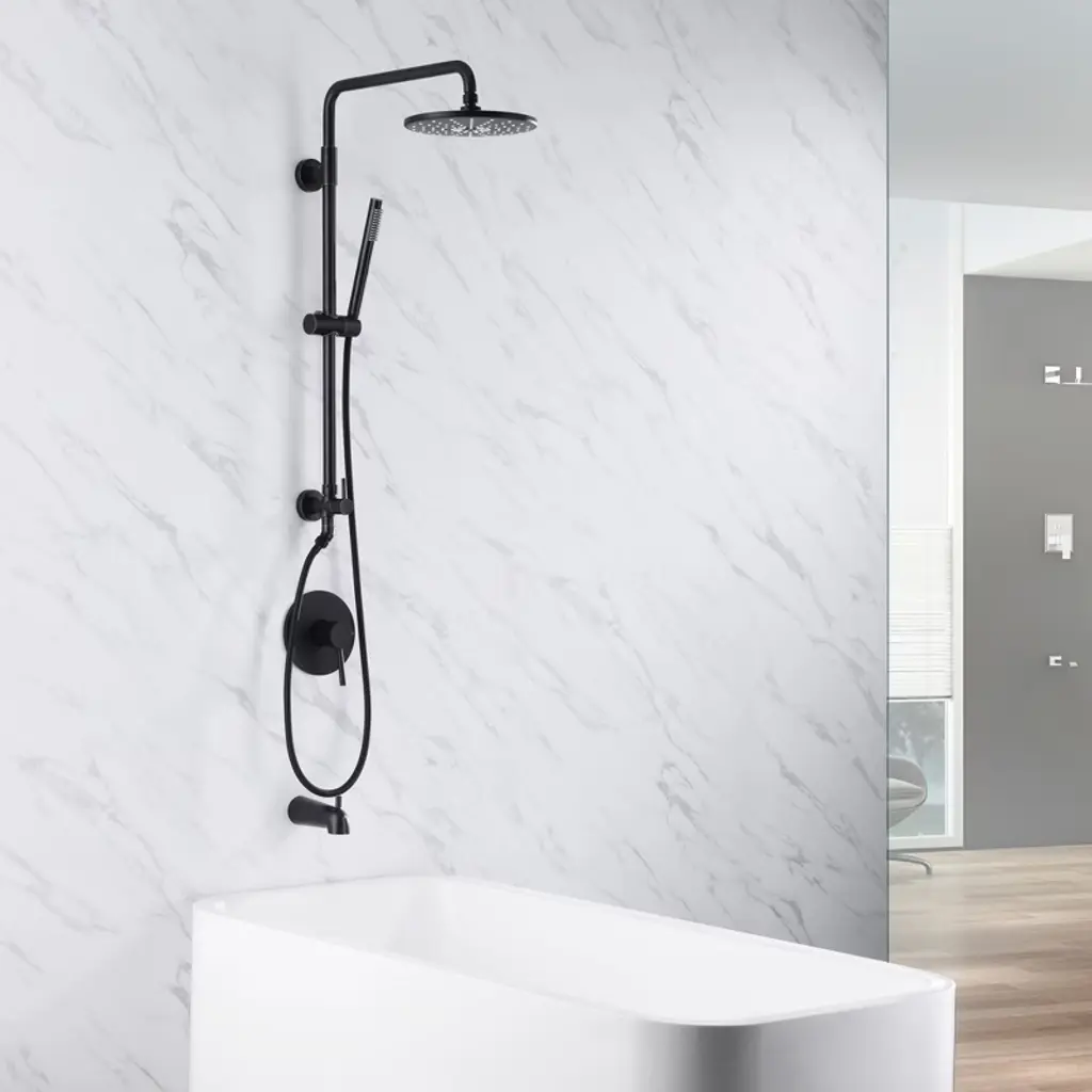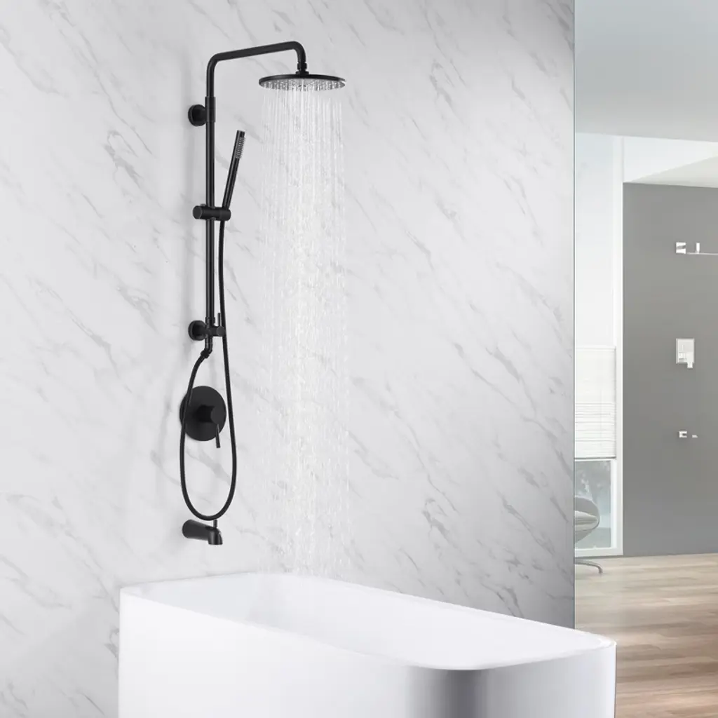 The 3-in-1 versatility of this SUMERAIN shower system allows everyone in the family to enjoy a truly personalized shower. Indulge in the drenching spray of the 8” Rain showerhead and the brass hand shower, easily switching between both with the accessible diverter. Designed for hassle-free installation using existing plumbing, eliminates the need to drill or damage the tile, transforming an ordinary shower in an extraordinary spa experience without difficulty. 1.8GPM(6.8L/MIN)showerhead and hand shower flow rate,product listed in the CEC modernized appliance efficiency database system and DOE list, It has WaterSense certification and compliant with standard: EPA WaterSense specification for showerheads(version 1.1,July 26,2018). This tub and shower system also has ICC-ES PMG certification and is compliant with standard: ASME A112.18.1/CSA B125.1-2018, plumbing supply fittings(the same standard as cUPC certification). Model: S3235OI-TAProduct Name: Retrofit Rain Shower SystemMaterial: Stainless Steel, Brass, Acrylonitrile Butadiene Styrene (ABS)Finish: Oil Rubbed Bronze SUMERAIN is a established name in the US plumbing industry which puts great emphasis on stylish and durable. Perfection does not always have to be expensive. SUMERAIN masterful products are high quality and inexpensive. Over three decades of manufacturing experience has provided us with the extensive market knowledge and the ability to offer new products at reasonable expense. The key to our success is intelligentization- we have rapidly expanded into exciting new products groups to be at the forefront of the market. We are dedicated to bringing you the latest designs utilising the most up-to-date technology. The new product design team benefit from a development system audited to ISO9001 standards, meaning each product is designed, sourced, evaluated and warehoused in a high standard. About this item specificities 1.Easily retrofit your existing shower without a remodel, connects to water supply at your current showerhead location and uses existing hot/cold shower valve. Drill-free and tool-free design eliminates the need to drill or damage the tile.>2. Brass Diverter sturdy construction built to last. Invigorating brass hand shower with 59" double-interlocking stainless steel hose. High standard brushed nickel finishing surface never rust, easy to clean and maintain.3. Accessible diverter easily switches between showerhead and hand shower water outlets.4. All hardwares and parts are included: shower arm, rain showerhead , slide bar, hand shower, diverter, shower hose, escutcheon, fixing fittings. Connetors are standard 1/2 NPT tapered threads, compatible with most exsiting shower systems.5. On and off valve and trim kit not included.