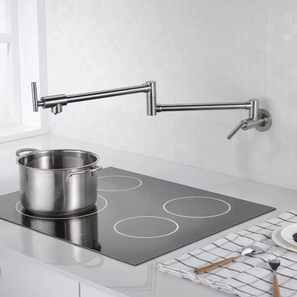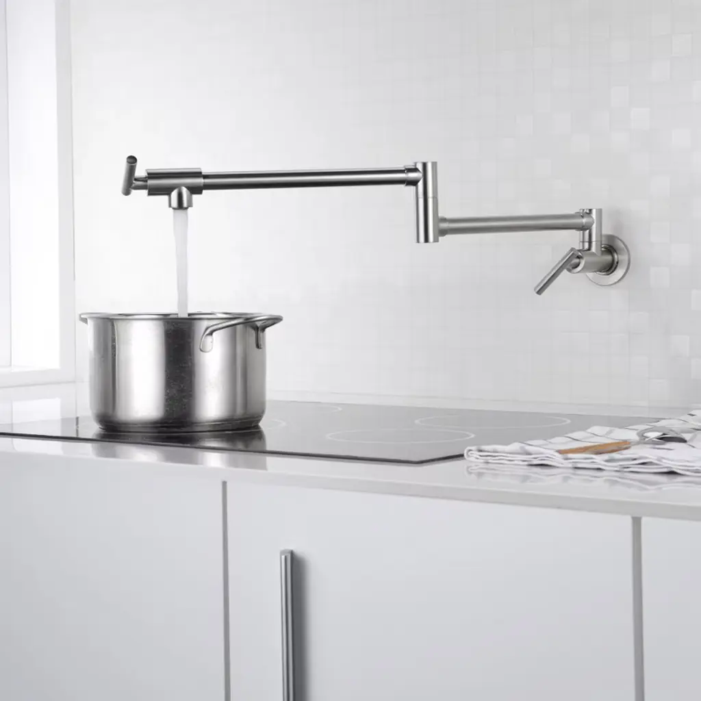 Fill the biggest pots and pans directly on the stove top with the SUMERAIN Brass Restoration Kitchen Pot Filler. This product offers streamlined styling and unparalleled convenience and performance. Dual shut-off faucet levers allow you to turn the water on or off with a simple quarter turn of the handle at either the wall or the spout, controlling the water flow at the point of use. Dual swing joints extend to provide access to water directly over your cooktop and easily fold away when not in use. Product listed in the California CEC modernized appliance efficiency database system. This kitchen faucet has ICC-ES PMG certification and is compliant with standard: ASME A112.18.1/CSA B125.1-2018, plumbing supply fittings(the same standard as cUPC certification). Product is Lead Free compliant with standard: NSF/ANSI/CAN 372-2022 drinking water system components - lead content. Certified Safe: Our faucet is certified under NSF/ANSI/CAN 61-2022 drinking water system components - health effects. Model:S6111NI-TAProduct Name: Wall Mounted Pot FillerMaterial: BrassFinish: Brushed Nickel SUMERAIN is an established name in the US plumbing industry which puts great emphasis on stylish and durable. Perfection does not always have to be expensive. SUMERAIN masterful products are high quality and inexpensive. Over three decades of manufacturing experience has provided us with the extensive market knowledge and the ability to offer new products at reasonable expense. The key to our success is intelligentization- we have rapidly expanded into exciting new products groups to be at the forefront of the market. We are dedicated to bringing you the latest designs utilising the most up-to-date technology. The new product design team benefit from a development system audited to ISO9001 standards, meaning each product is designed, sourced, evaluated and warehoused in a high standard. About this item specificities 1.Bronze pot filler adds the convenience of water to fill pots while on your stove or cooktop. This kitchen faucet has ICC-ES PMG certification and is compliant with standard: ASME A112.18.1/CSA B125.1-2018, plumbing supply fittings(the same standard as cUPC certification).2.Pot filler faucet wall mount dual swing joints with approximately 24" extension. Product is Lead Free compliant with standard: NSF/ANSI/CAN 372-2022 drinking water system components - lead content.3.Pot filler faucets with dual handle design for easy operation. Product listed in the California CEC modernized appliance efficiency database system. (1.8GPM 6.8L/MIN)4.NPT 1/2" or 1/2" NPSM connecting thread, this pot filler faucet wall mount designed to easily install with standard U.S. plumbing connections for saving man-hour cost during installing.5.Sumerain Preferred Authorized Online Dealer for Guaranteed Warranty Coverage, this brushed nickel pot filler covered under Sumerain's limited lifetime warranty. Certified Safe: Our faucet is certified under NSF/ANSI/CAN 61-2022 drinking water system components - health effects.