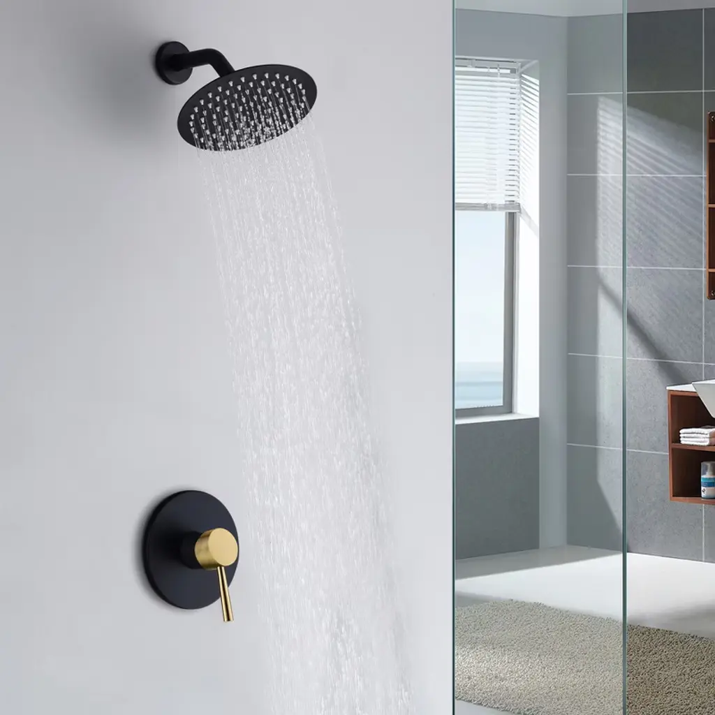 Sumerain Single-function Shower Faucet Set Black And Gold, With Rough-in Valve Shower Trim Kit