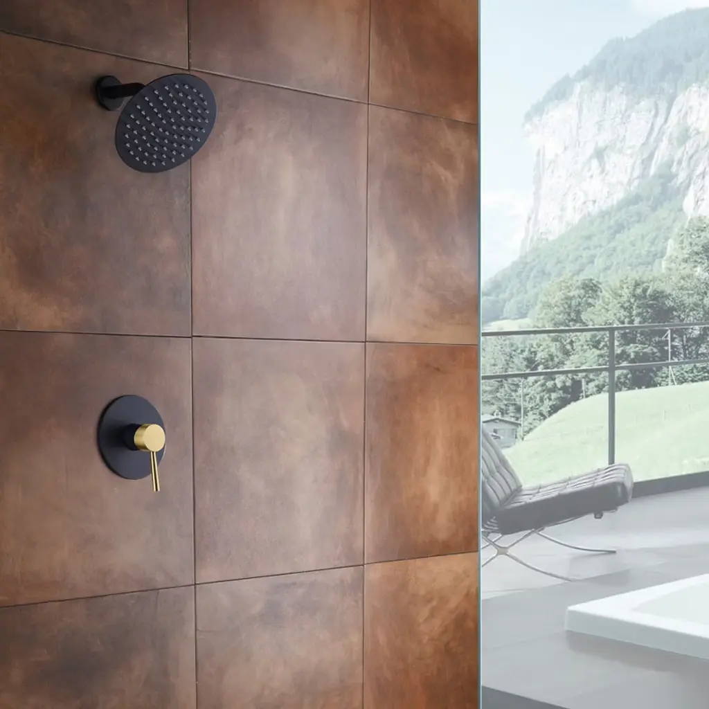 The sleek and simple appearance of the sumerain shower faucet - a fresh design that will bring life to any bathroom. The ceramic disc cartridge brings you a faucet built to last up to 600,000 uses. Easy operated lever handle, 8 inches touch-clean rain shower and black&gold finish give this bathroom shower faucet set universal appeal. This shower faucet set listed in the California CEC modernized appliance efficiency database system, and the ECPA Department of Energy (DOE) qualified list. Rain shower head has WaterSense certification and compliant with standard: EPA WaterSense specification for showerheads(version 1.1,July 26,2018). Rough in valve,Rain shower head, shower arm has ICC-ES PMG certification, compliant with standard: ASME A112.18.1/CSA B125.1-2018, plumbing supply fittings(the same standard as cUPC). Model: S3221I-MG-TAProduct Name: Shower FaucetMaterial: Brass, 304 Stainless SteellFinish: Black and Gold Welcome to SUMERAIN! We take pride in our expertise and commitment to producing top-of-the-line faucets, our team of skilled designers and engineers work tirelessly to create innovative and visually appealing faucets that seamlessly blend form and function. From sleek and modern designs to classic and timeless styles, we offer a wide range of options to suit various preferences and interior design themes. We believe that every customer deserves a faucet that not only performs flawlessly but also adds a touch of elegance to their space. About this item specificities 1.Black and Gold shower faucet brass construction of faucet body and handle ensures reliability.2.A sleek sophistication for the bath providing both style and functionality. 3.Black and Gold brass shower faucet with single function cartridge - Single lever handle for ease of temperature and flow control.4.Black and Gold shower faucet set designed for use with standard U.S. plumbing connections.5.Solid brass rough-in valve included in this shower set.