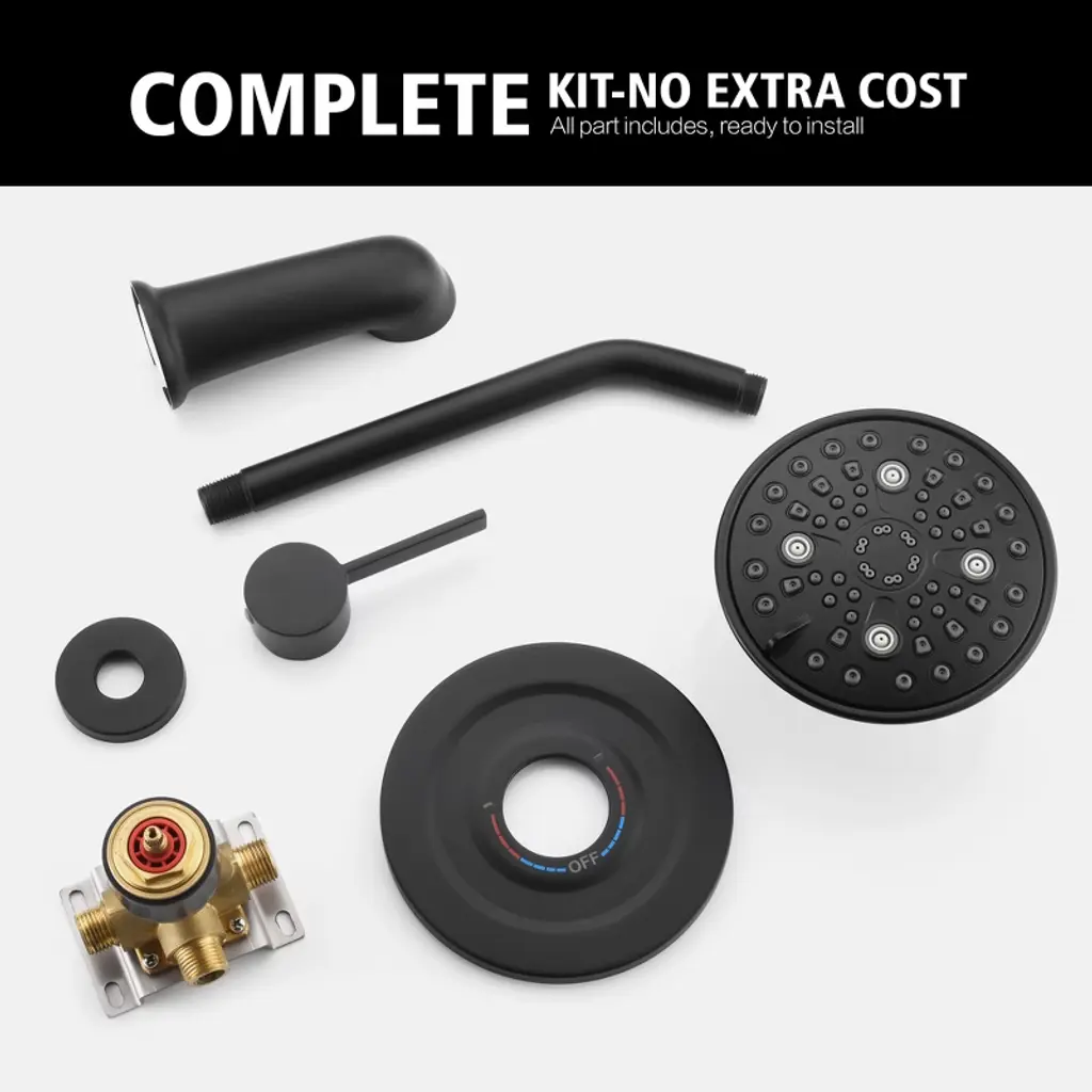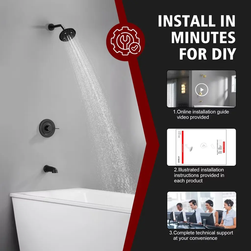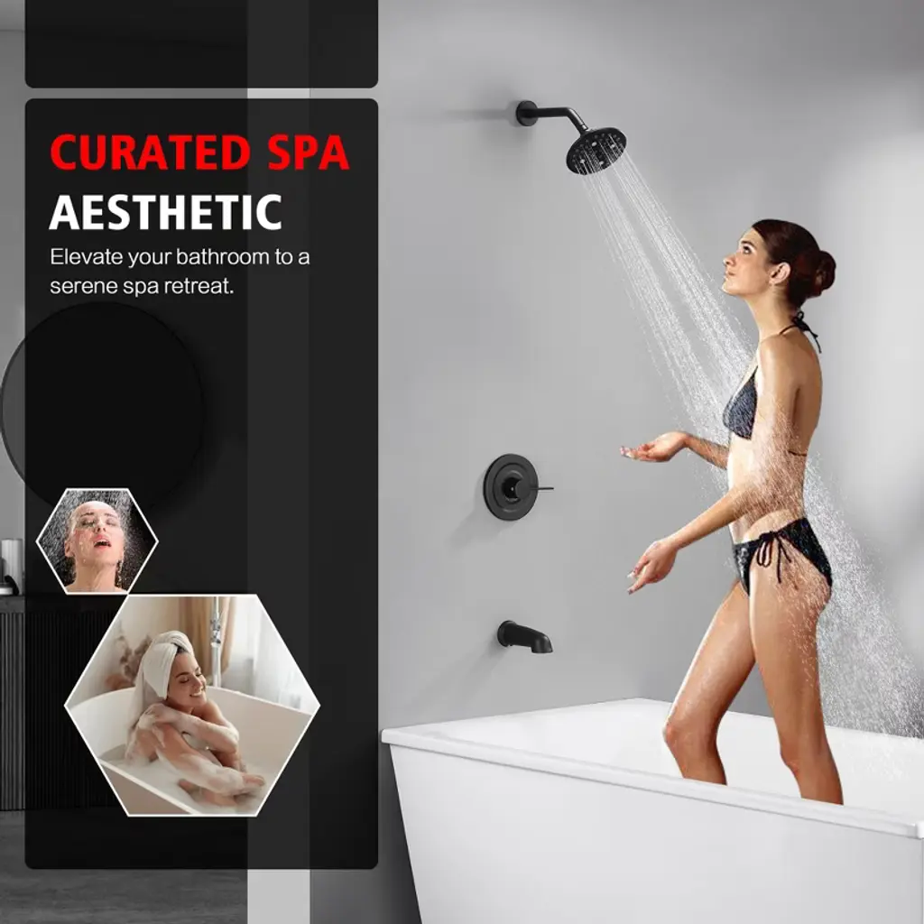 Elevate your daily routine with our luxury spa shower system designed for modern bathrooms. This all-in-one tub shower faucet combines hotel-grade performance with water-efficient technology (6 customizable spray patterns including rainfall/massage/mist modes). The rainfall showerhead delivers 360° coverage for ultimate relaxation. Water-Saving Tickle Mode for rinsing soap without chilling. Dual-control valve combines temperature regulation and spray selection in single lever. Engineered for easy bathroom upgrades, this DIY-friendly shower kit includes detailed installation manuals and online video guides. The anti-leak ceramic disc cartridge ensures drip-free operation, complemented by easy-clean nozzle technology that resists calcium buildup. Compatible with all standard shower arms and pipes, this commercial-grade fixture brings five-star spa experiences to your home without renovation costs. Model: S3241I-MB-TAProduct Name: Tub and Shower FaucetMaterial: Brass, Stainless SteelFinish: Matte Black SUMERAIN is a established name in the US plumbing industry which puts great emphasis on stylish and durable. Perfection does not always have to be expensive. SUMERAIN masterful products are high quality and inexpensive. Over three decades of manufacturing experience has provided us with the extensive market knowledge and the ability to offer new products at reasonable expense. The key to our success is intelligentization- we have rapidly expanded into exciting new products groups to be at the forefront of the market. We are dedicated to bringing you the latest designs utilising the most up-to-date technology. The new product design team benefit from a development system audited to ISO9001 standards, meaning each product is designed, sourced, evaluated and warehoused in a high standard. About this item specificities 1. Modern Minimalist Shower System with Spa Luxury Featuring a wall mounted showerhead with 6 customizable spray modes (including Water-Saving Tickle Mode for rinsing soap without chilling), its modern minimalist design integrates seamlessly into any bathroom layout. 2. Body Coverage & High Flow Our rotating shower head optimizes space with 360°adjustable angles for full-body coverage. 3X accelerated flow fills standard tubs - perfect for quick relaxation after long workdays. 3. Effortless Installation & Maintenance DIY-friendly design comes with complete installation kit and animated video guide. Silicone nozzles on shower head resist limescale buildup: simply wipe surfaces to maintain optimal water pressure. Dual-control valve combines temperature regulation and spray selection in single lever. 4.Commercial-Grade Durability for Home Use Durable brass construction ensures leak-proof performance while complying with US plumbing standards. Tested to withstand 600,000+ uses, this tub and shower faucet set eliminates leakage risks with ceramic cartridges.5.Premium Spa Experience at Accessible Price Professional-grade performance without luxury markup. All parts includes, ready to install.