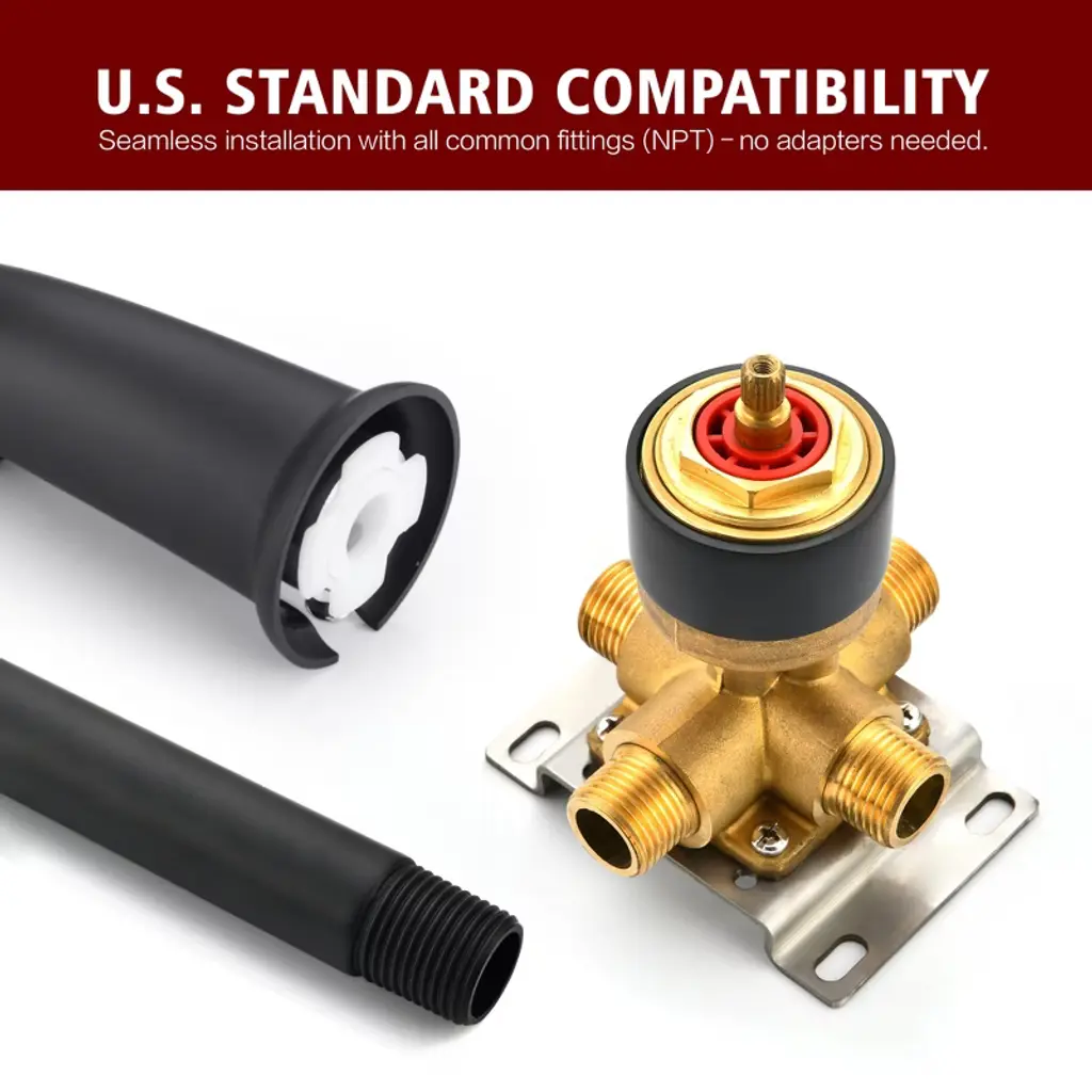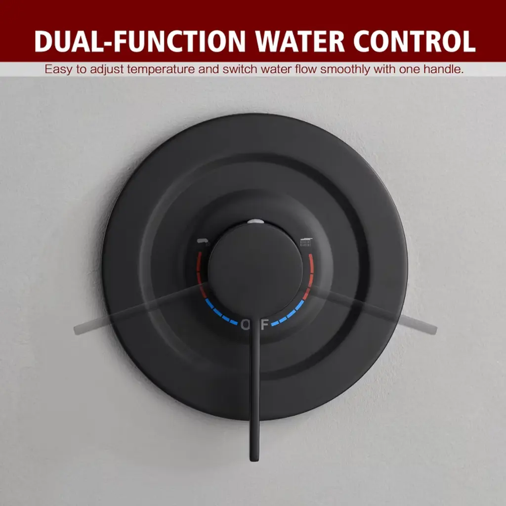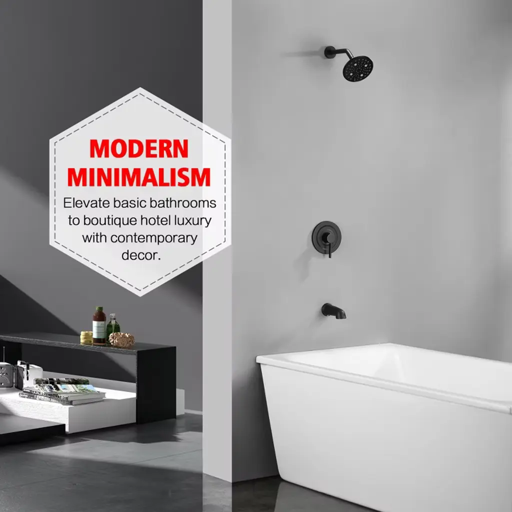 Elevate your daily routine with our luxury spa shower system designed for modern bathrooms. This all-in-one tub shower faucet combines hotel-grade performance with water-efficient technology (6 customizable spray patterns including rainfall/massage/mist modes). The rainfall showerhead delivers 360° coverage for ultimate relaxation. Water-Saving Tickle Mode for rinsing soap without chilling. Dual-control valve combines temperature regulation and spray selection in single lever. Engineered for easy bathroom upgrades, this DIY-friendly shower kit includes detailed installation manuals and online video guides. The anti-leak ceramic disc cartridge ensures drip-free operation, complemented by easy-clean nozzle technology that resists calcium buildup. Compatible with all standard shower arms and pipes, this commercial-grade fixture brings five-star spa experiences to your home without renovation costs. Model: S3241I-MB-TAProduct Name: Tub and Shower FaucetMaterial: Brass, Stainless SteelFinish: Matte Black SUMERAIN is a established name in the US plumbing industry which puts great emphasis on stylish and durable. Perfection does not always have to be expensive. SUMERAIN masterful products are high quality and inexpensive. Over three decades of manufacturing experience has provided us with the extensive market knowledge and the ability to offer new products at reasonable expense. The key to our success is intelligentization- we have rapidly expanded into exciting new products groups to be at the forefront of the market. We are dedicated to bringing you the latest designs utilising the most up-to-date technology. The new product design team benefit from a development system audited to ISO9001 standards, meaning each product is designed, sourced, evaluated and warehoused in a high standard. About this item specificities 1. Modern Minimalist Shower System with Spa Luxury Featuring a wall mounted showerhead with 6 customizable spray modes (including Water-Saving Tickle Mode for rinsing soap without chilling), its modern minimalist design integrates seamlessly into any bathroom layout. 2. Body Coverage & High Flow Our rotating shower head optimizes space with 360°adjustable angles for full-body coverage. 3X accelerated flow fills standard tubs - perfect for quick relaxation after long workdays. 3. Effortless Installation & Maintenance DIY-friendly design comes with complete installation kit and animated video guide. Silicone nozzles on shower head resist limescale buildup: simply wipe surfaces to maintain optimal water pressure. Dual-control valve combines temperature regulation and spray selection in single lever. 4.Commercial-Grade Durability for Home Use Durable brass construction ensures leak-proof performance while complying with US plumbing standards. Tested to withstand 600,000+ uses, this tub and shower faucet set eliminates leakage risks with ceramic cartridges.5.Premium Spa Experience at Accessible Price Professional-grade performance without luxury markup. All parts includes, ready to install.