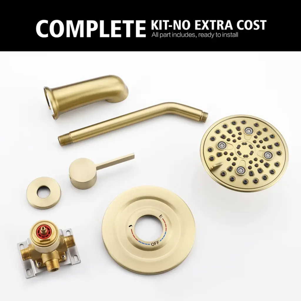 Sumerain Tub And Shower Trim Kit, Shower Faucet Set 6 Spray Rain Showerhead And Spout, Brushed Gold