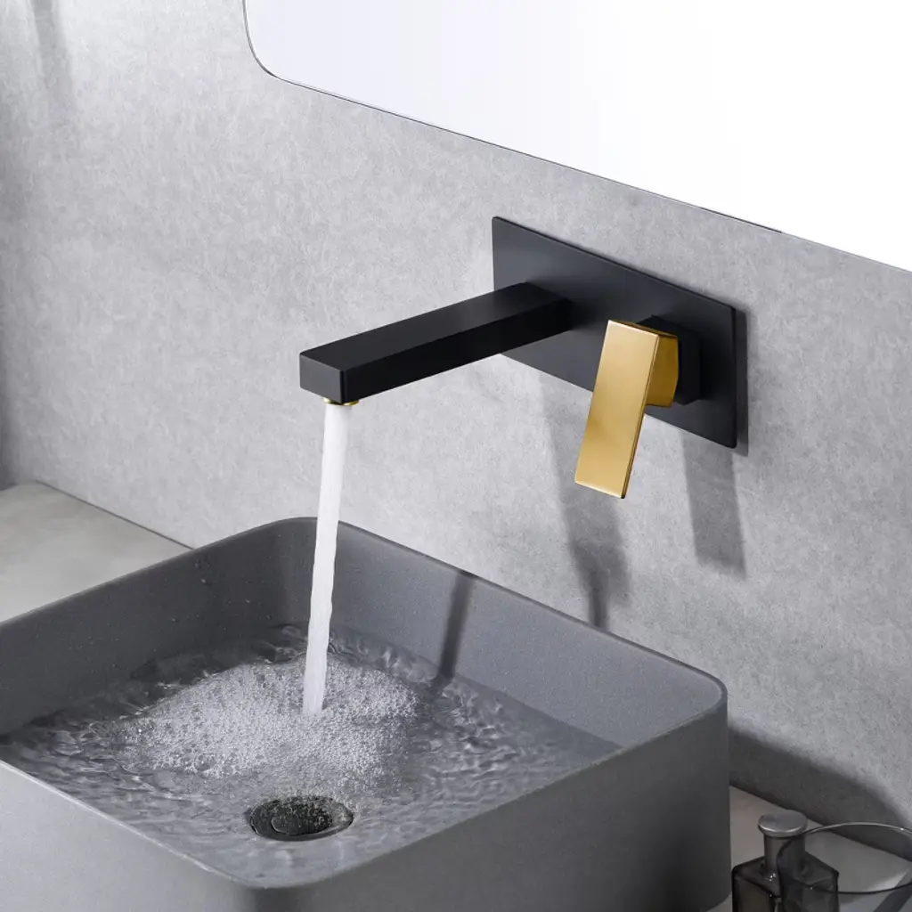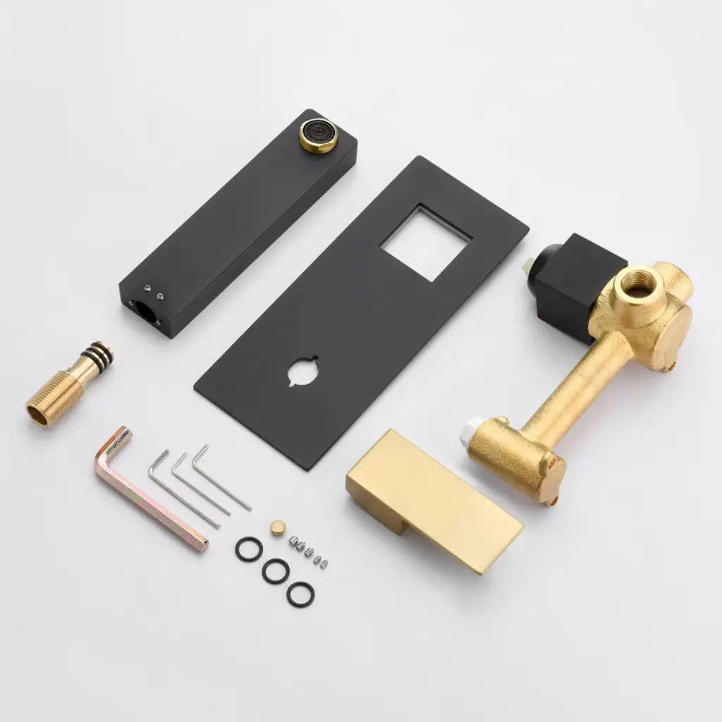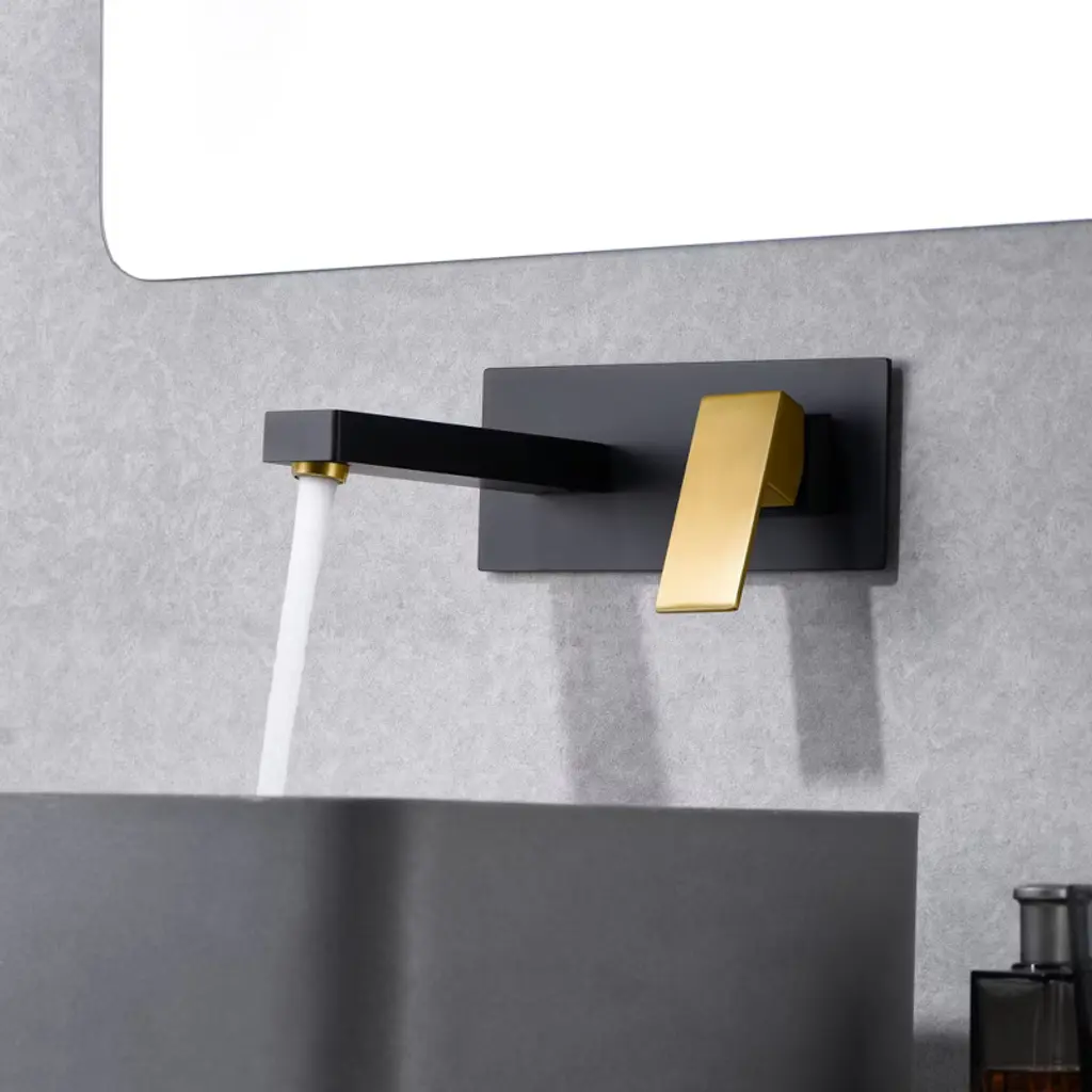 The sumerain wall mount bathroom faucet remains durable and beautiful over time thanks to its solid brass construction and excellent surface treatment. Capturing the style of minimalist design, this bathroom faucet deliver streamlined water control. The convenient wall-mount design provides a clutter-free countertop in your bathroom. Product listed in the California CEC modernized appliance efficiency database system, and also in the ECPA Department of Energy (DOE) qualified list. ICC-ES PMG certified by ICC-ES in 2023, standard: ASME A112.18.1/CSA B125.1-2018, plumbing supply fittings(the same standard as cUPC). Lead Free certificated by ICC-ES in 2023, standard: NSF/ANSI/CAN 372-2022 drinking water system components - lead content. Bathroom faucet is certified safe by ICC-ES in 2023, standard: SF/ANSI/CAN 61-2022 drinking water system components - health effects. Watersense certified by ICC-ES in 2023, standard: EPA WaterSense high-efficiency lavatory faucet specification(V1.0). Model:S1389I-MG-TAProduct Name: Wall Mount Bathroom Sink FaucetFinish:Black and GoldMaterial:Brass Welcome to SUMERAIN! We are dedicated to showcasing our proficiency and unwavering dedication in crafting superior faucets. Our team of talented designers and engineers exert relentless efforts to conceive groundbreaking and aesthetically pleasing faucets that flawlessly amalgamate style and practicality.From sleek and modern designs to classic and timeless styles, we offer a wide range of options to suit various preferences and interior design themes. We believe that every customer deserves a faucet that not only performs flawlessly but also adds a touch of elegance to their space. About this item specificities 1. Wall mount bathroom faucet includes rough-in valve. To save time and extra expense, please show your plumber the installation video.2. Bathroom sink faucet with black and gold finish, resists corrosion and tarnishing in daily use.3. Professional grade brass construction ensures longevity.4. Low-wear ceramic cartridge avoids leakage.5. Smooth single handle operation, easy to control the water volume and temperature.