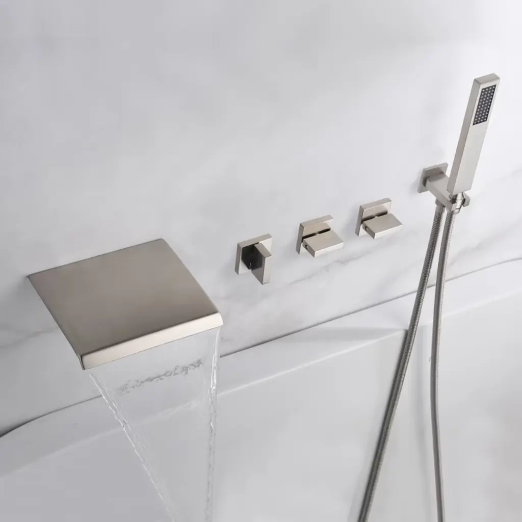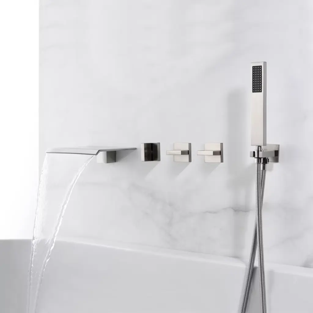 Sumerain Wall Mount Tub Faucet With Hand Shower And Waterfall Spout High Flow Rate, Brushed Nickel