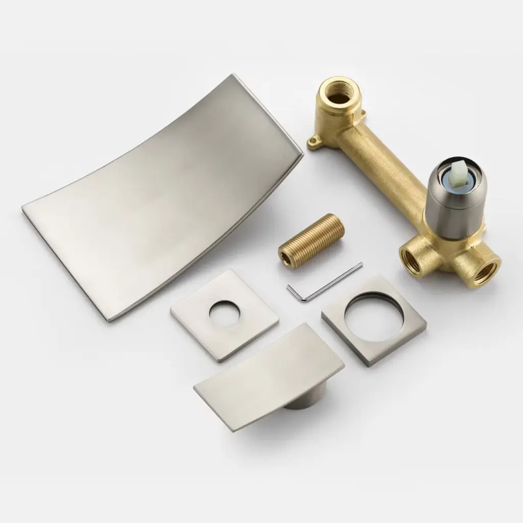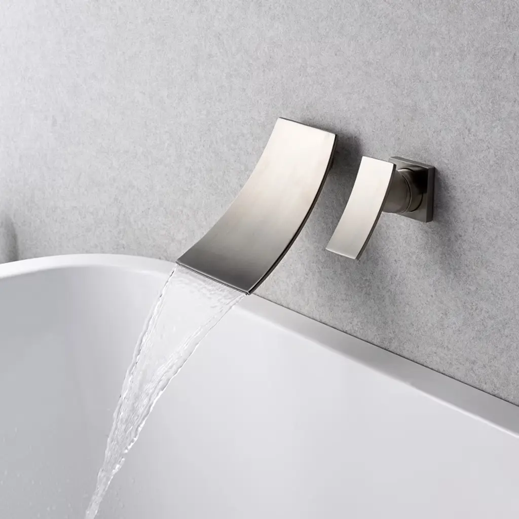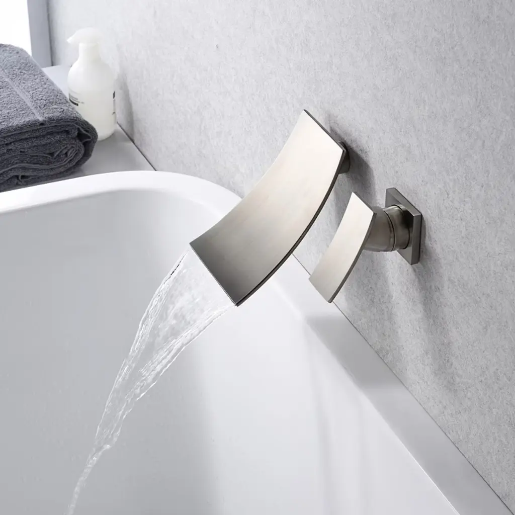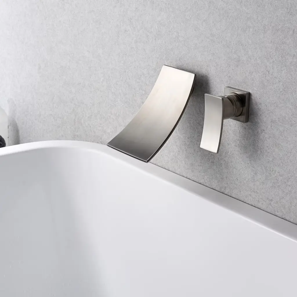 The uniquely shaped spout creates a dramatic cascade of water and a unique flow pattern. Luxury materials and components take this classic concept to a whole new level. The confident slant of the SUMERAIN wall mount tub filler makes it a striking addition to a bathroom’s contemporary geometry for a look that makes a statement. Complete the look of your bath with this pivotal single handle wall mounted tub filler. Paired with crisp lines, it creates a bold, modern contrast, but it works equally well with vintage styles and traditional spaces.This wall mount tub filler has ICC-ES PMG certification and is compliant with standard: ASME A112.18.1/CSA B125.1-2018, plumbing supply fittings(the same standard as cUPC certification). Model: S1364NW-TAProduct Name: Wall Mount Tub FaucetMaterial: Brass, Stainless SteelFinish: Brushed NickelFlow Rate: 7.03GPM@60PSI Welcome to SUMERAIN! We are dedicated to showcasing our proficiency and unwavering dedication in crafting superior faucets. Our team of talented designers and engineers exert relentless efforts to conceive groundbreaking and aesthetically pleasing faucets that flawlessly amalgamate style and practicality.From sleek and modern designs to classic and timeless styles, we offer a wide range of options to suit various preferences and interior design themes.. We believe that every customer deserves a faucet that not only performs flawlessly but also adds a touch of elegance to their space. About this item specificities 1.Wall mount tub faucet body and rough-in valve constructed of solid brass.2.Bathtub faucet brushed nickel finish will resist corrosion and tarnishing through everyday use.3.Wall mount bathtub faucet with low-wear ceramic cartridge. Smooth single handle operation for this waterfall tub faucet.4.High flow rate 7GPM@60PSI, this tub filler can fill up your tub in a very short time.5.Rough-in valve included in this wall mount tub filler.