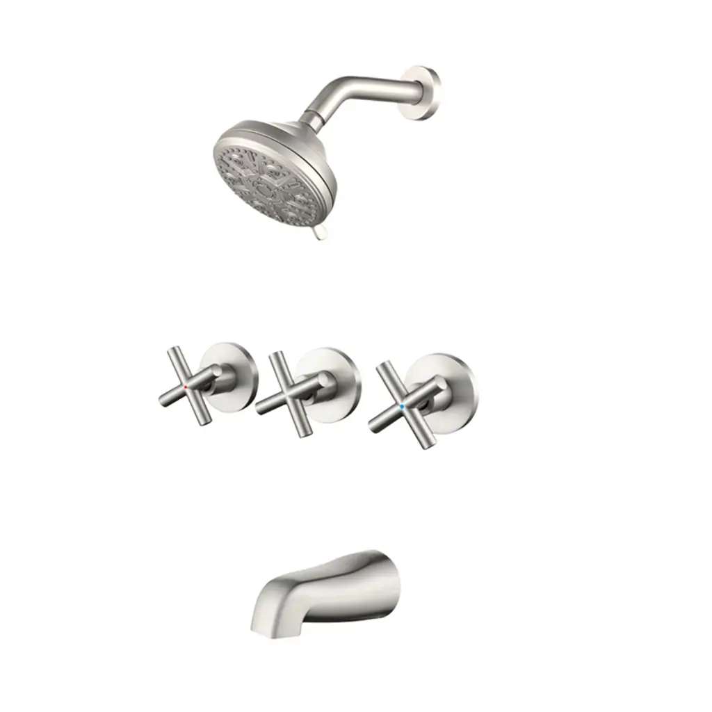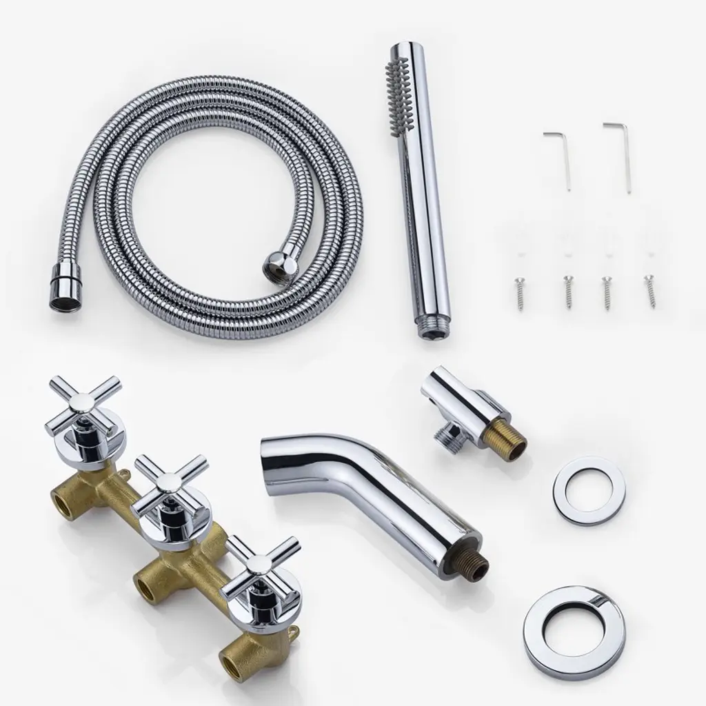 The design was inspired by the sleek elegance of modern design. Brimming with classical flair and verve, the SUMERAIN wall mount tub filler transforms any shower into the ultimate personal spa. The water temperature and volume are controlled through the dual-function valve and trim set, which incorporates three cross handles. The SUMERAIN Tub Faucet Set with scratch and tarnish-resistant brushed gold surface will retain its classical for years to come. 1.8GPM(6.8L/MIN)Hand shower flow rate, product listed in the California CEC modernized appliance efficiency database system and ECPA DOE List, It has WaterSense certification and compliant with standard: EPA WaterSense specification(version 1.1,July 26,2018). This tub faucet also has ICC-ES PMG certification and is compliant with standard: ASME A112.18.1/CSA B125.1-2018, plumbing supply fittings(the same standard as cUPC certification). Model: S2133CW-TAProduct Name: Wall Mount Tub Faucet with SprayerMaterial: Brass and Stainless SteelFinish: ChromeFlow Rate: 5.49GPM@60PSI Welcome to SUMERAIN! We are dedicated to showcasing our proficiency and unwavering dedication in crafting superior faucets. Our team of talented designers and engineers exert relentless efforts to conceive groundbreaking and aesthetically pleasing faucets that flawlessly amalgamate style and practicality.From sleek and modern designs to classic and timeless styles, we offer a wide range of options to suit various preferences and interior design themes.. We believe that every customer deserves a faucet that not only performs flawlessly but also adds a touch of elegance to their space. About this item specificities 1.The standard NPT 1/2" threads designed for use with standard U.S. and Canada plumbing connections. 2. American patent high flow waterfall tub spout provides elegance and functionality for your bath. High flow cartridge ensures this waterfall tub faucet can fill up your bath in a minutes. 3.Rough-in valve and tub spout constructed of solid brass for durability. Classical 3-cross handles easily adjust the water temperature and flow with the sleek operations.4. Wall mount tub faucet set with hand shower, tub spout and rough-in valve for your easy installation and saving costs!5.Ceramic disc cartridge tested to be No Leakage after 600,000 uses. New cartridge will be provided if it leaks within 5 years.