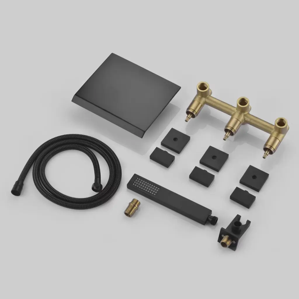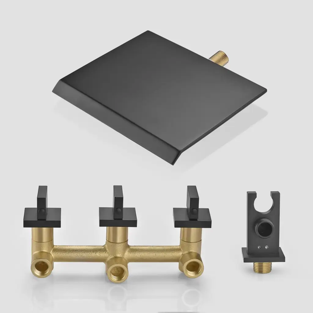 Get a perfect blend of style and functionality for your bathroom with the SUMERAIN Triple Handle Wall Mount Tub Faucet with Hand Shower. This tub faucet features a wide flat spout design that spouts water in a neat waterfall like motion, giving your bath time a touch of elegance. It is available in a stylish matte black finish and features a contemporary style that blends excellently with existing contemporary bathroom fixtures. It is made primarily of brass and stainless steel and is resistant to chipping, rust, tarnish, and staining. It has a wall-mounted type configuration and comes with three knob-style handles. This Triple Handle Wall Mount Waterfall Tub Faucet with Hand Shower from SUMERAIN requires minimal installation and is easy to clean. 1.8GPM(6.8L/MIN)hand shower flow rate, product listed in the California CEC modernized appliance efficiency database system, It has WaterSense certification and compliant with standard: EPA WaterSense specification for showerheads(version 1.1,July 26,2018). This tub faucet also has ICC-ES PMG certification and is compliant with standard: ASME A112.18.1/CSA B125.1-2018, plumbing supply fittings(the same standard as cUPC certification). Model: S2129DW-TAProduct Name: Wall Mount Tub FaucetMaterial: Brass, Stainless SteelFinish: Matte BlackFlow Rate: 5.42GPM@60PSI Welcome to SUMERAIN! We are dedicated to showcasing our proficiency and unwavering dedication in crafting superior faucets. Our team of talented designers and engineers exert relentless efforts to conceive groundbreaking and aesthetically pleasing faucets that flawlessly amalgamate style and practicality.From sleek and modern designs to classic and timeless styles, we offer a wide range of options to suit various preferences and interior design themes.. We believe that every customer deserves a faucet that not only performs flawlessly but also adds a touch of elegance to their space. About this item specificities 1.Solid brass rough-in valve ensures long service life. 1.8GPM(6.8L/MIN)hand shower flow rate.2.Standard American NPT 1/2" threads for firmly connection, avoids any leakage and prevents flooding in your house.3.Wide waterfall spout and high flow rate(5.42GPM@60PSI) cartridge design, this wall mount tub filler can fill up your tub in a minutes.4.5 Years quality warranty for cartridge, we will response customers' service requests within 24 hours by phone or email.5.Detailed user manual for easy and quick installation, this wall mount tub faucet especially suitable for DIY users. Installation depth is extremely important, make sure to read the manual before proceeding. If customers install rough-in valve in improper depth, in order to reduce customer losses, customize parts can be provided.