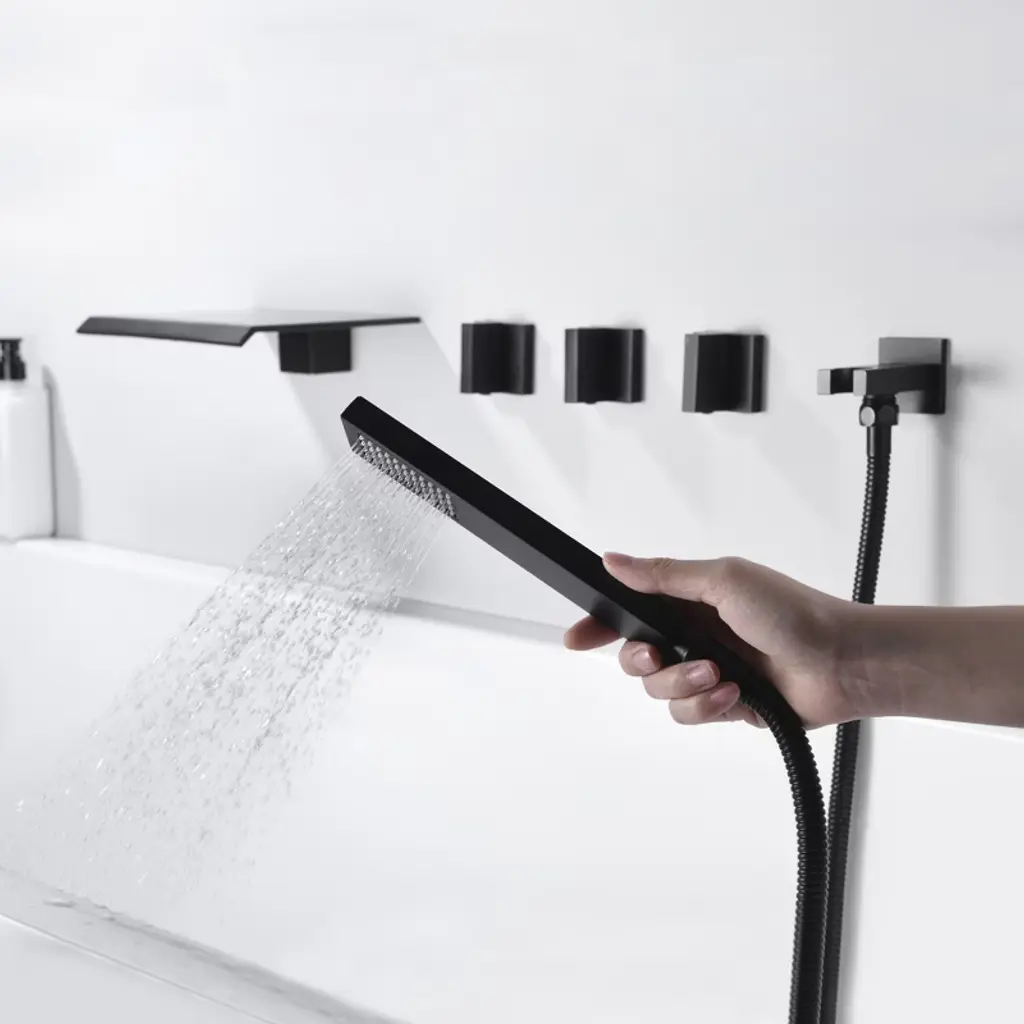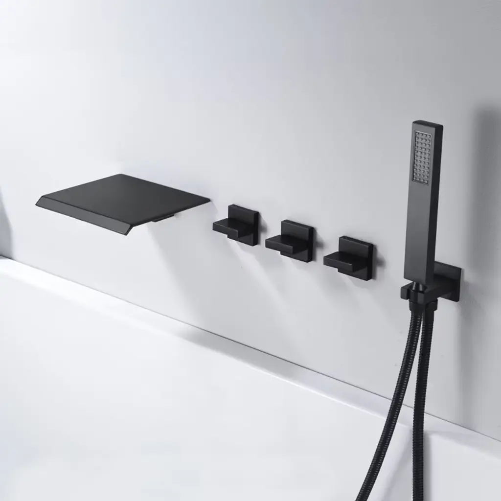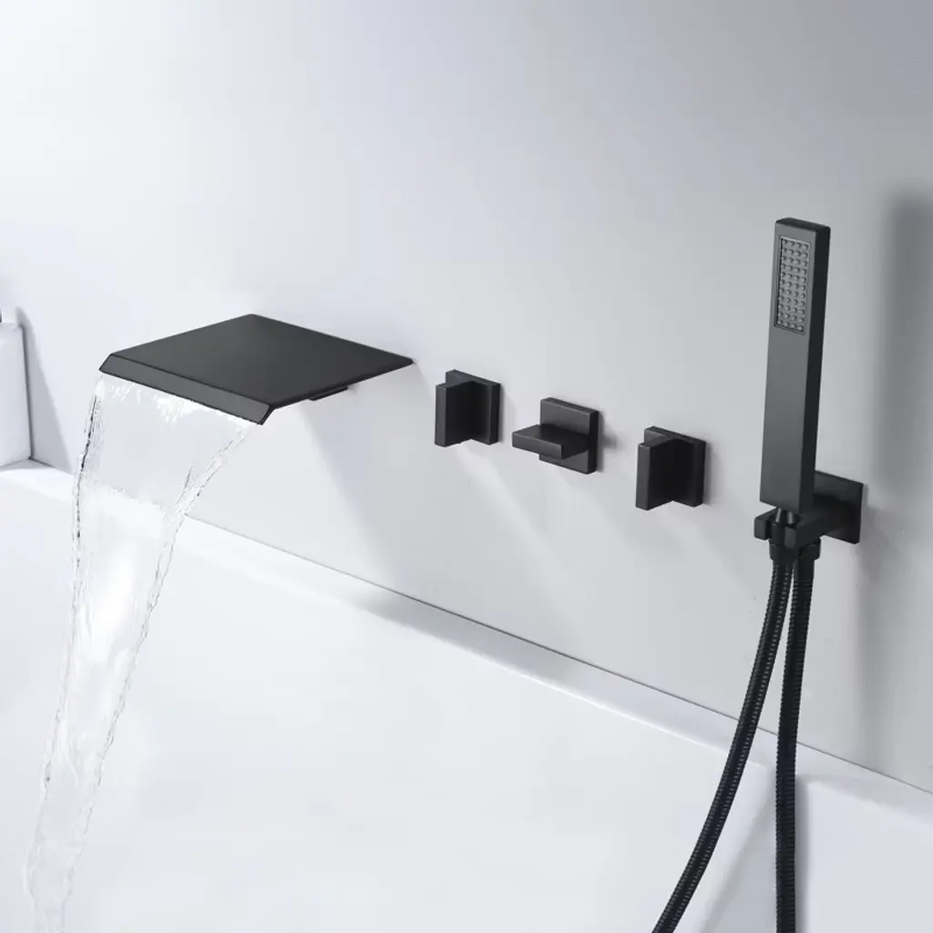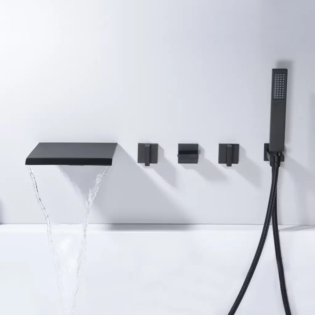Sumerain Wall Mount Waterfall Tub Filler Faucet With Hand Shower And High Flow Spout, Matte Black