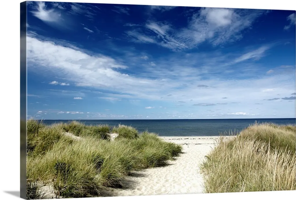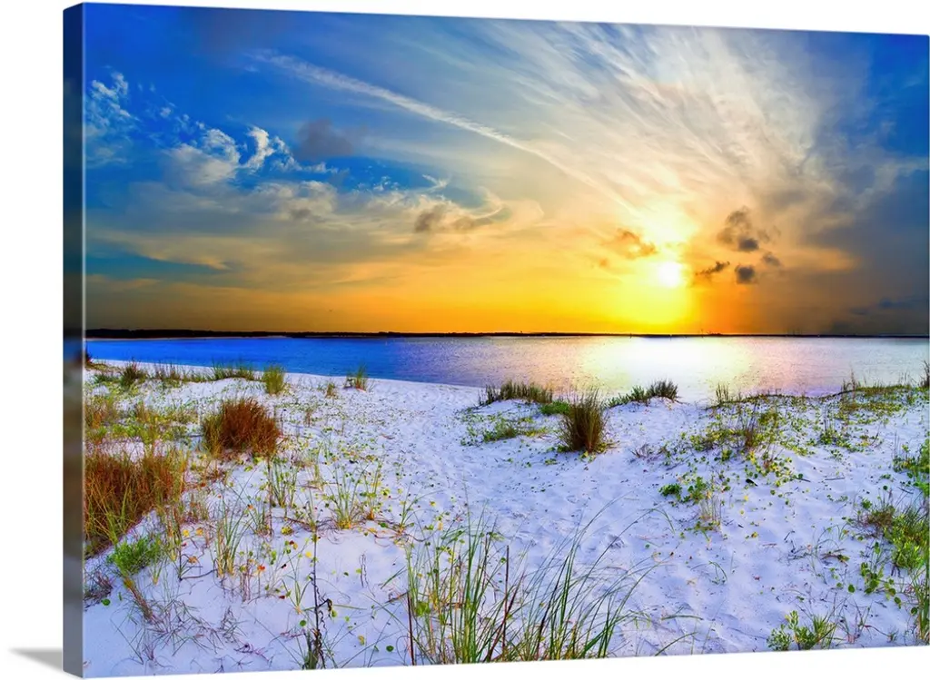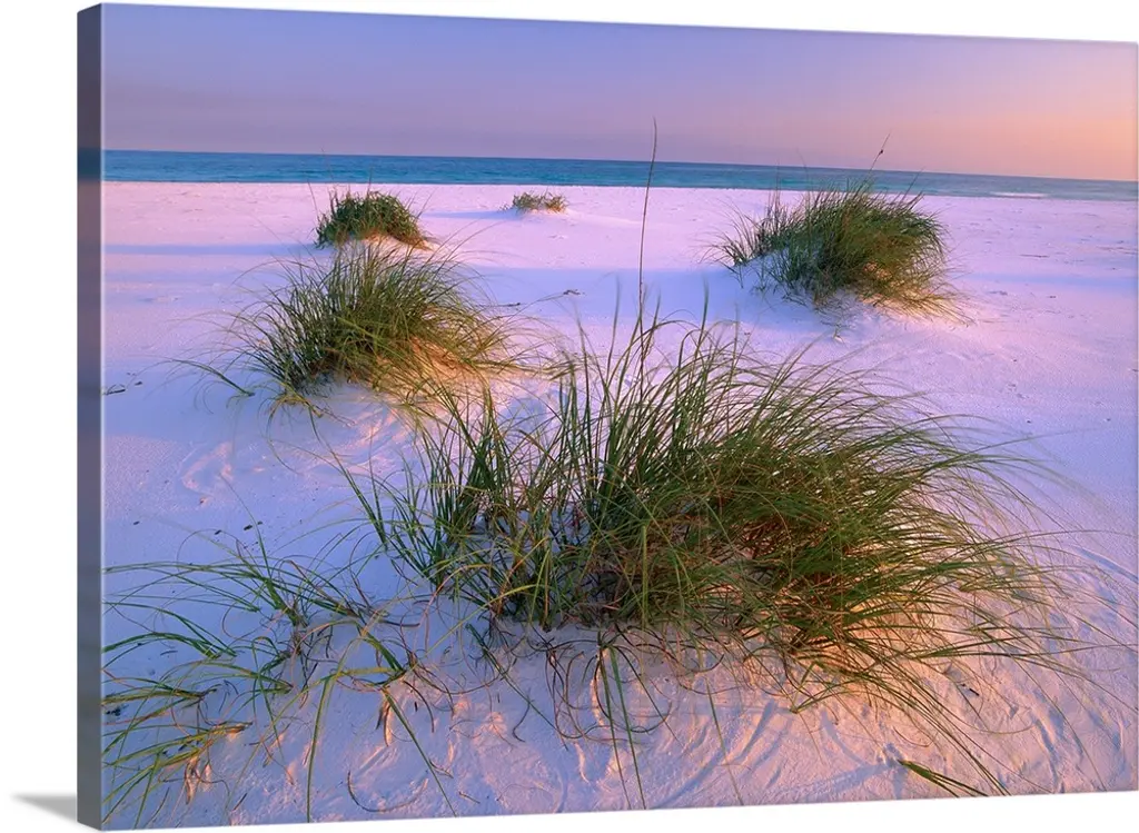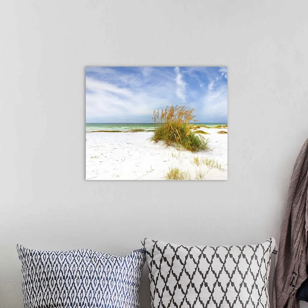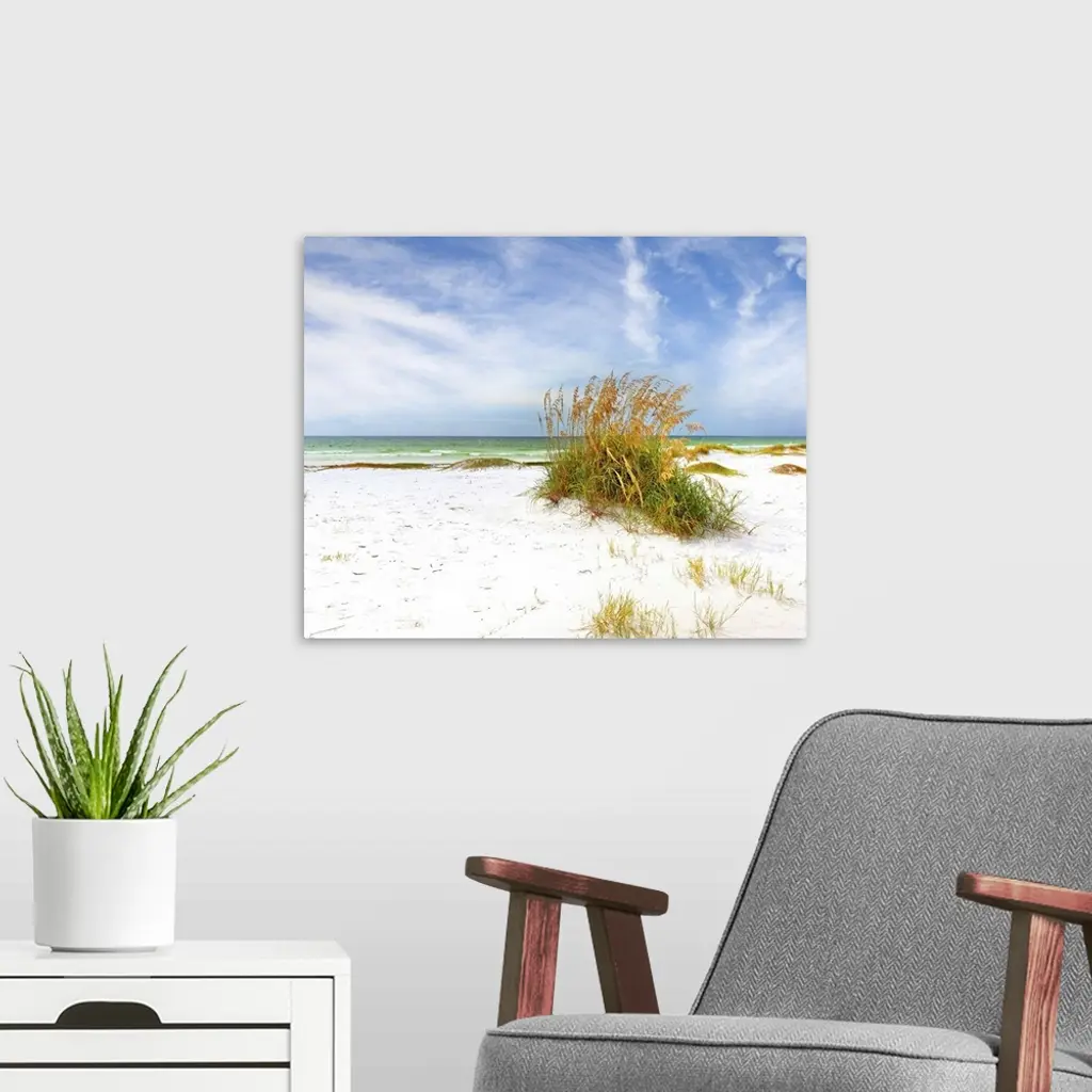 Summer landscape with sea oats and grass dunes on a beautiful Florida beach.